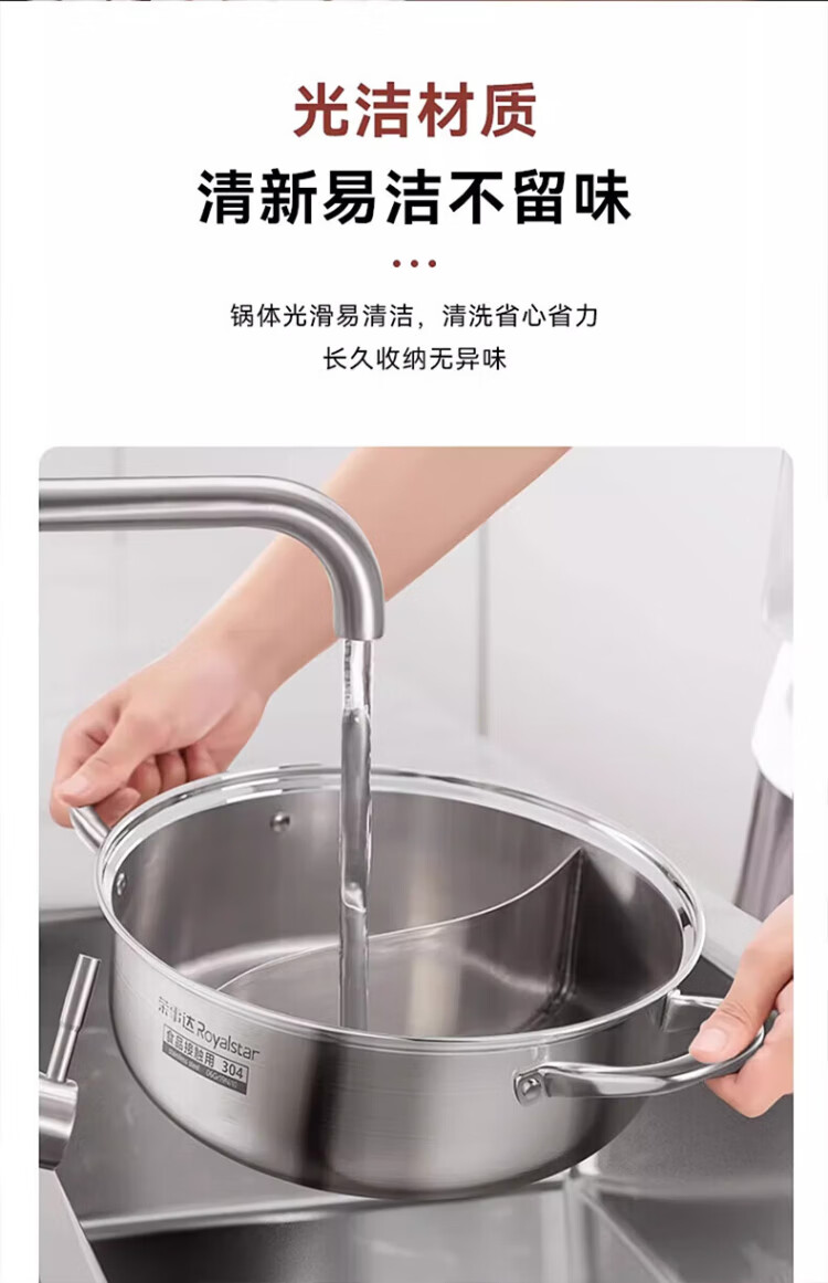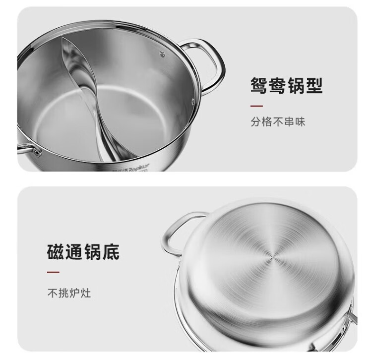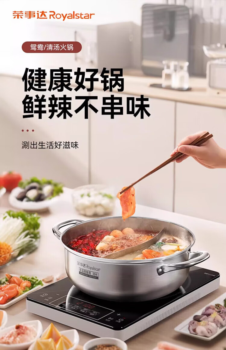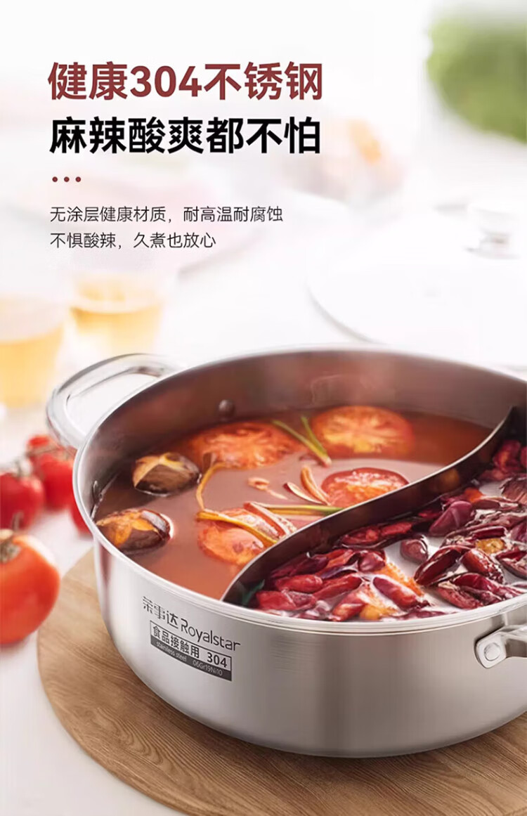 Royalstar Yuanyang Pot/Clear Soup Pot 304 stainless steel induction cooker special thickened hot pot basin hot pot pot for home use 304 Yuanyang Pot (comes with soup colander + lid) 30cm
