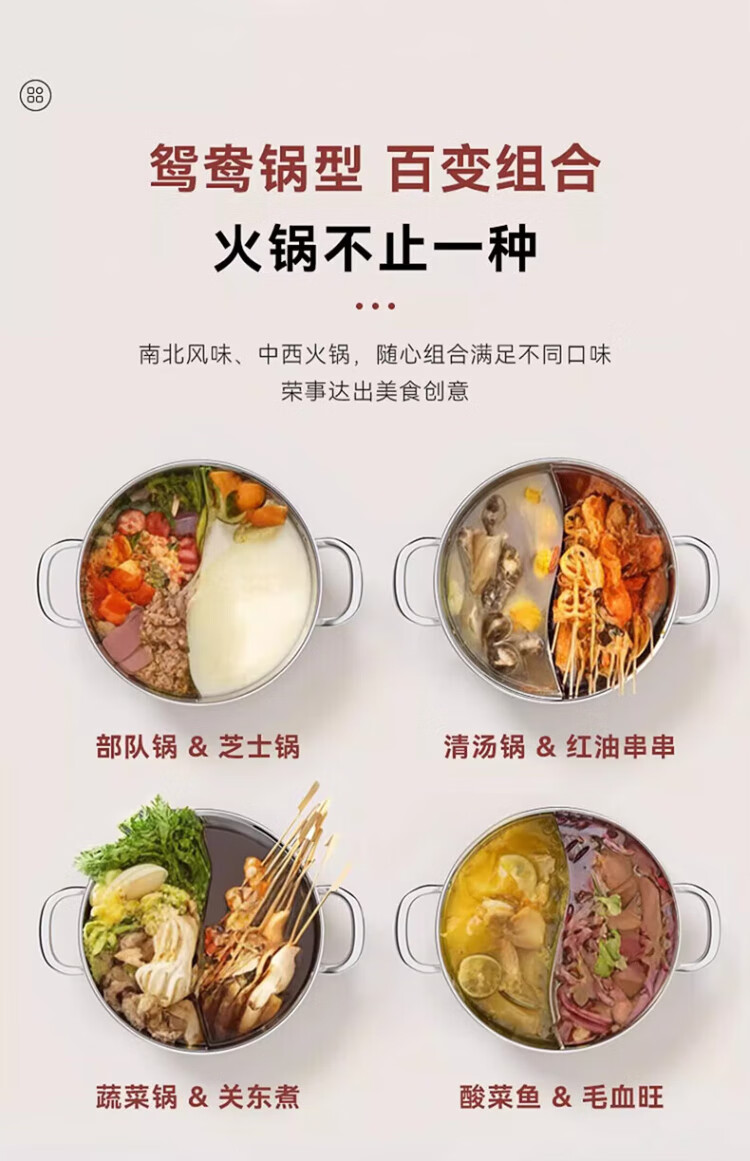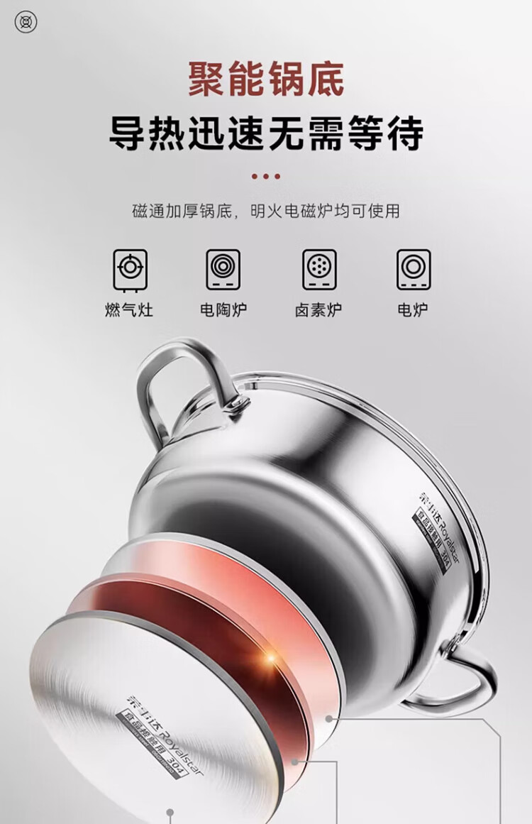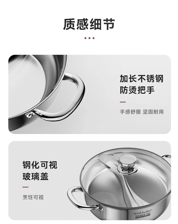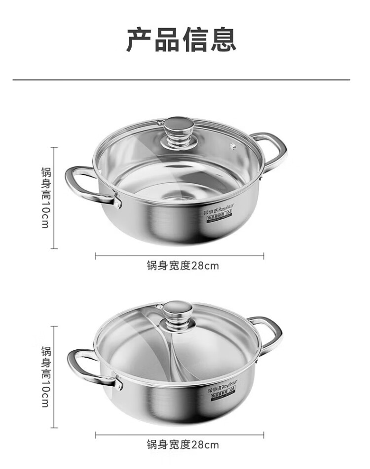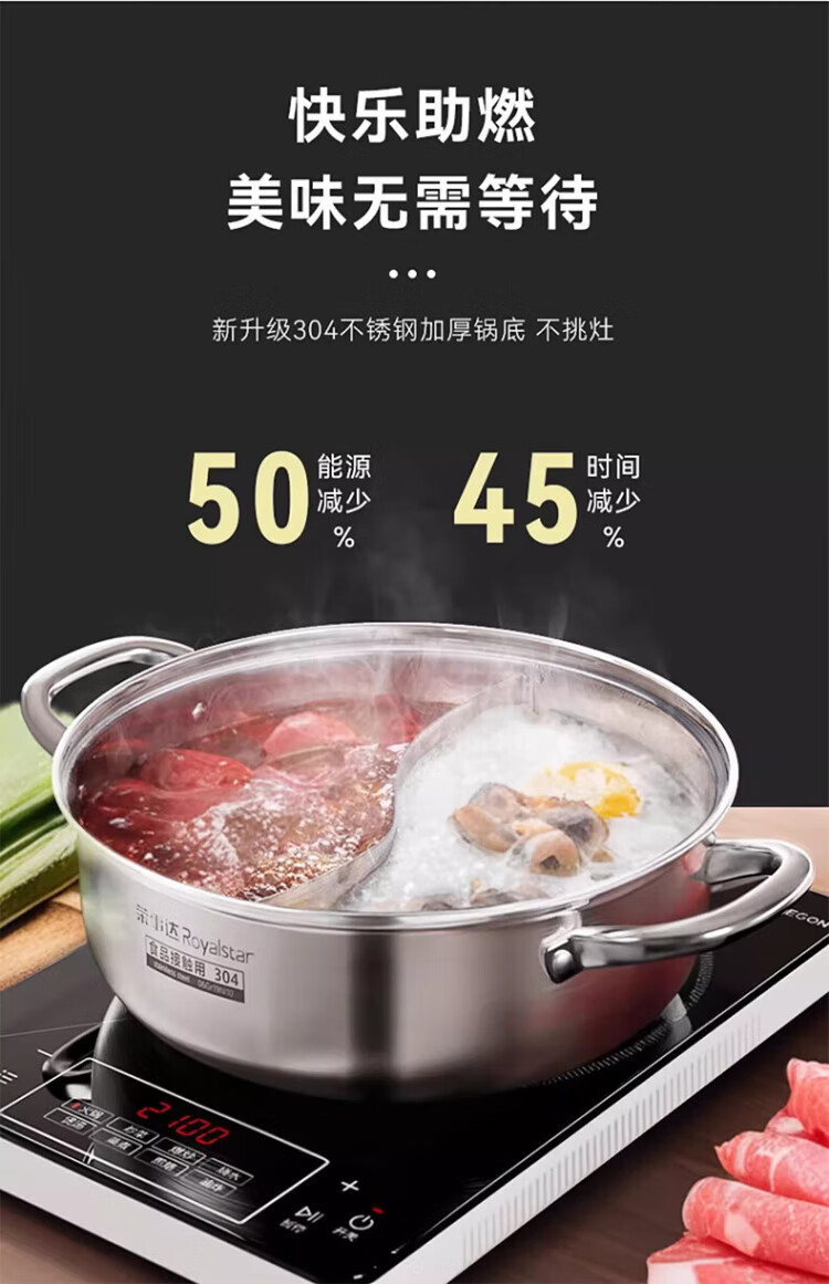 Royalstar Yuanyang Pot/Clear Soup Pot 304 stainless steel induction cooker special thickened hot pot basin hot pot pot for home use 304 Yuanyang Pot (comes with soup colander + lid) 30cm
