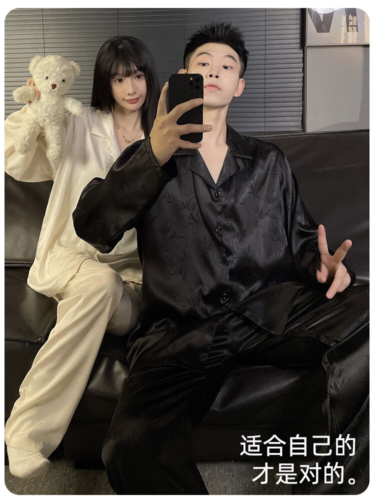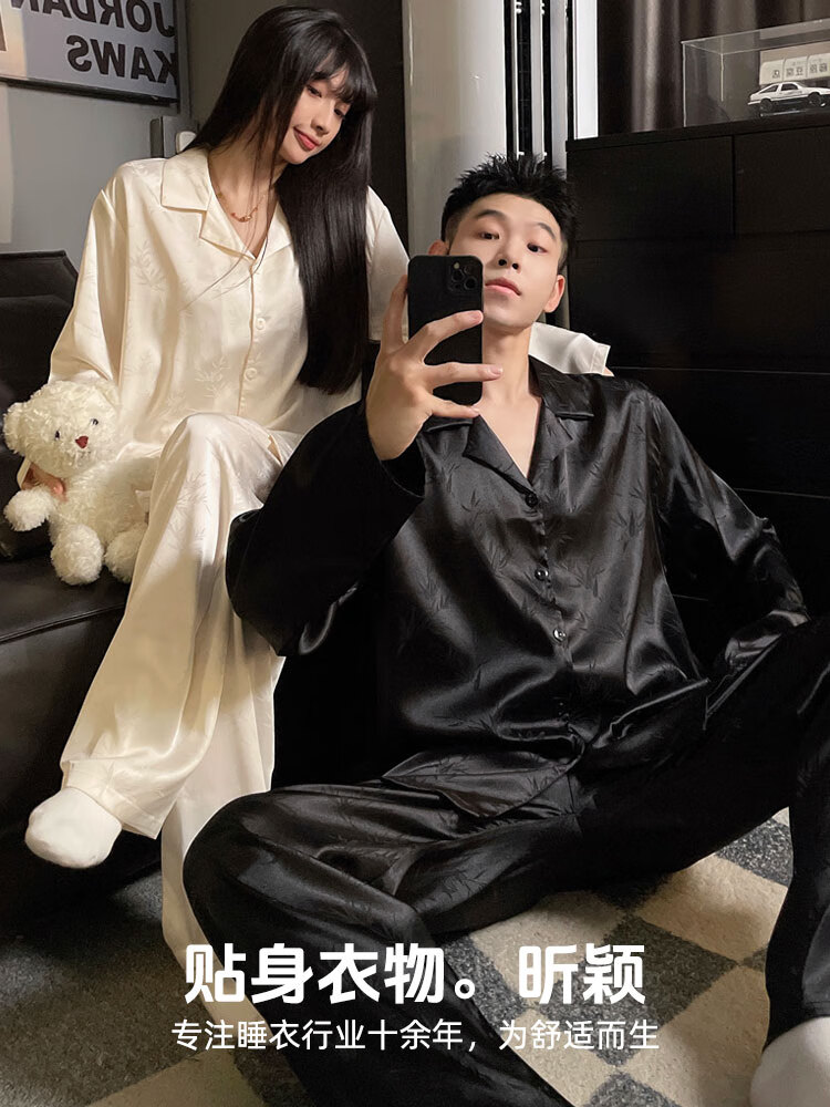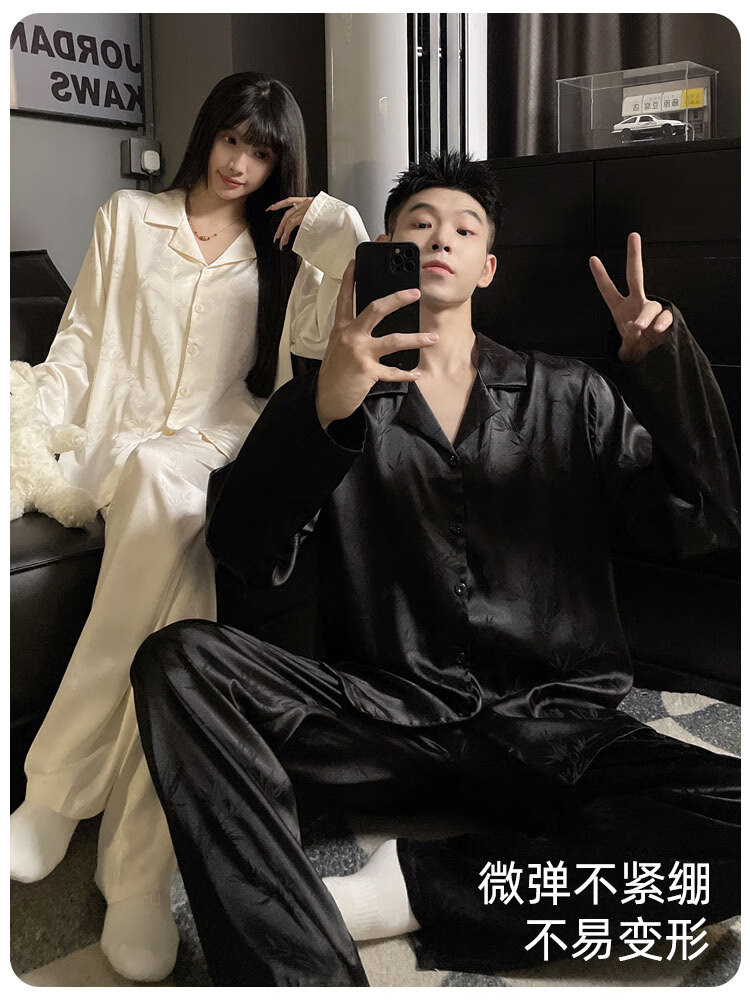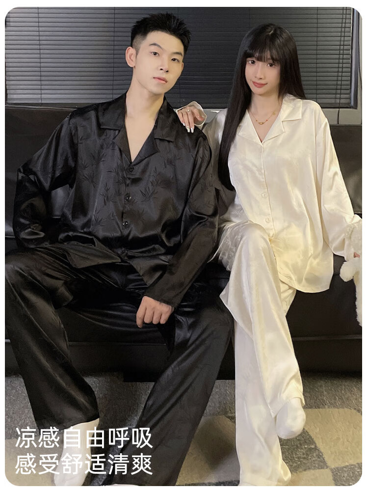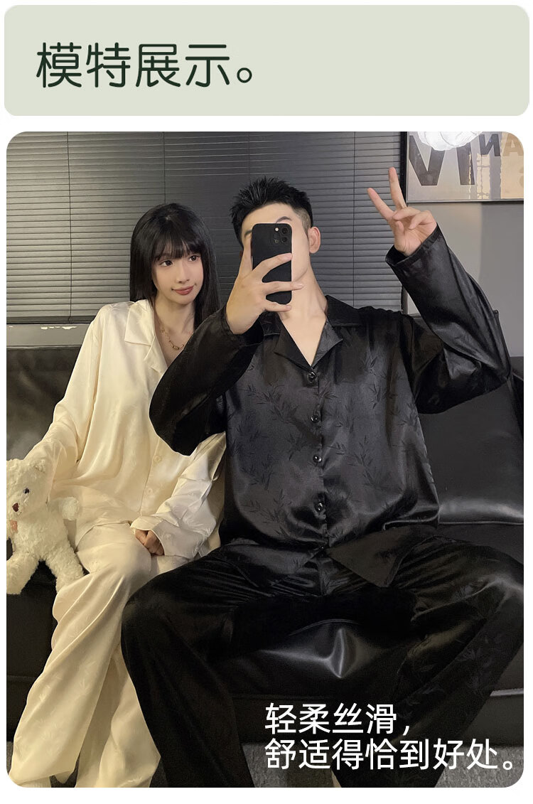 Modal Chinese Style Couple Pajamas Spring and Autumn 2025 New Ice Silk Long Sleeve Feeling Summer Homewear Set for One Man and One Woman XYL#24077 M Women give men XXXL