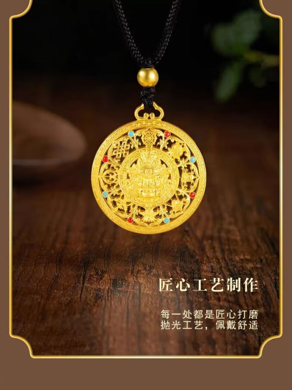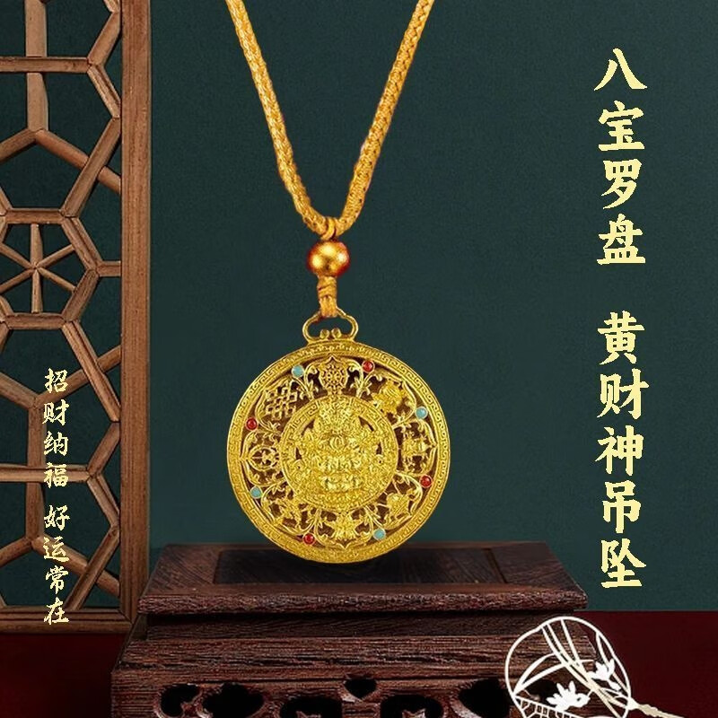 Pu Lian Huang God of Wealth Eight Treasures Compass Keychain Men and Women Simulated Gold Vietnamese Sand Gold Pendant Necklace Braided Rope Sweater Chain Lucky Pendant Eight Treasures Compass Huang God of Wealth (Keychain)