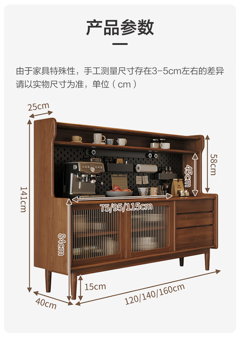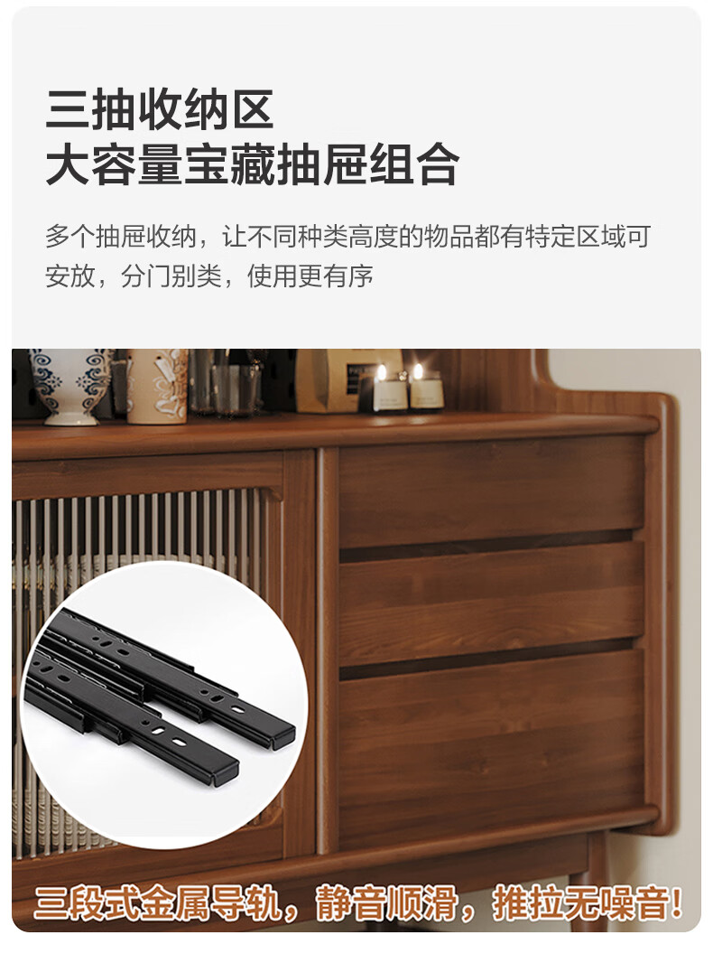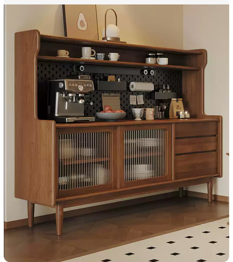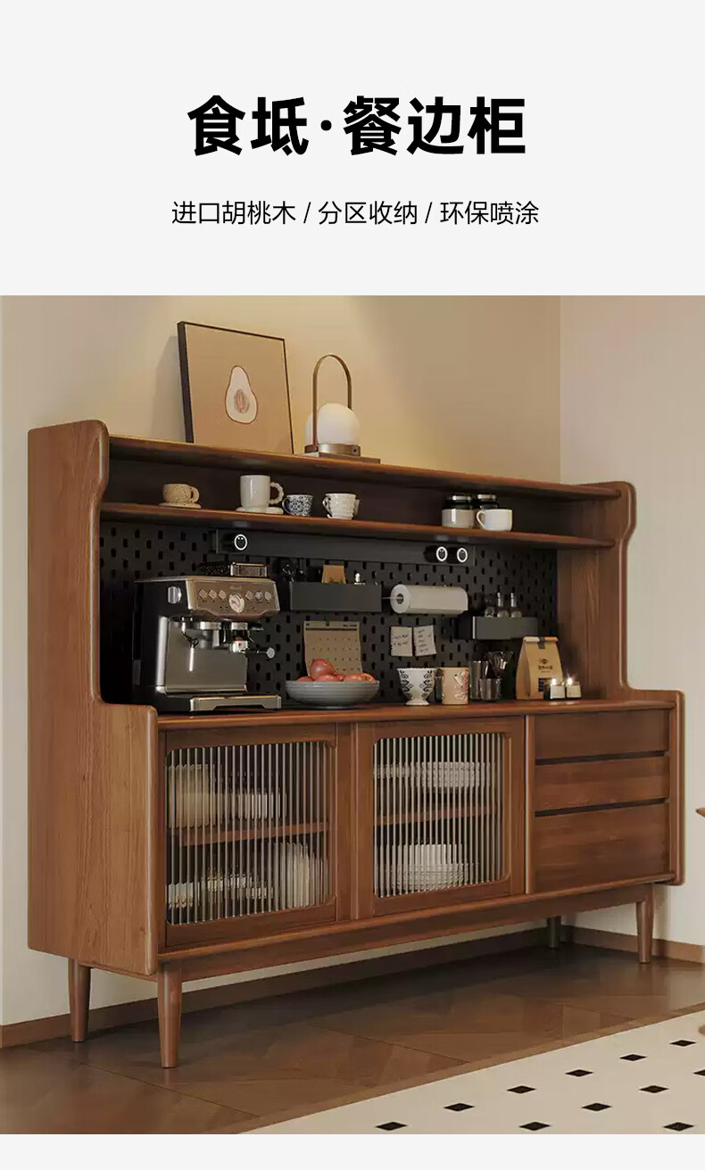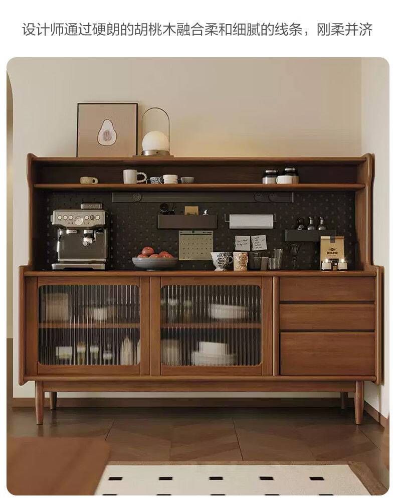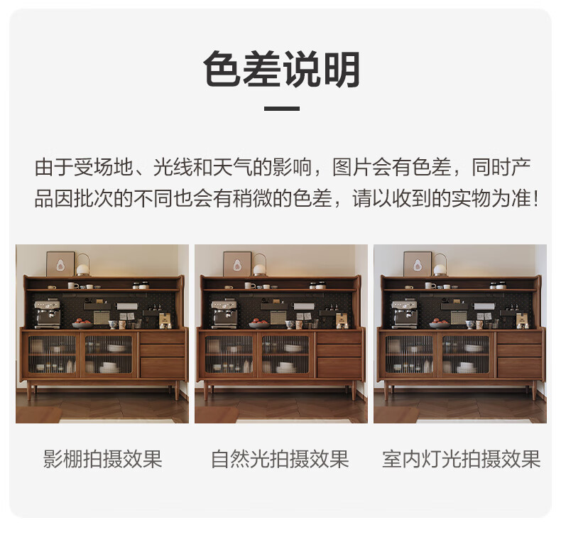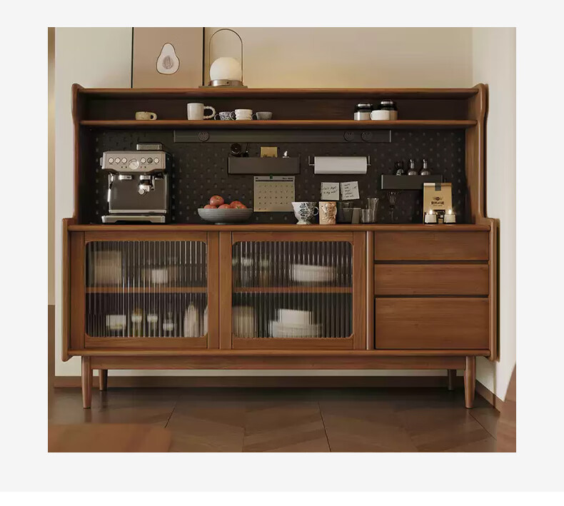 Moon Shadow Comb Tung antique-style solid wood sideboard black walnut retro glass cabinet restaurant home wall storage cabinet storage cabinet 1.6 meter sideboard + power rail (please note color when ordering)