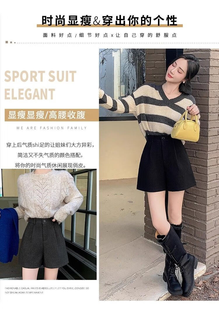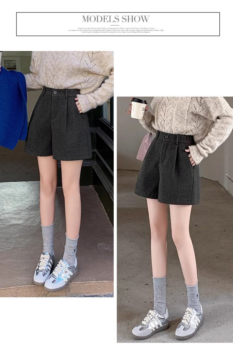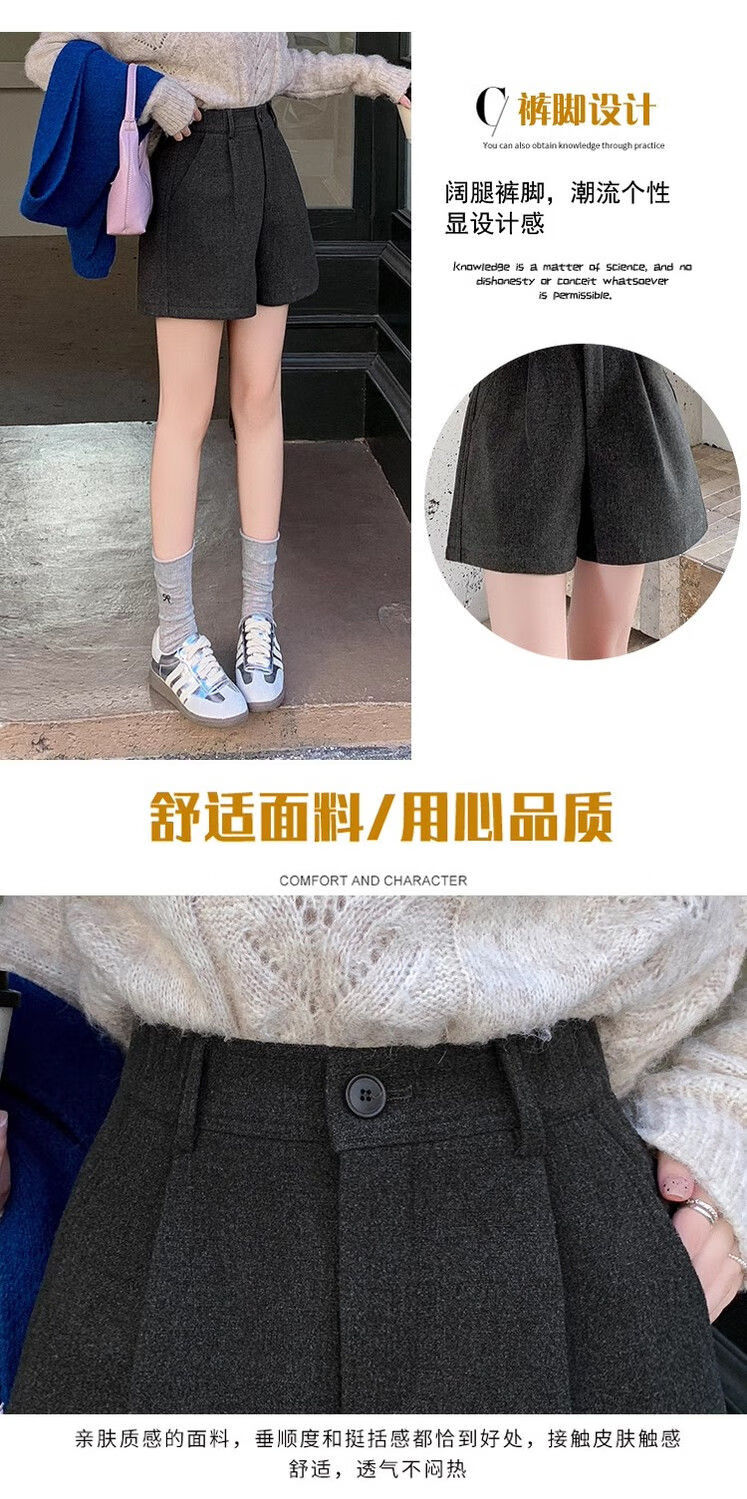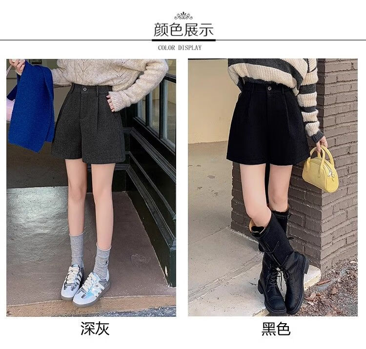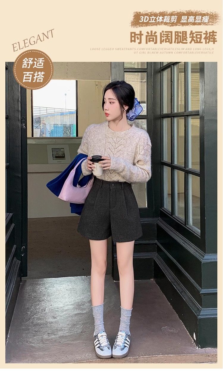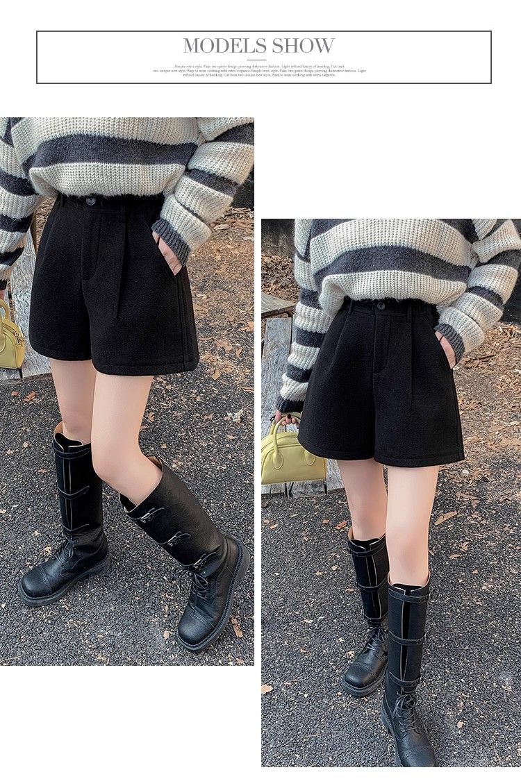 Korean style woolen shorts for women 2025 autumn and winter high-waisted hip-covering wide-leg pants for small people A-line Martin boot pants M01 black without belt M recommended 95-105Jin Jin equals 0.5 kg