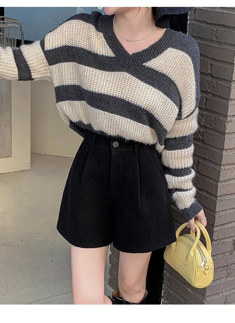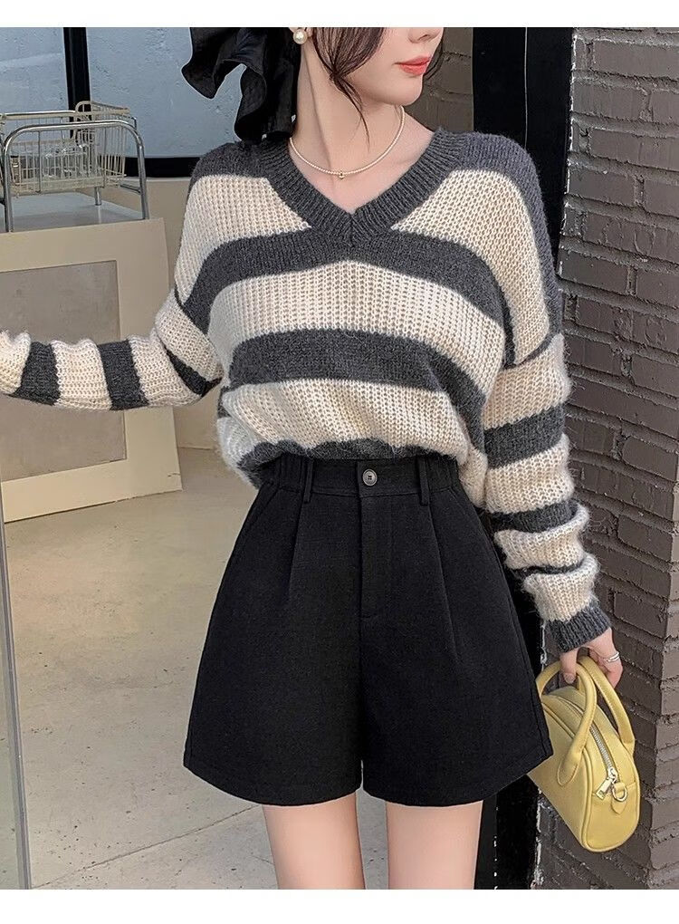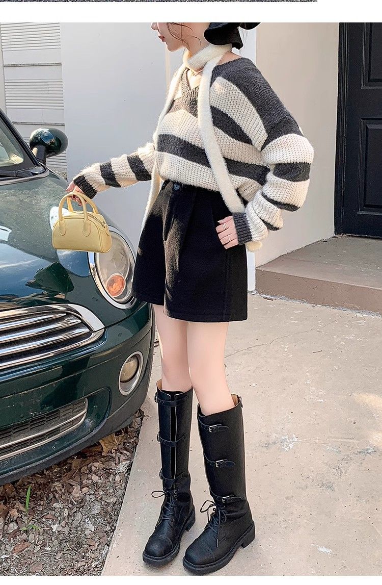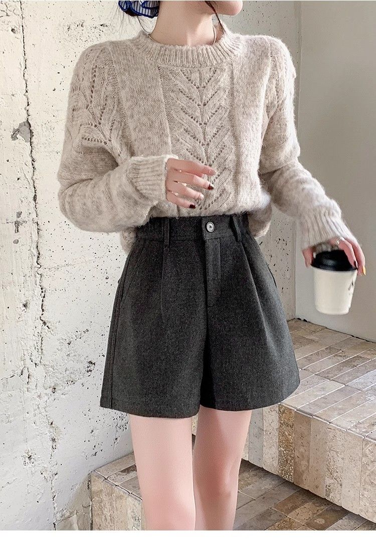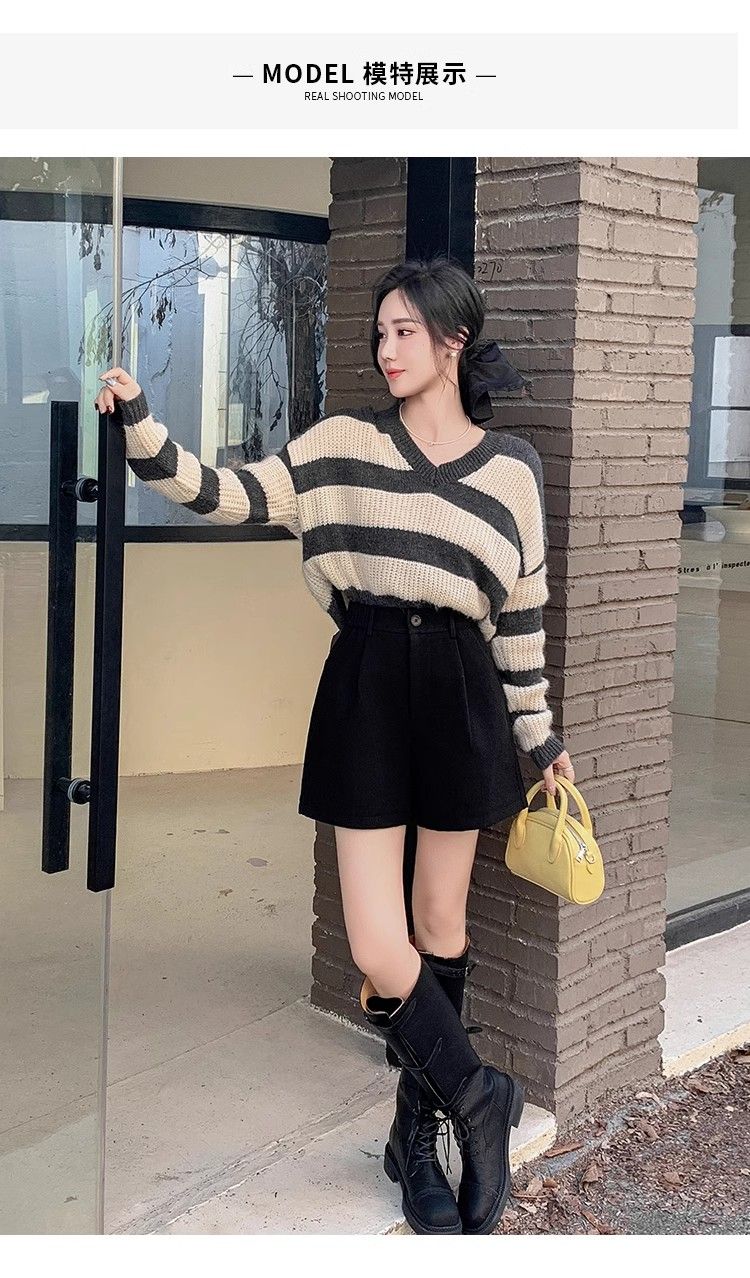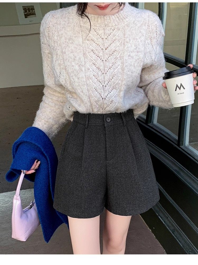 Korean style woolen shorts for women 2025 autumn and winter high-waisted hip-covering wide-leg pants for small people A-line Martin boot pants M01 black without belt M recommended 95-105Jin Jin equals 0.5 kg