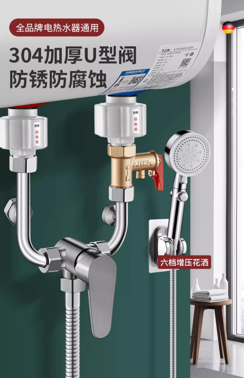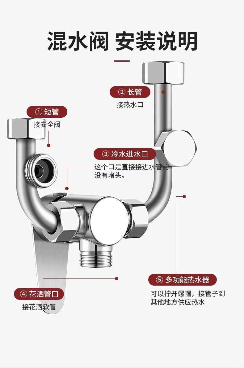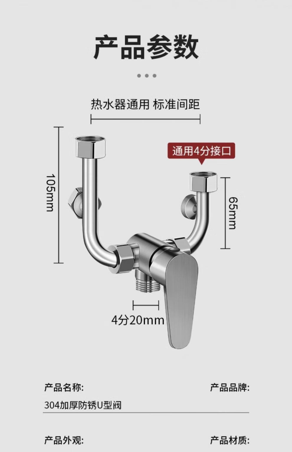 U-shaped mixing valve electric water heater accessories equipped with Daquan hot and cold faucet shower head three-way switch 304 anti-rust style mixing valve universal installation