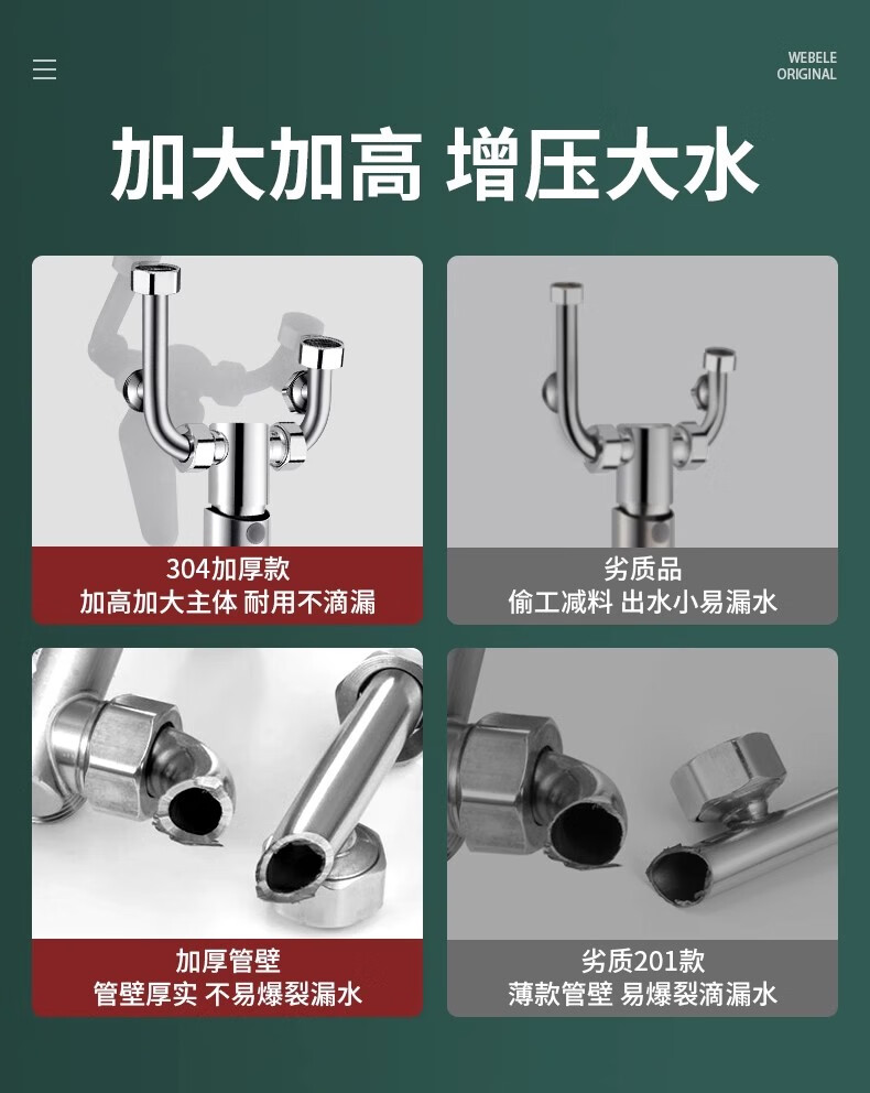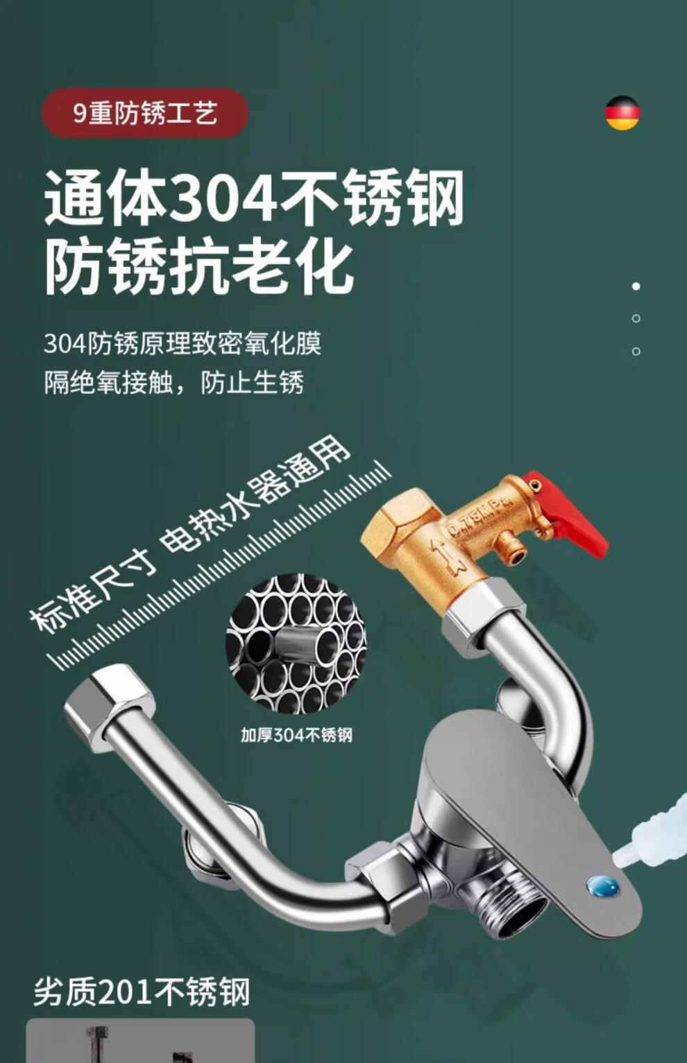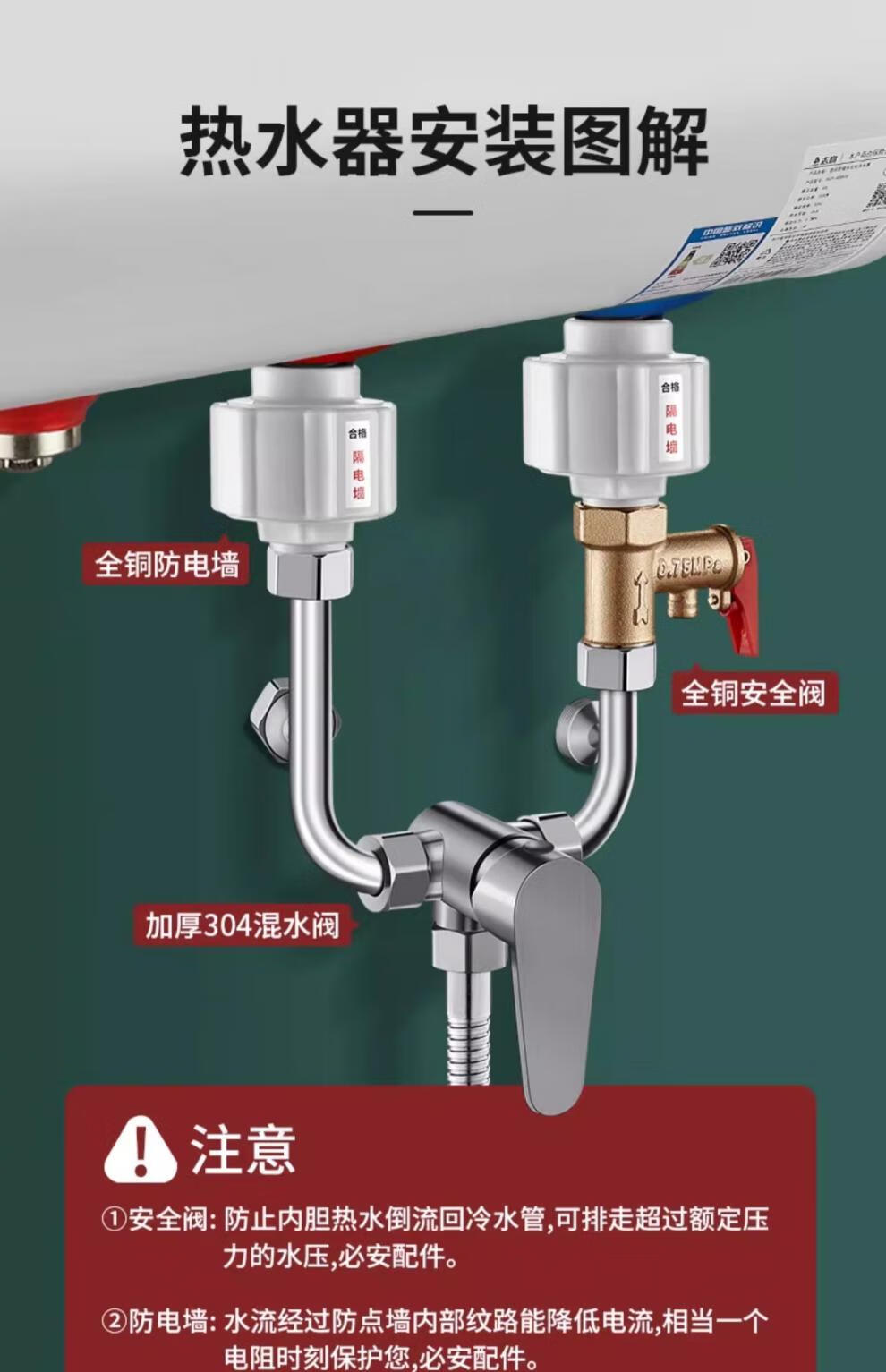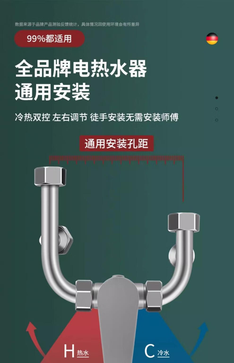 U-shaped mixing valve electric water heater accessories equipped with Daquan hot and cold faucet shower head three-way switch 304 anti-rust style mixing valve universal installation