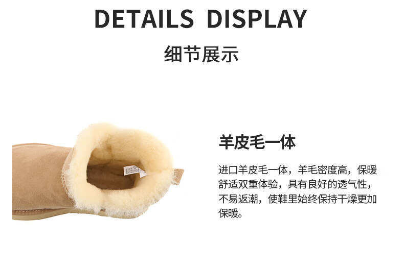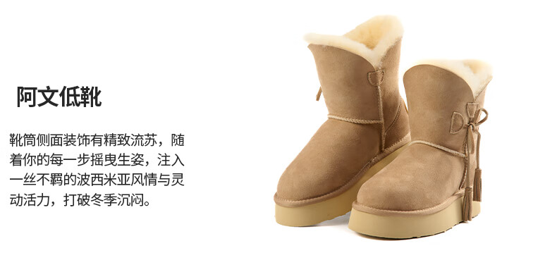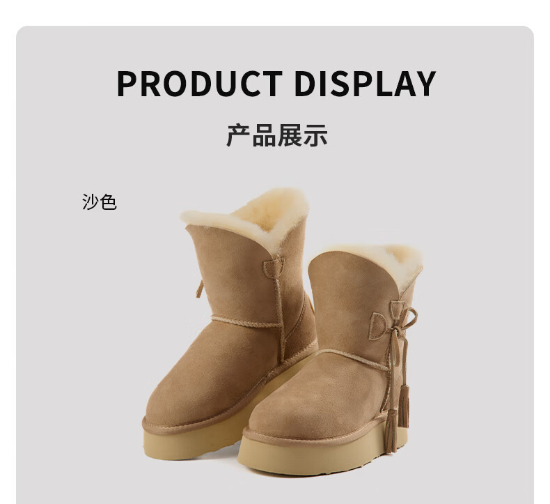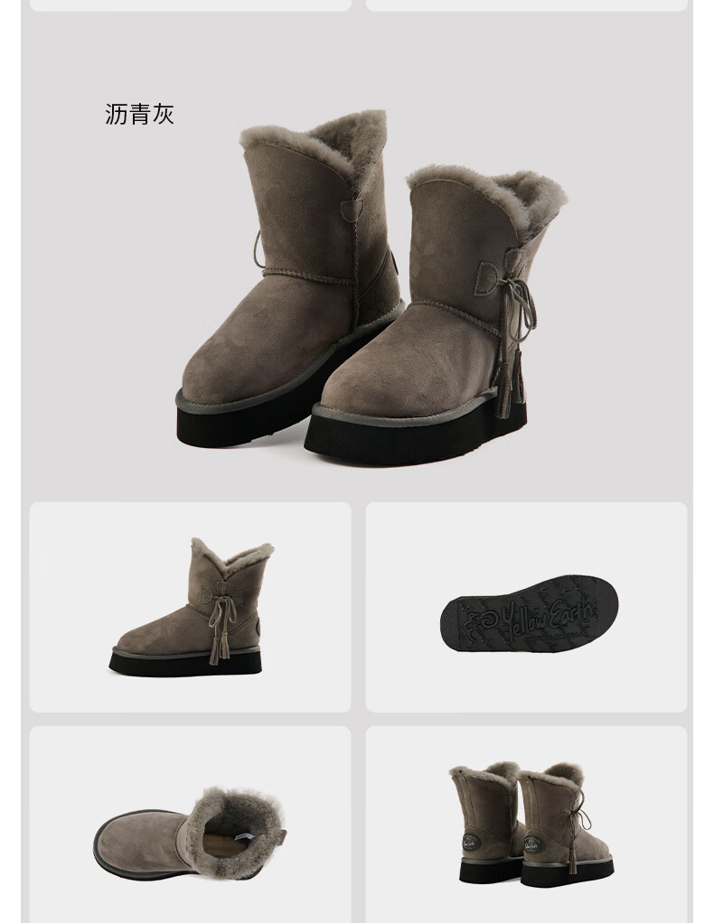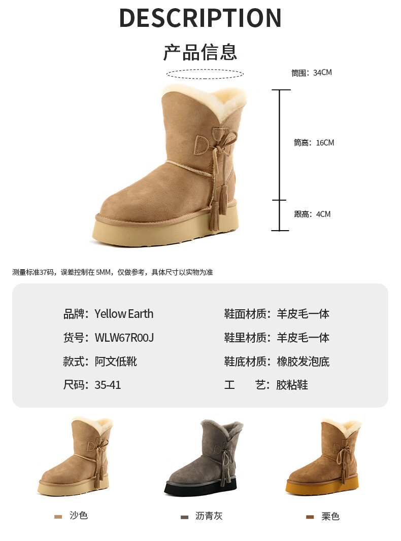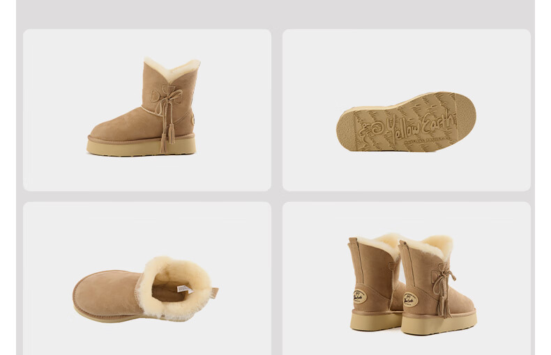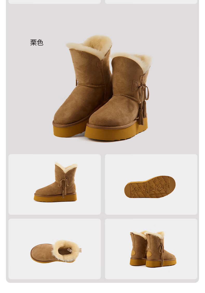 Yellow Earth2025 Autumn and Winter Snow Boots Women's Sheepskin One-Piece Fringe Lace-Up Short Boots 67R Sand Color 39