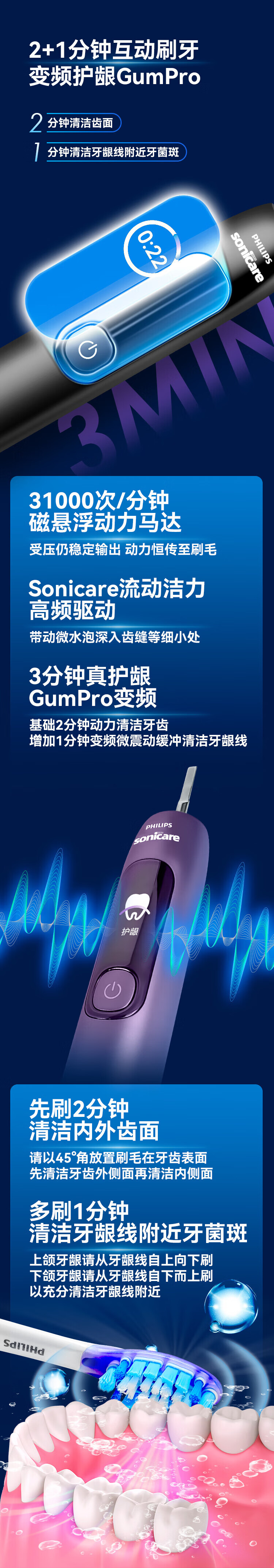 Philips (PHILIPS) Electric Toothbrush Adult Sonic Vibration Toothbrush Couple Style Soft Bristle Gum Protection Holiday Gift for Boyfriend/Girlfriend Philips Multi-Effect High-Purification Toothpaste 90g Pack