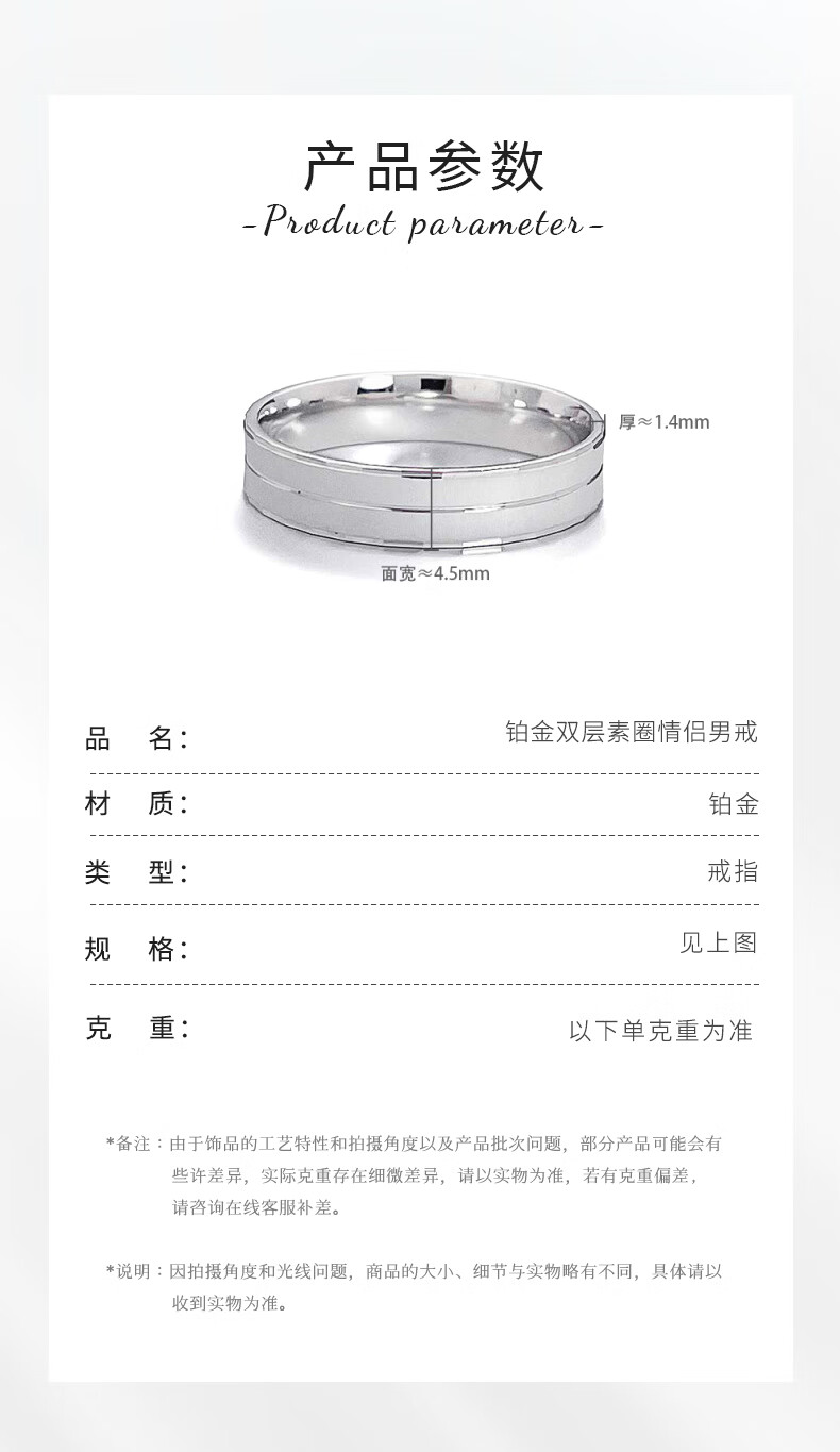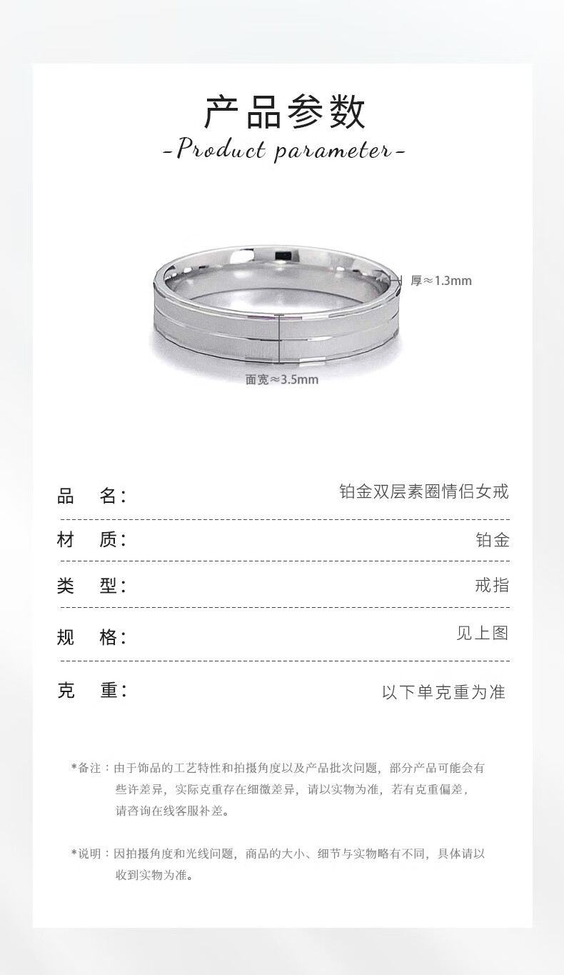 Laofu gold platinum ring platinum double layer ring couple ring gift girlfriend girlfriend gift gift men's ring about 5.87g
