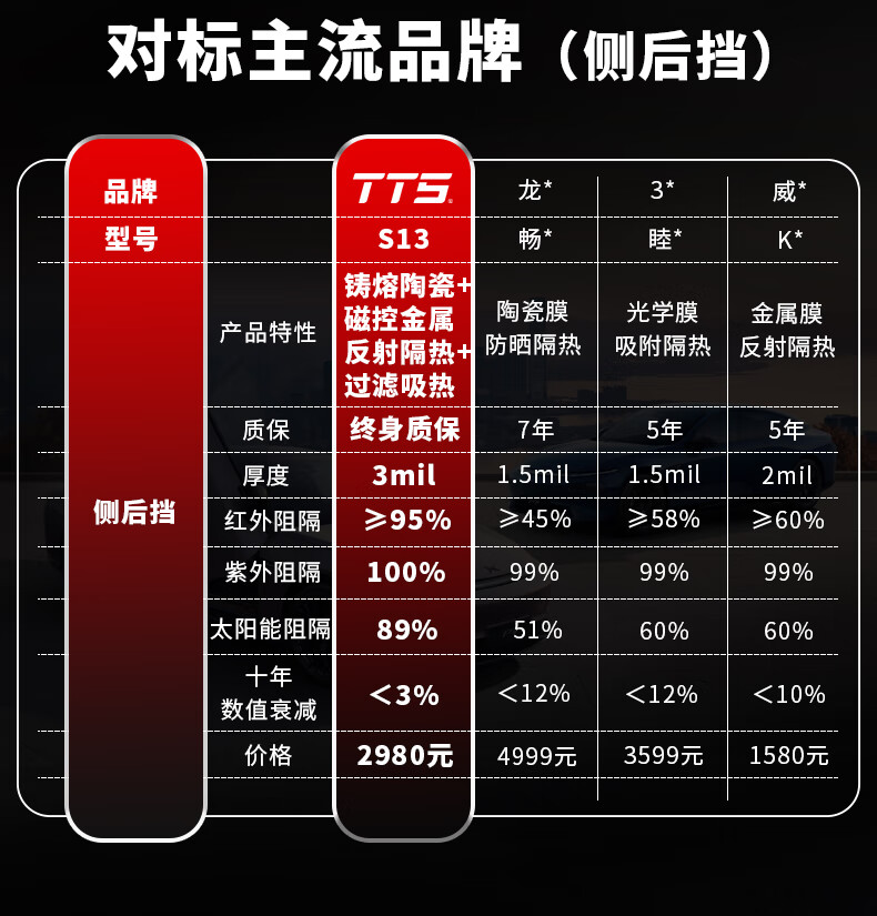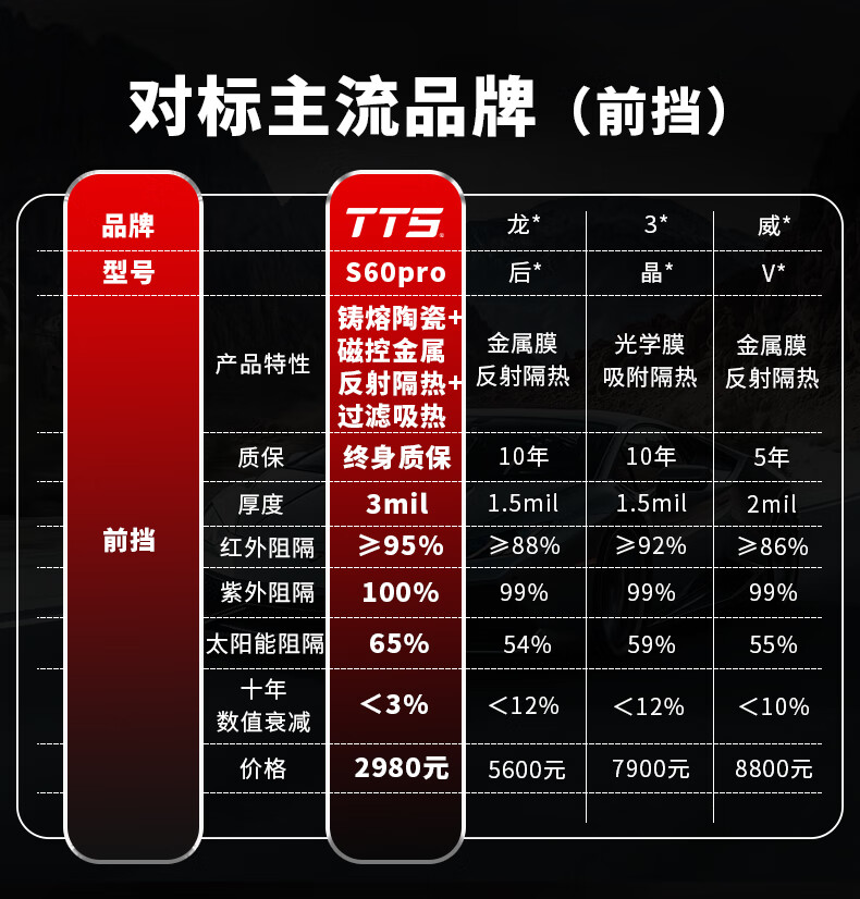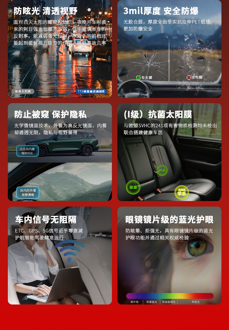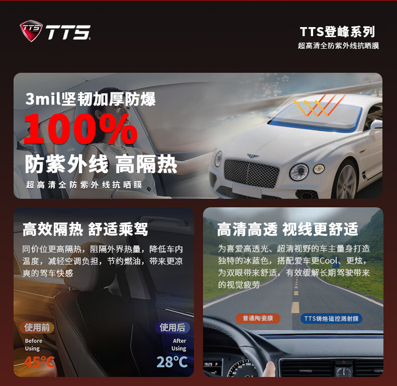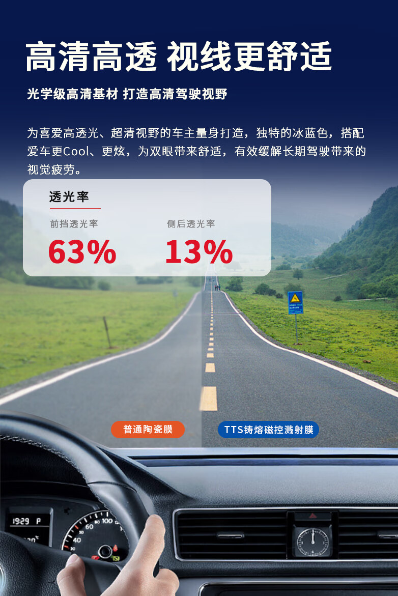TTS car film 100% anti-UV car film car film solar film insulation film full car film glass film window glass privacy sun protection explosion-proof film including old removal high-definition front + high-hidden side rear (100% anti-UV)