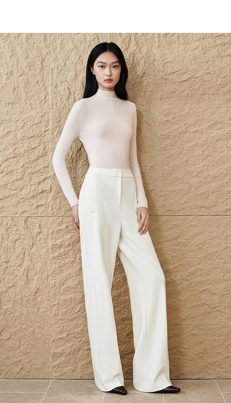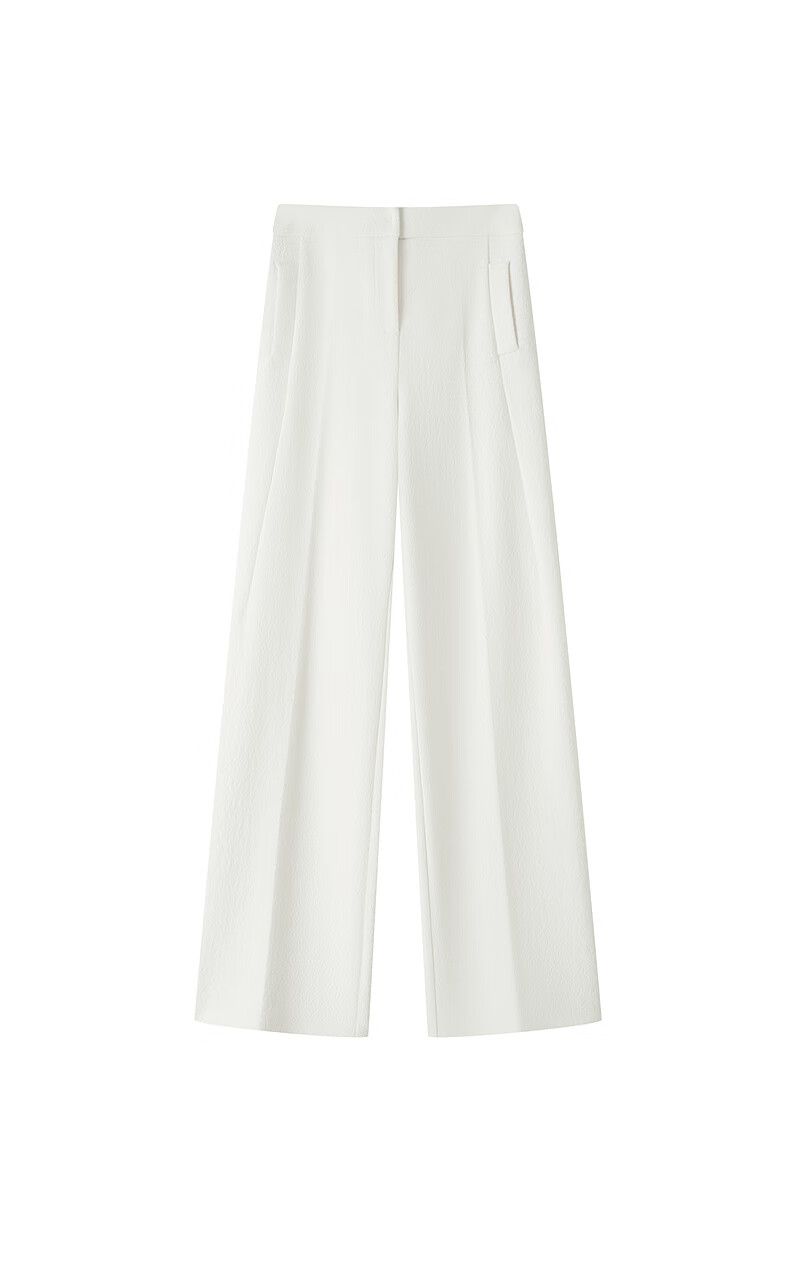 INSUN's ideal bottoms, INSUN's exclusive selection of winter wide straight stretch knitted suit pants, white S