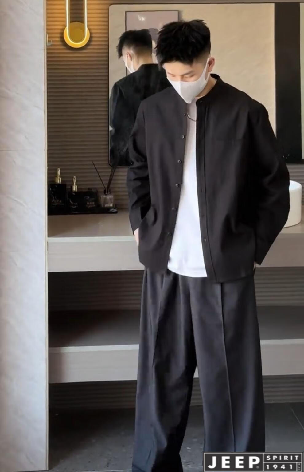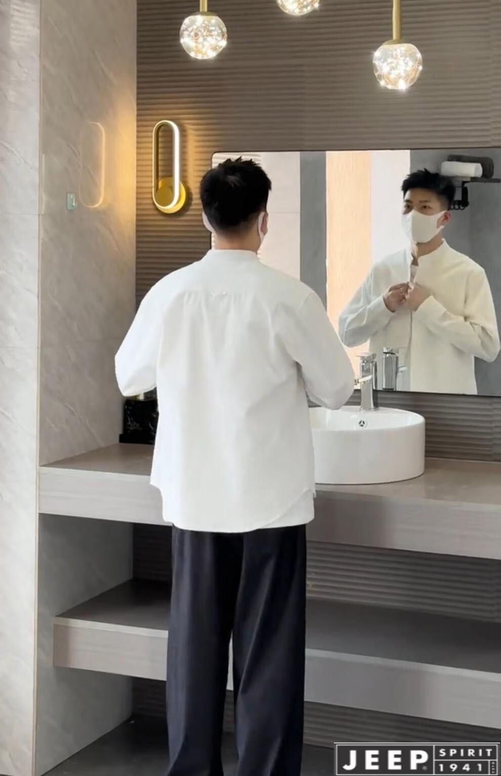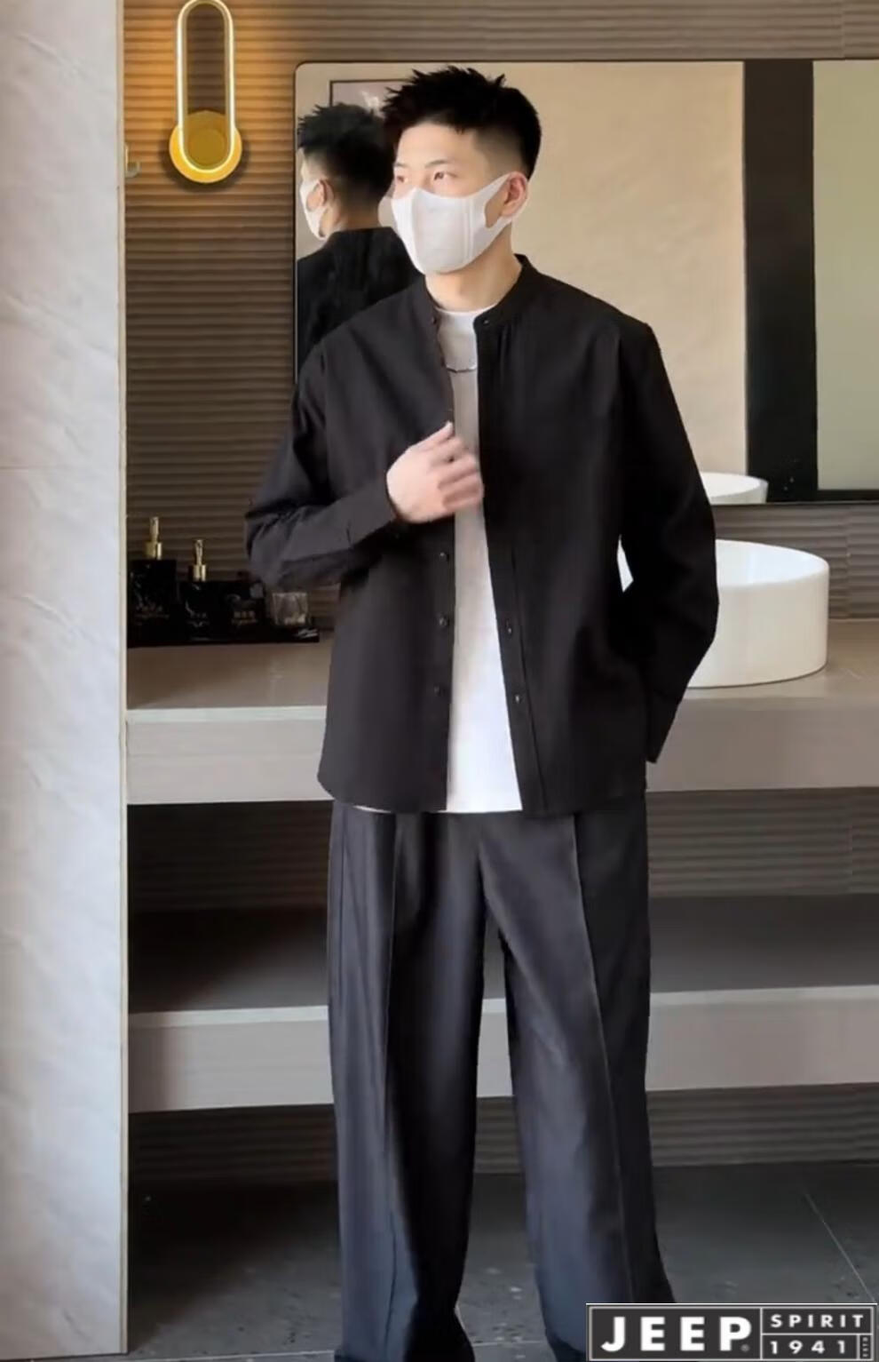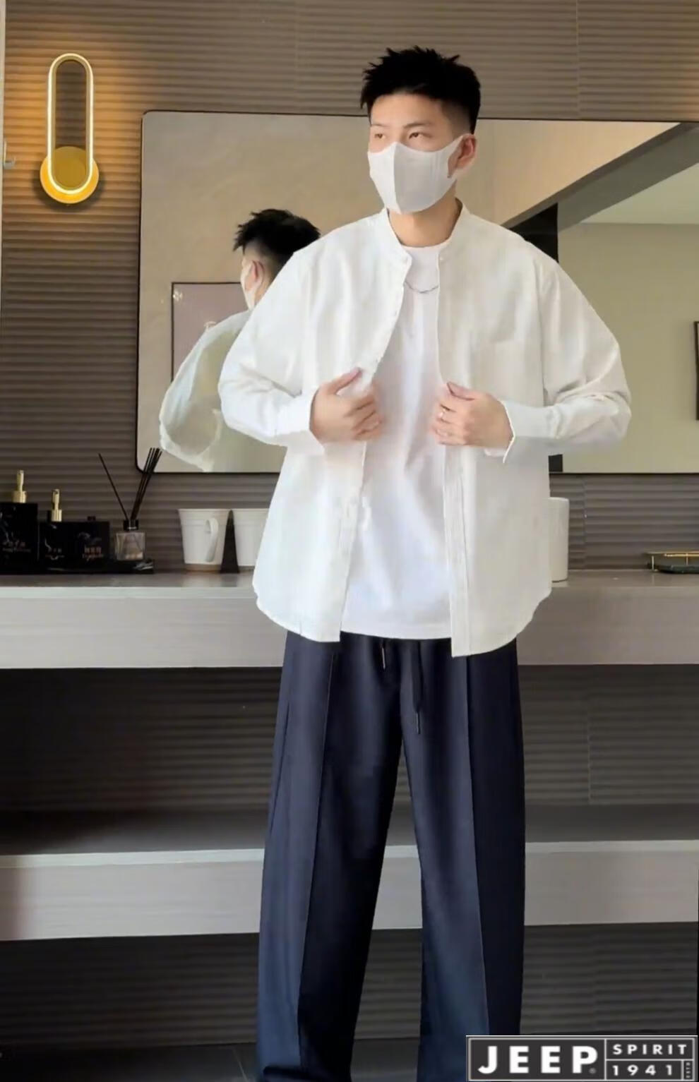 JEEP2025 Spring and Autumn Simple Henry Collar Casual Shirt Men's Fashion Old Money Style Loose Versatile Textured Long-Sleeved Top White M 100-130Jin Jin is equal to 0.5 kg
