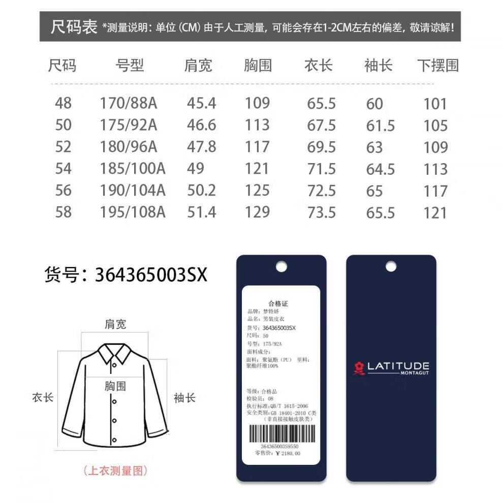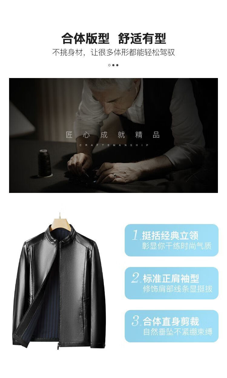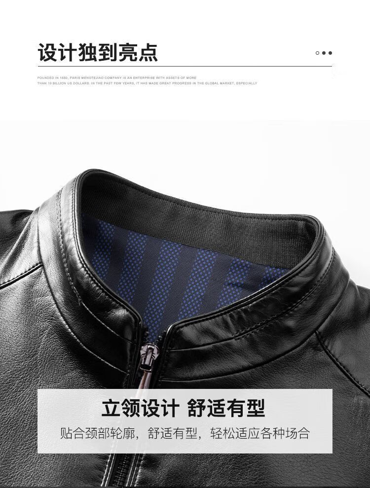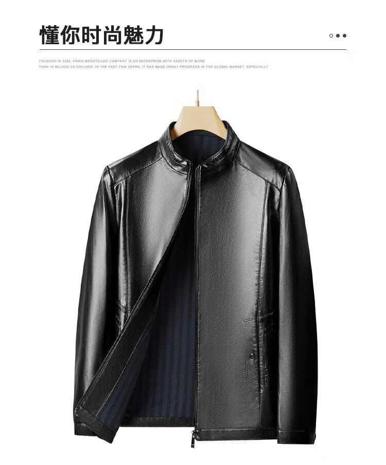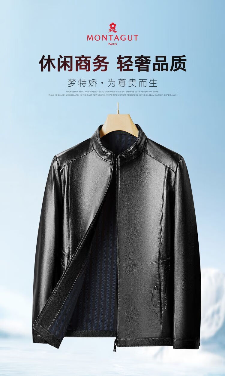 梦特娇(MONTAGUT)【优选皮革&防风保暖】梦特娇专款秋冬立领皮衣男外套364365003SX 中灰 4XL 58 195/108A