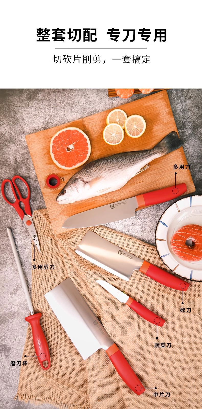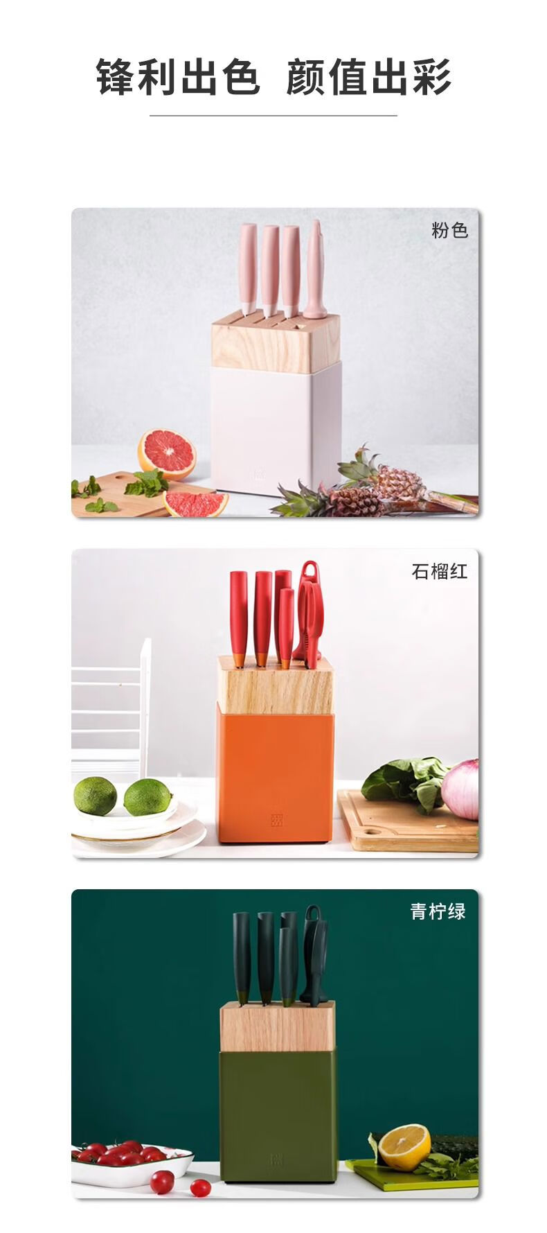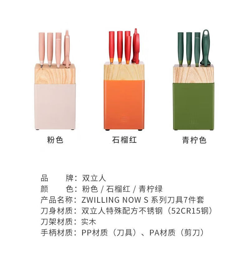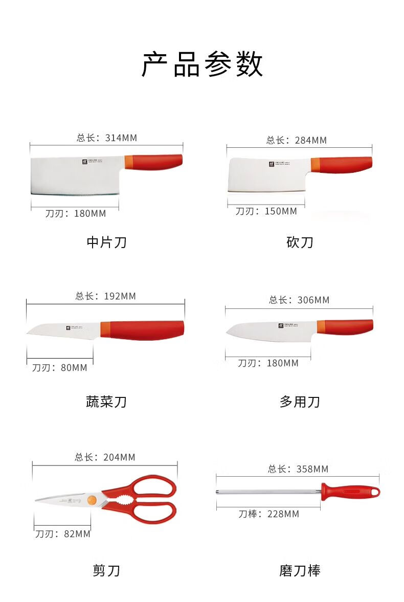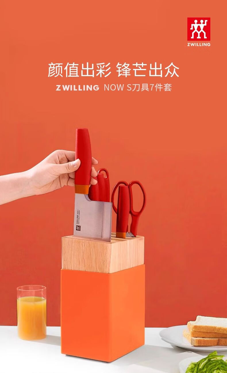 German NowS Knife 7-piece Set Home Kitchen Stainless Steel Kitchen Knife Slicing Knife Bone Knife Sharp Gift Pomegranate Red 7-piece Set 18cm