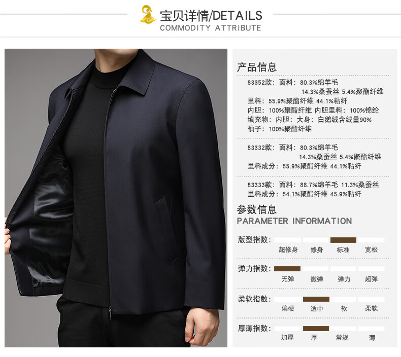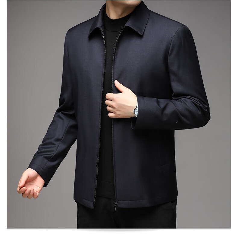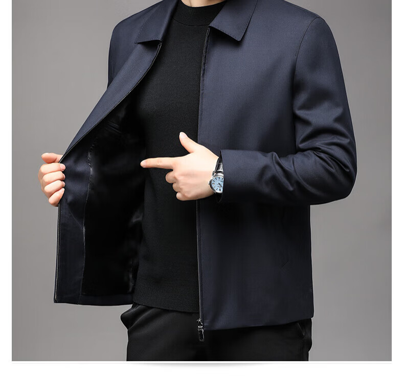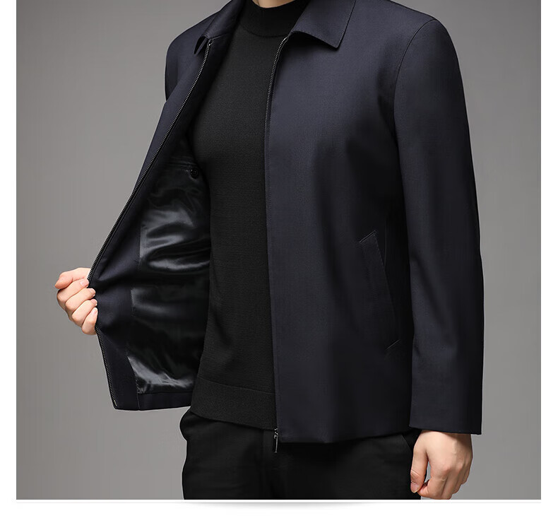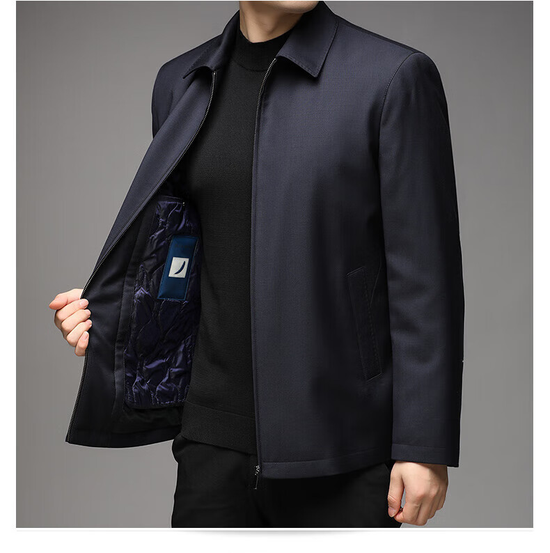 BG GLAMURB Light Luxury Brand Jacket Men's Jacket Men's Mulberry Silk Wool Removable White Goose Down Liner Jacket Navy Blue 05 Style Removable Liner L 175