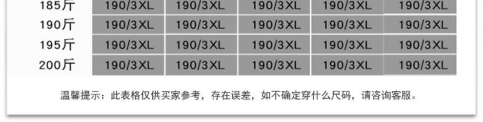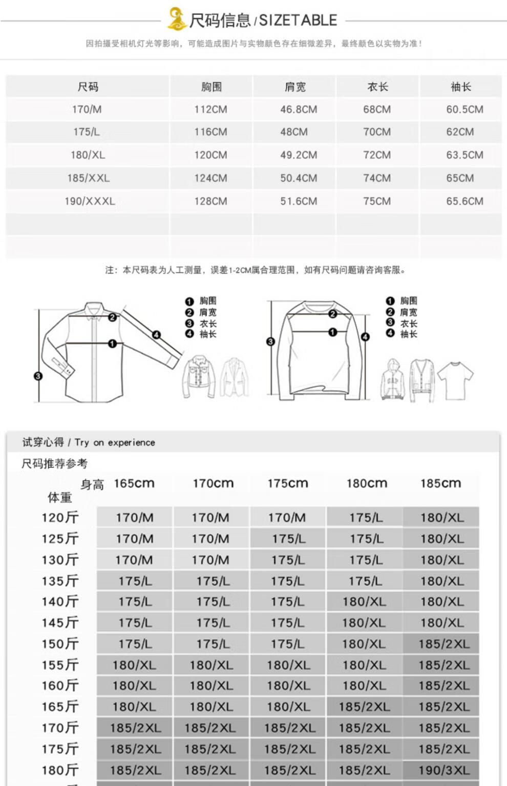 China (cm) 165 / 88-90 170 / 96-98 175 / 108-110 180 / 118-122 185 / 126-130