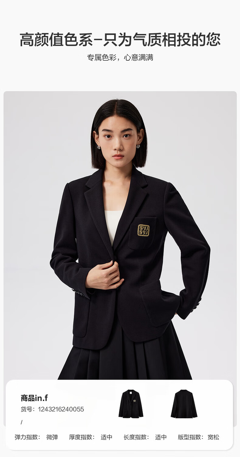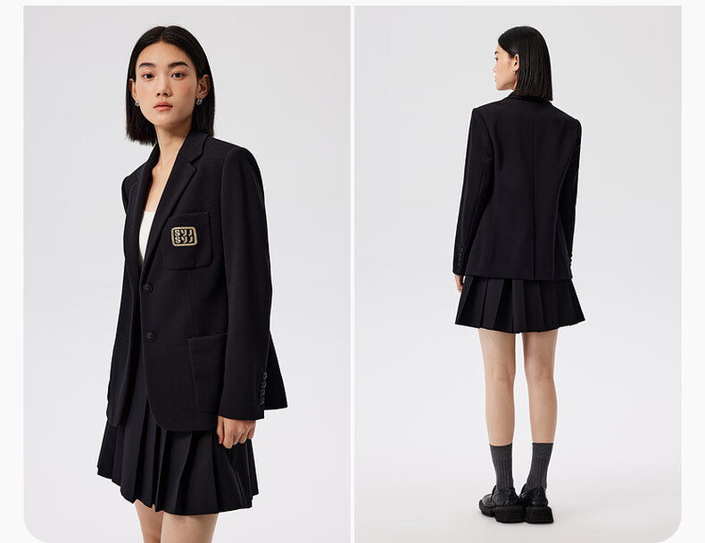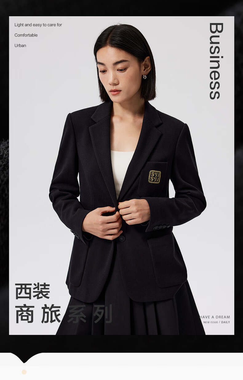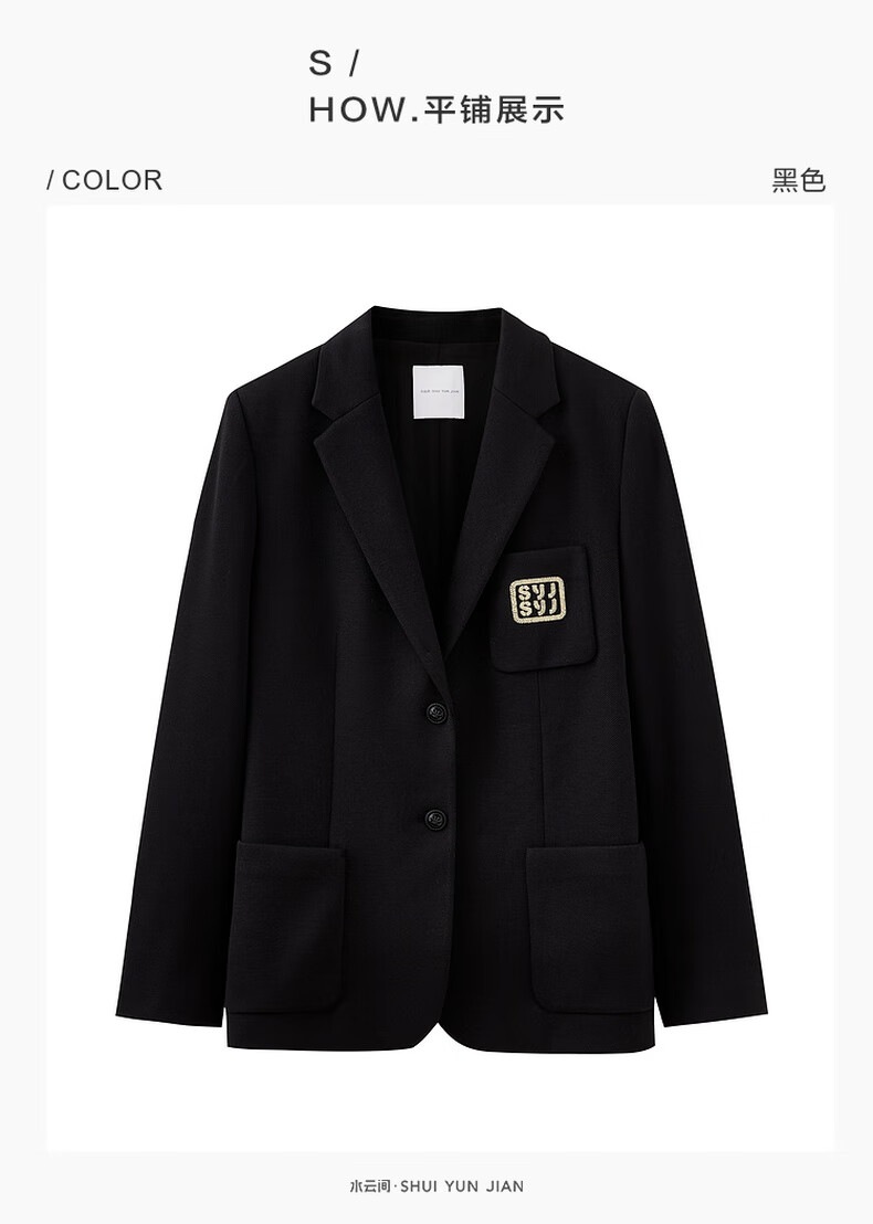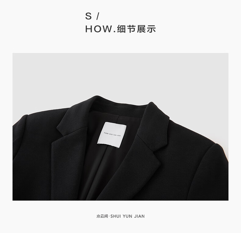 Shuiyunjian College Style Small Suit Jacket Women's Black Straight Shoulder Suit High Intellectual Long Sleeve Top 2026 Spring New Black M