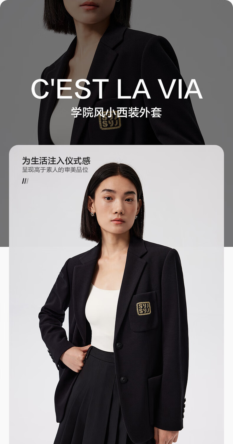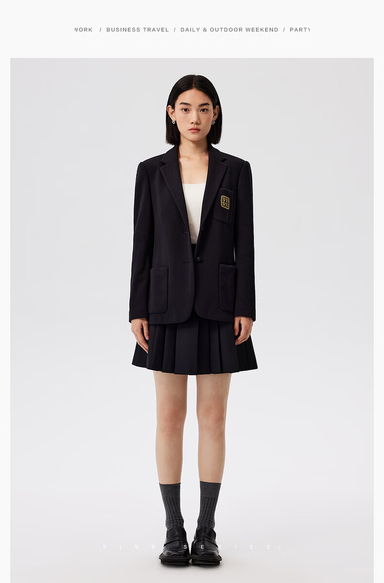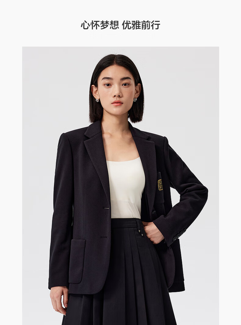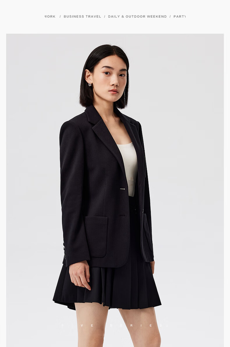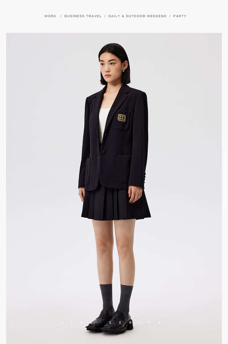 Shuiyunjian College Style Small Suit Jacket Women's Black Straight Shoulder Suit High Intellectual Long Sleeve Top 2026 Spring New Black M