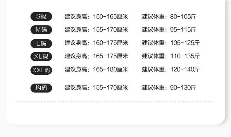 China (cm) 160-165/84-86 165-170 / 88-90 167-172 / 92-96 168-173 / 98-102 170-176 / 106-110