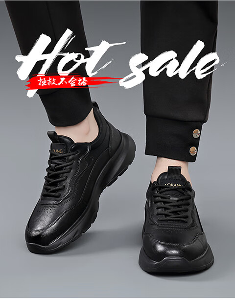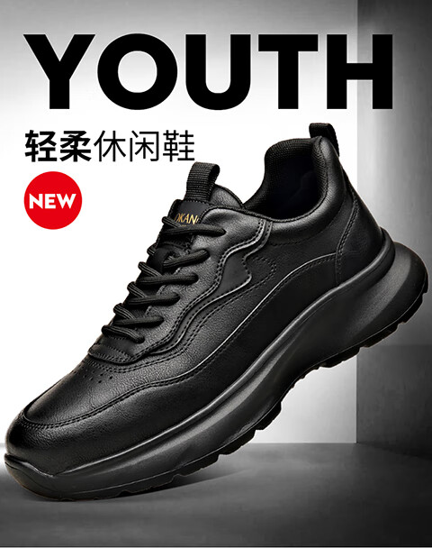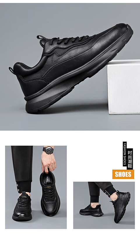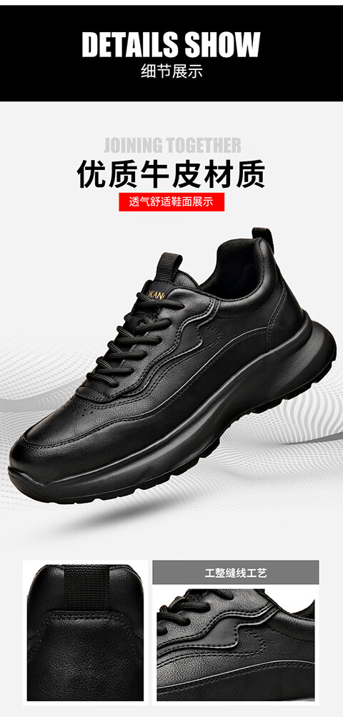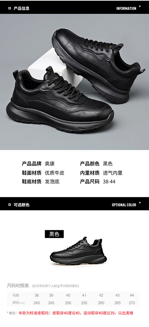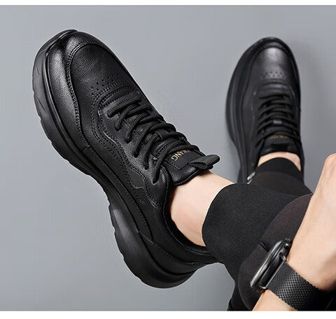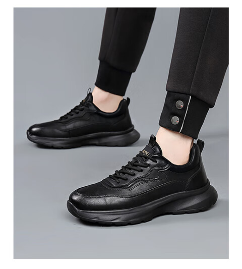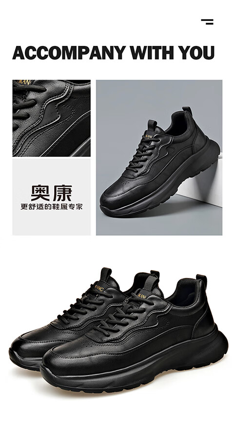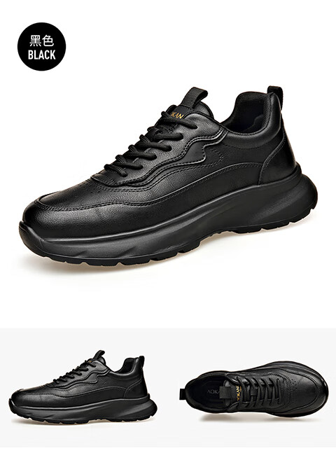 Aokang men's shoes autumn and winter new casual shoes men's genuine leather business men's sports leather shoes men's low-top non-slip work shoes black (1255432113R) 41 (standard leather shoe size)