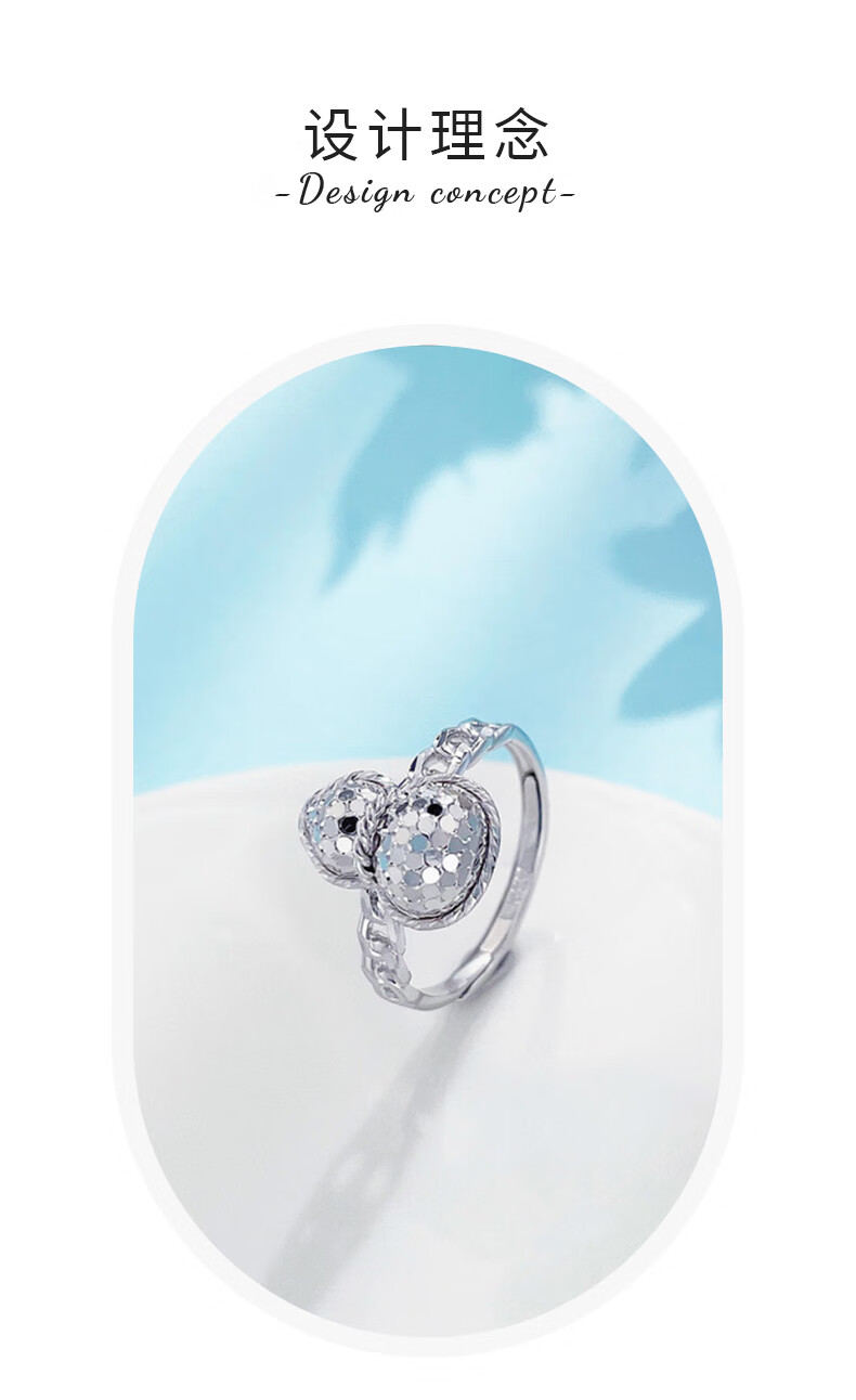 Laofu gold platinum hollow live mouth Fulu double to chain art arm fish scale gourd mother lover's birthday Mid-Autumn Festival gift arm fish scale gourd ring (about 3.7g)