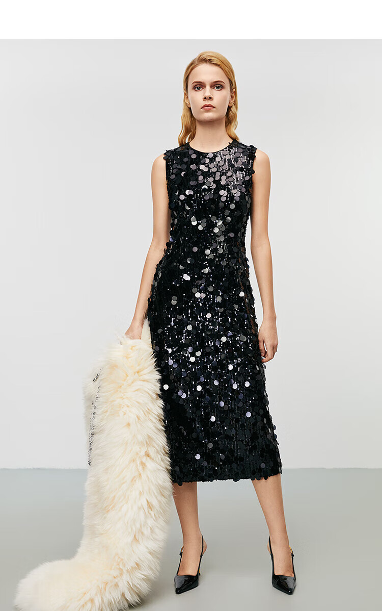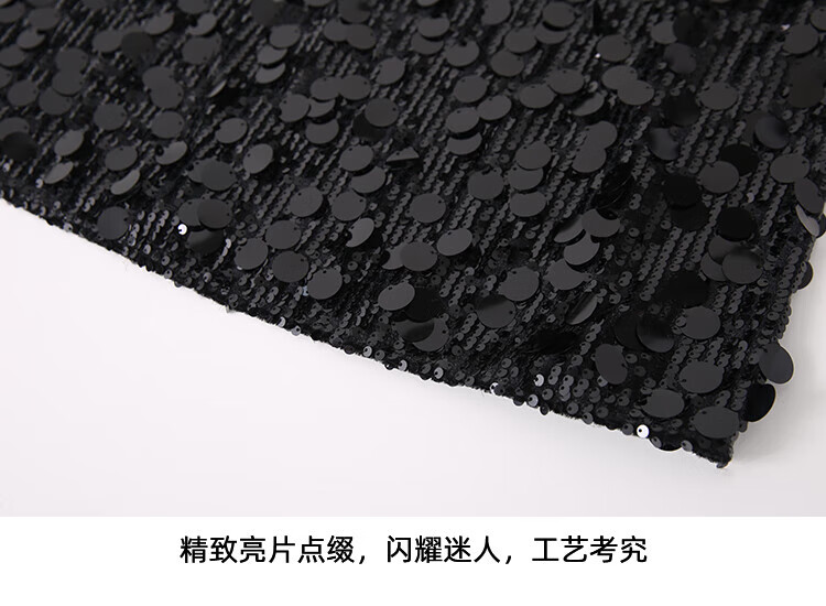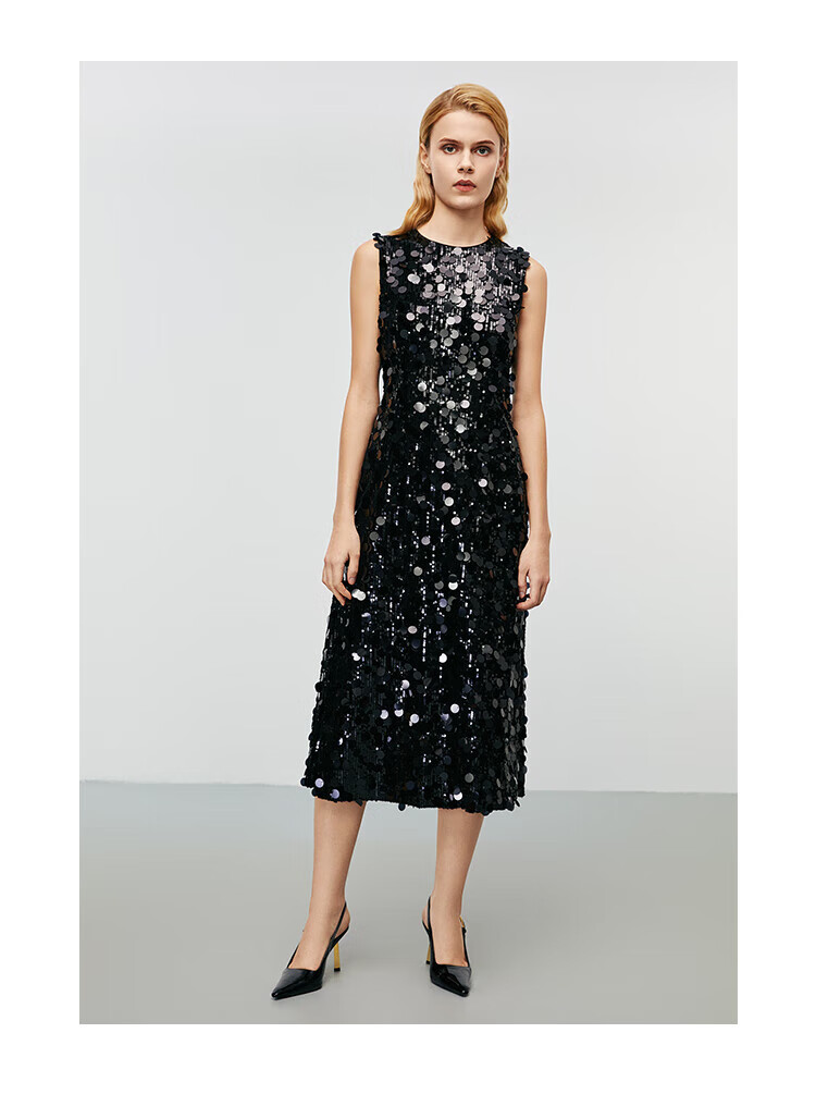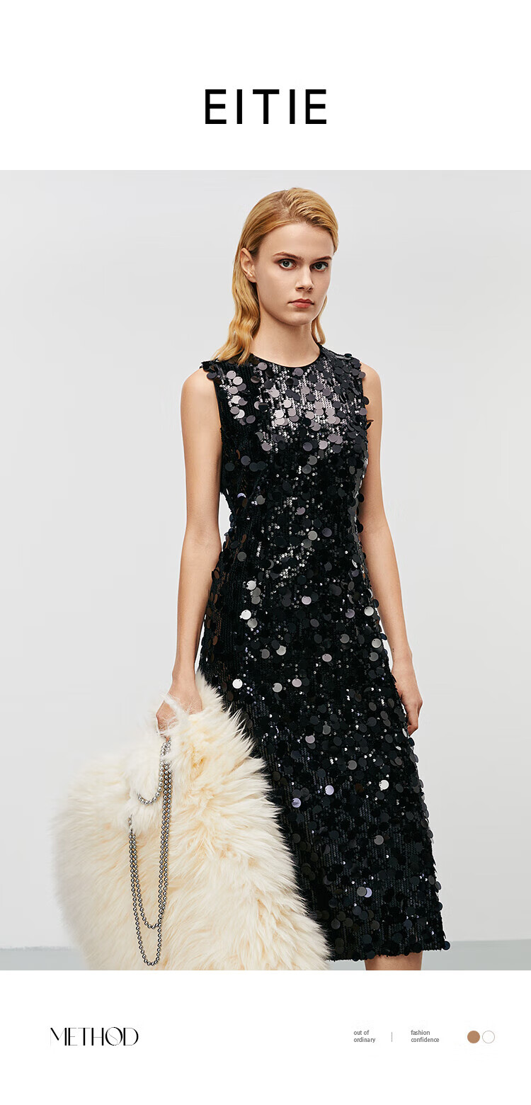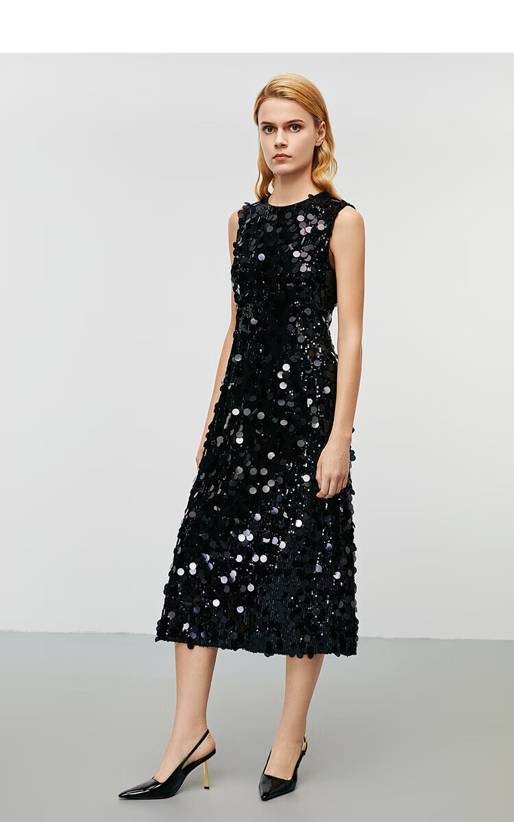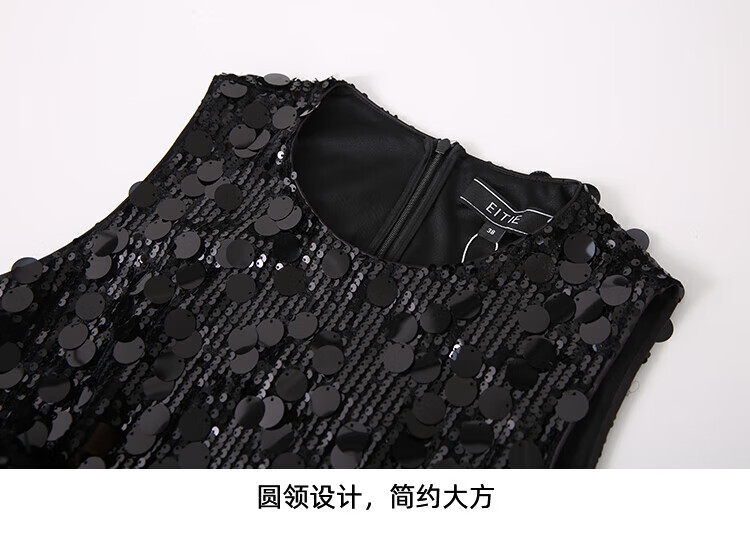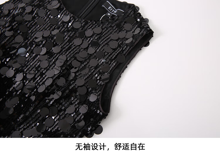 EITIE high-end heavy industry sequin evening dress autumn and winter new sleeveless waist banquet women's wear 8077702 minimalist black 20 S (155)