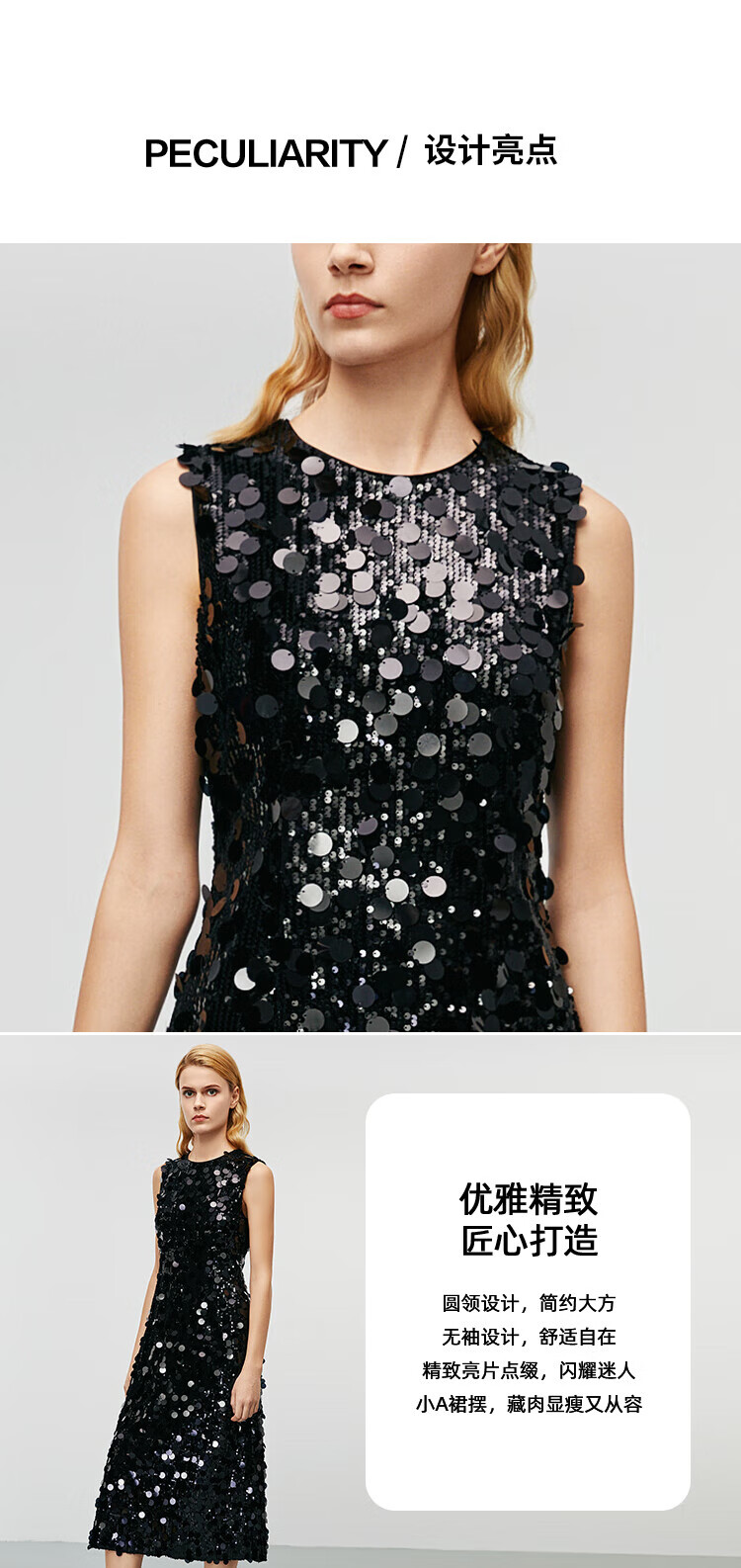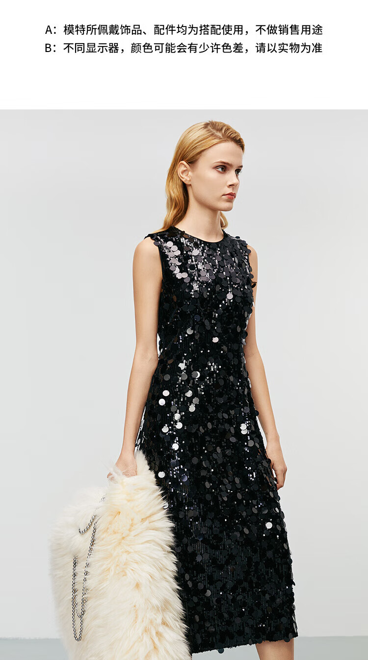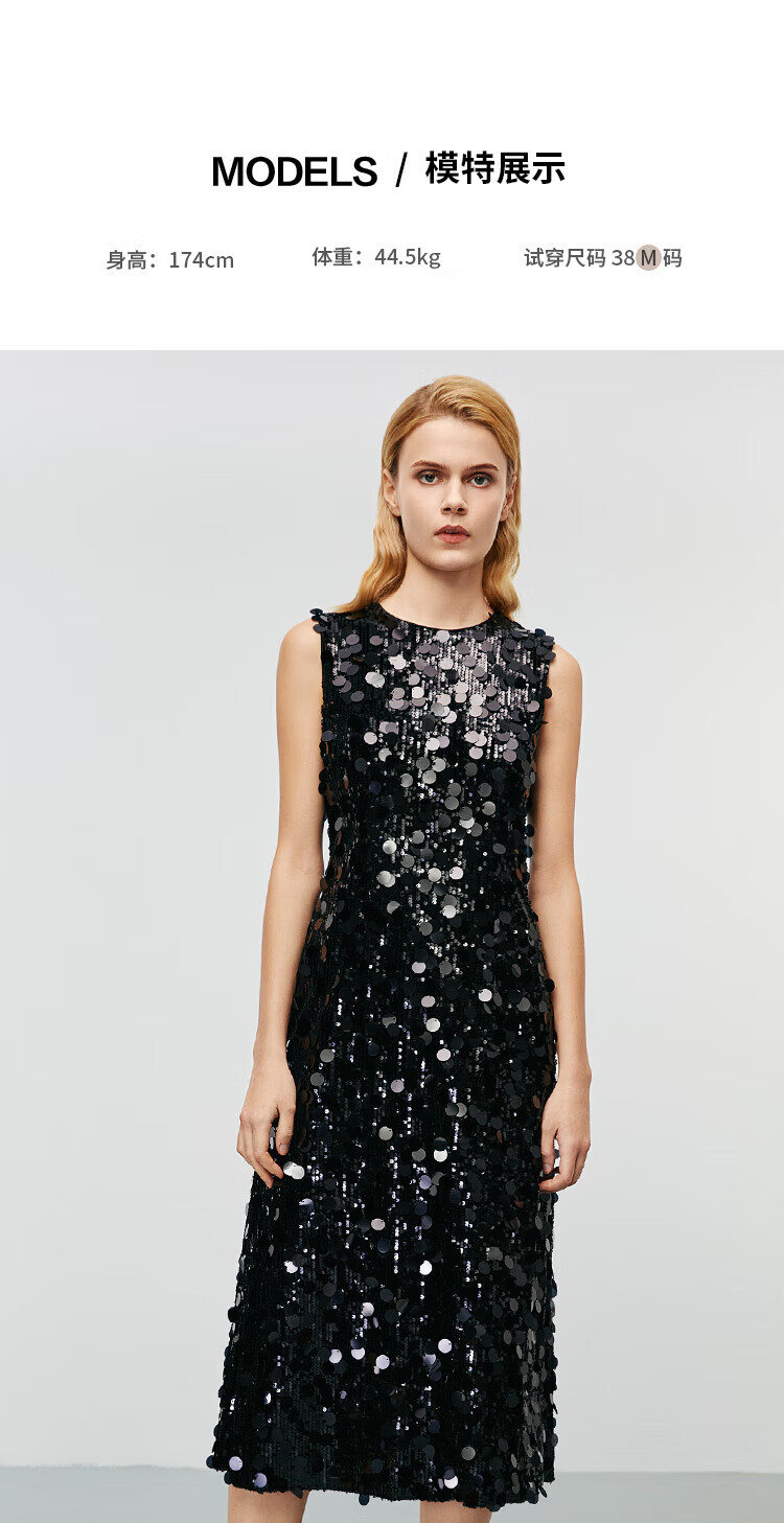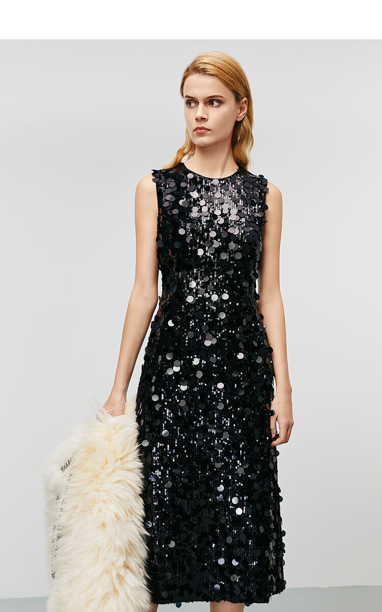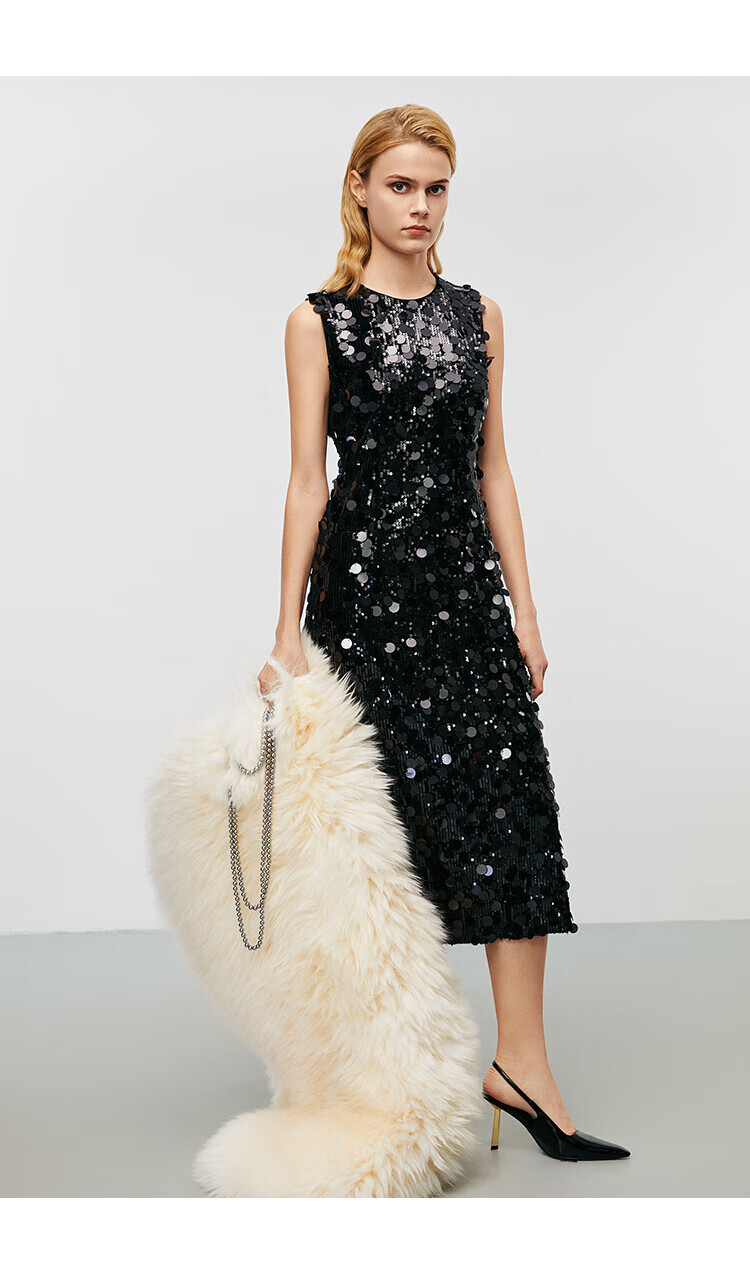 EITIE high-end heavy industry sequin evening dress autumn and winter new sleeveless waist banquet women's wear 8077702 minimalist black 20 S (155)