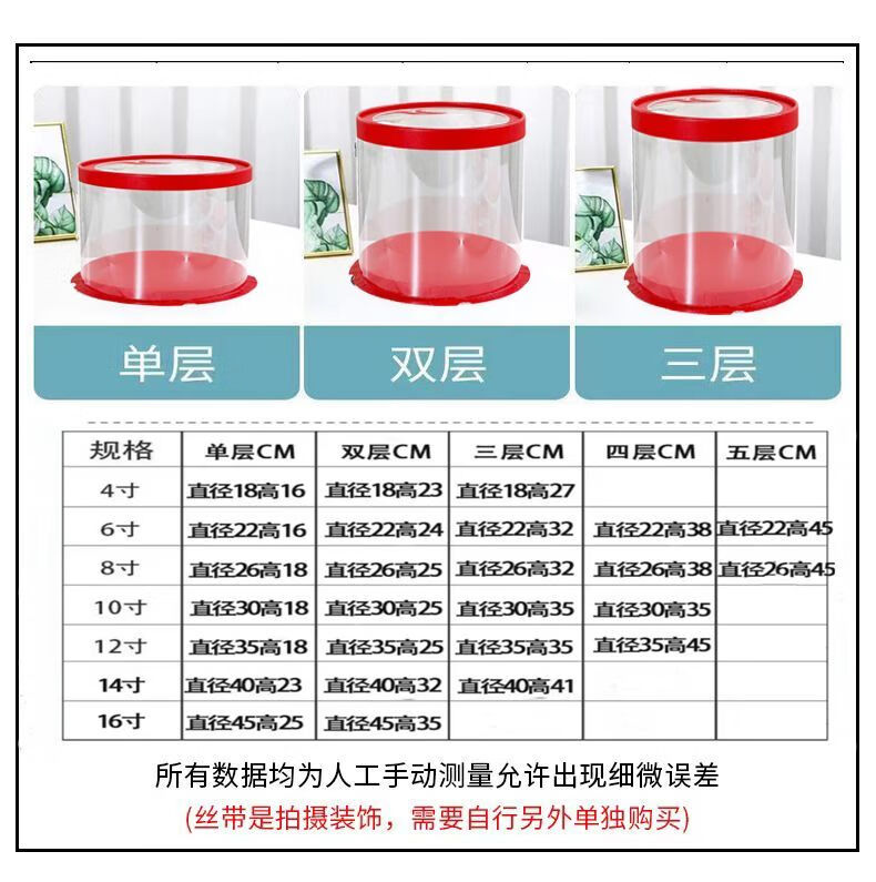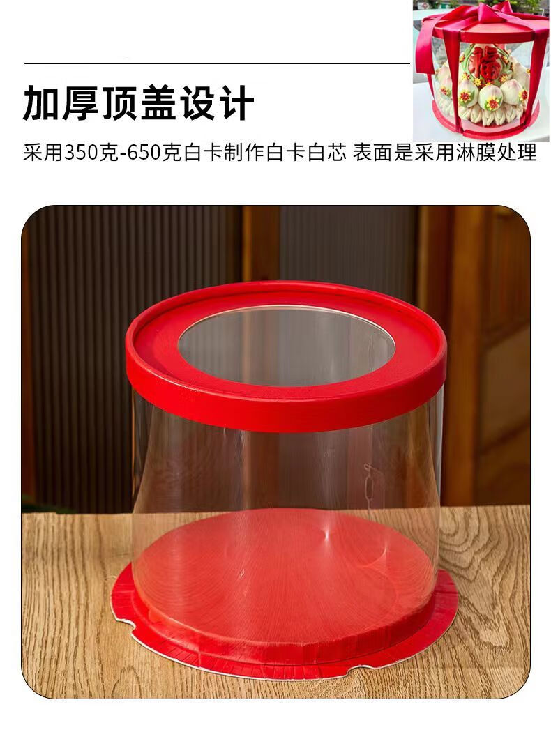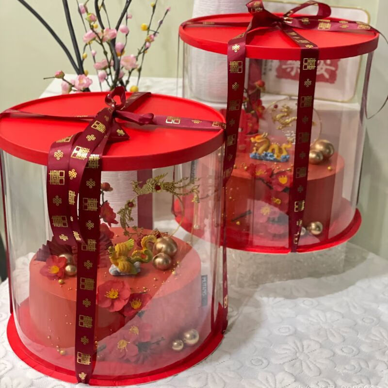 CLCEY red gift box steamed buns, flower cakes, wedding flowers, steamed buns, wedding banquets, peach birthday cakes for the elderly, packaging gift box, red fully transparent (5 pieces), no ribbon food, 14-inch double layer (diameter 40, height 32) cm