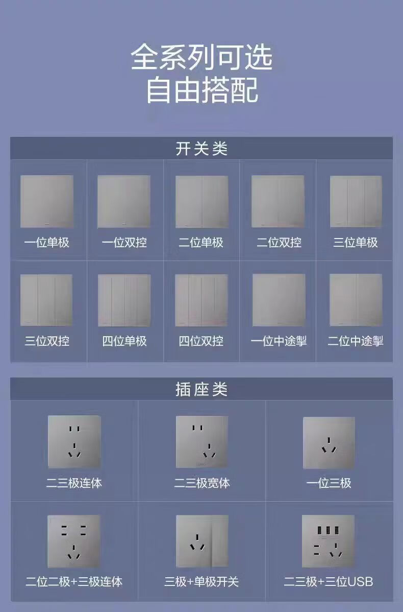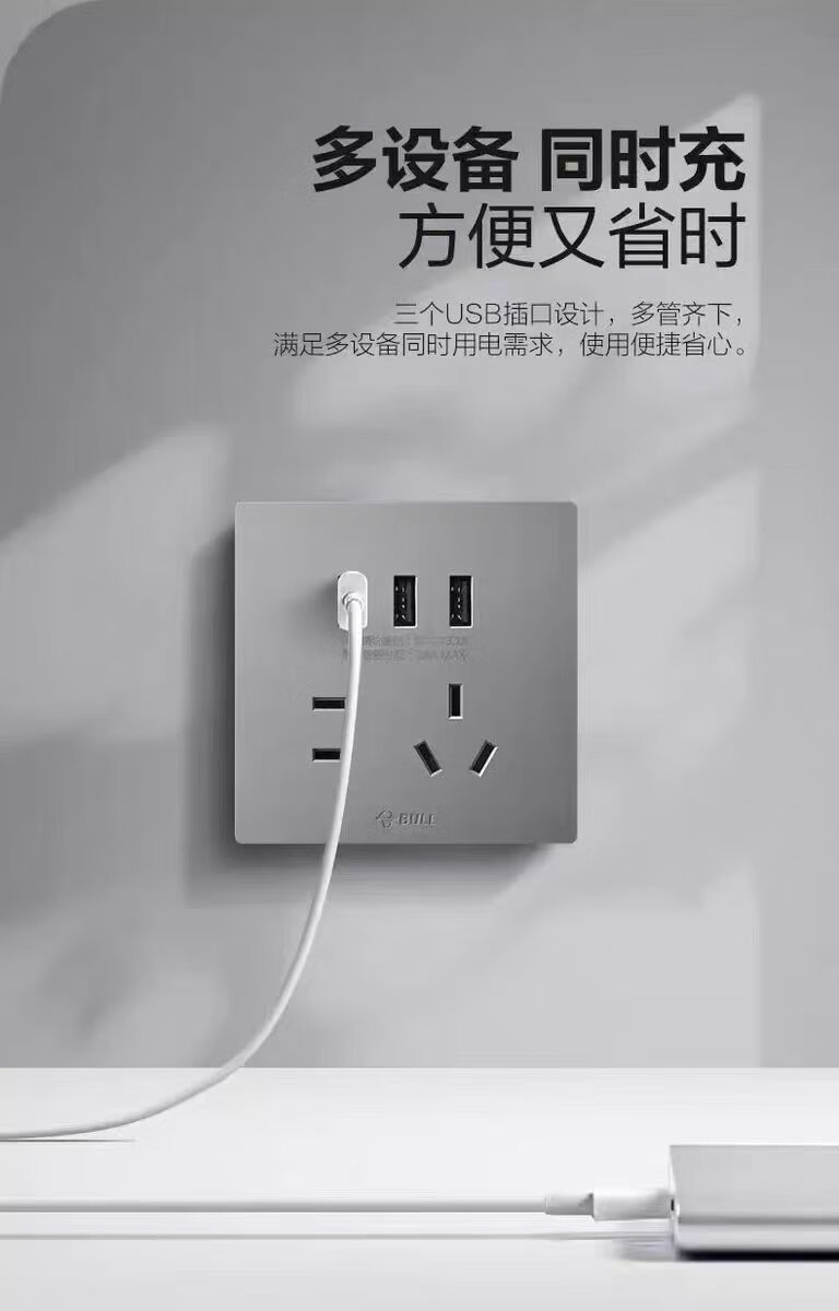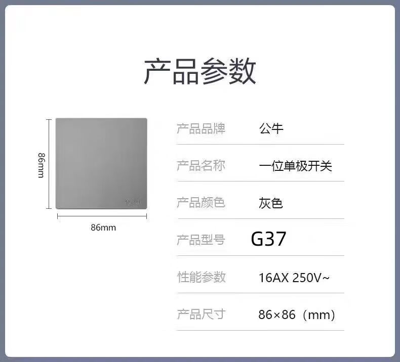Bull G37 series starry sky gray wall switch socket panel 86 type 16A with USB one open five holes dual control one open single control