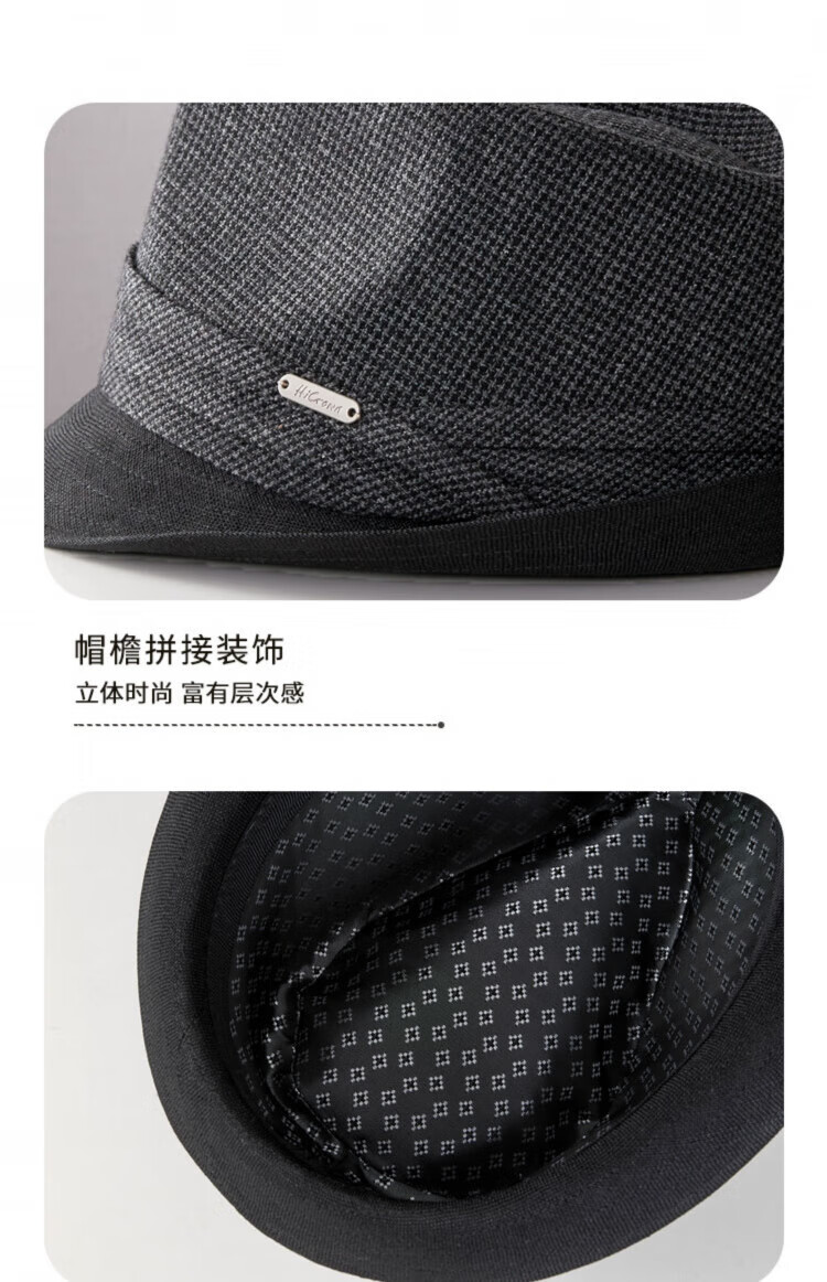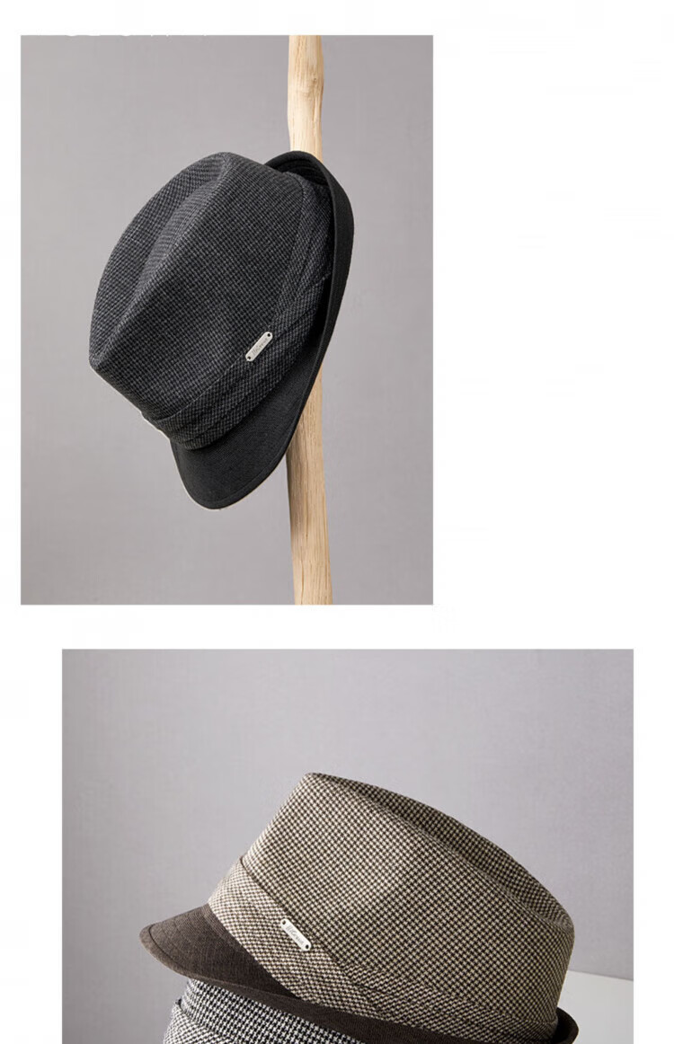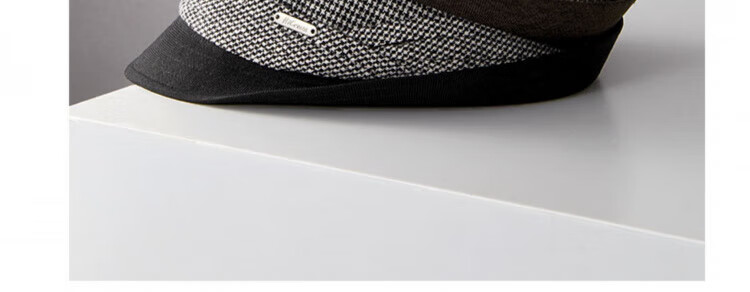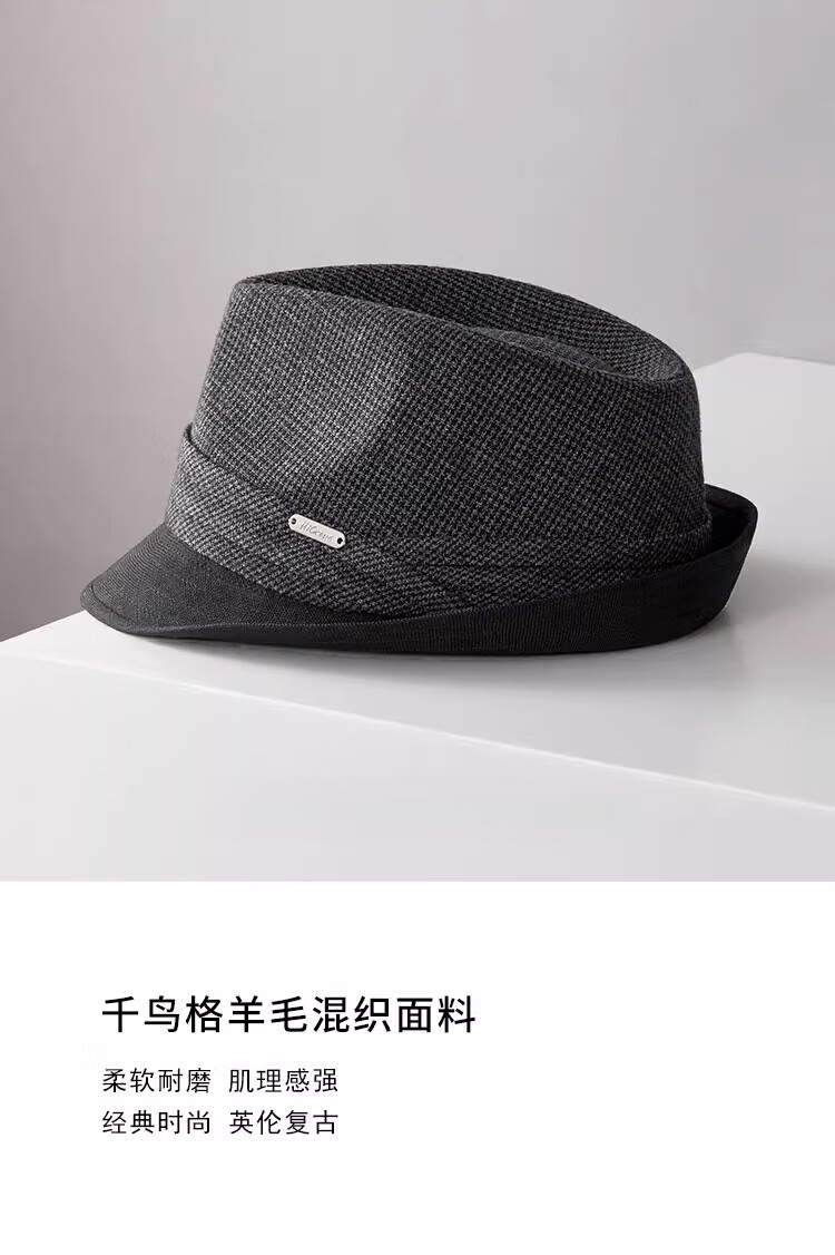 Lee dprre autumn and winter new houndstooth wool jazz hat men's casual fashion British style retro gentleman large head circumference black gray wool plaid L (suitable for head circumference 58-60cm)