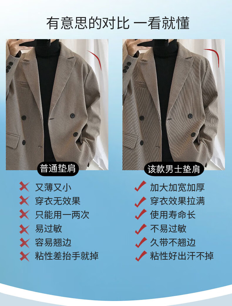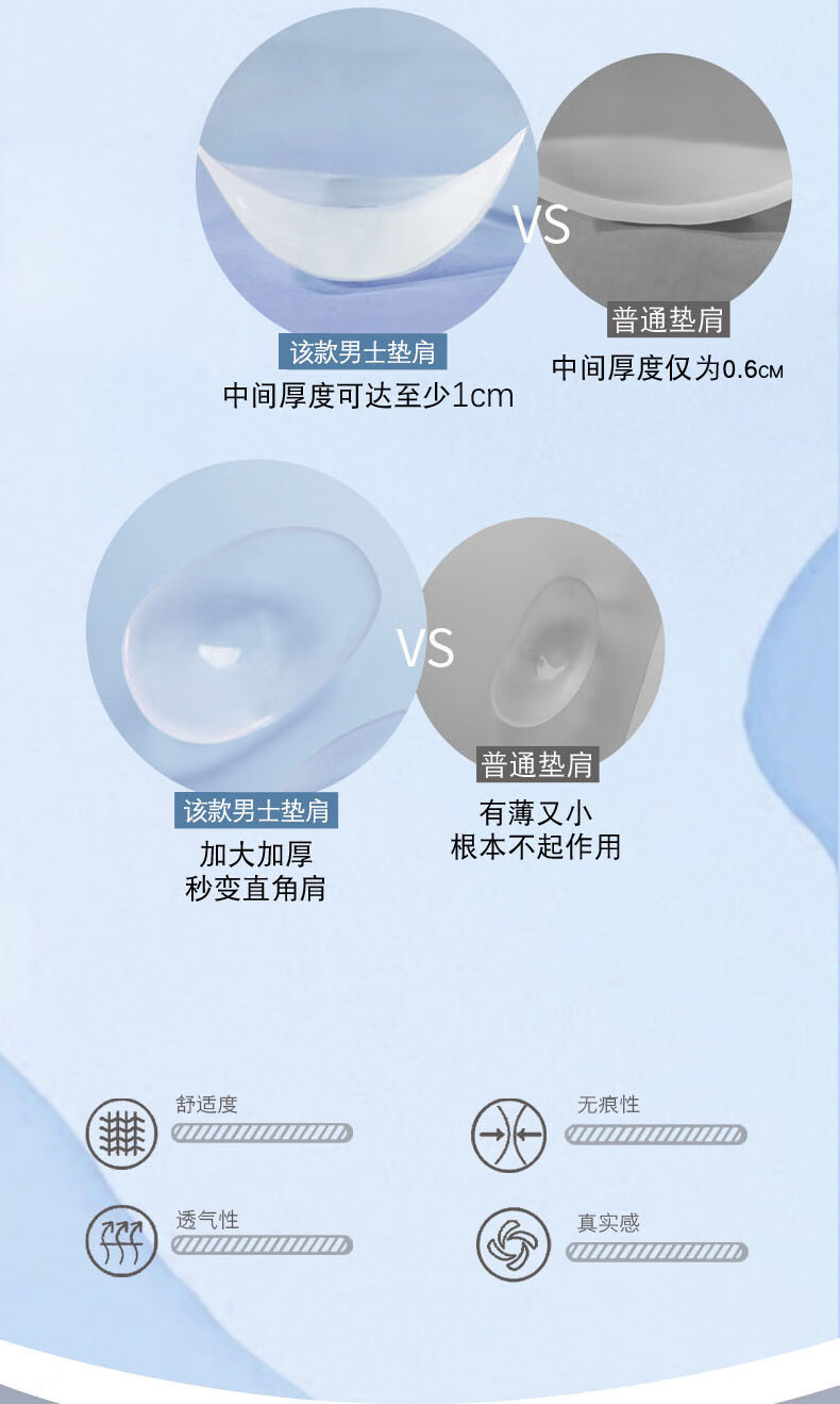 JEEMERY shoulder pads men's shoulder pads silicone enlarged and thickened right-angle artifact anti-slip anti-slip shoulder narrow shoulder pads can be washed repeatedly 90 grams regular silicone transparent 1 pair widened and thickened natural and traceless