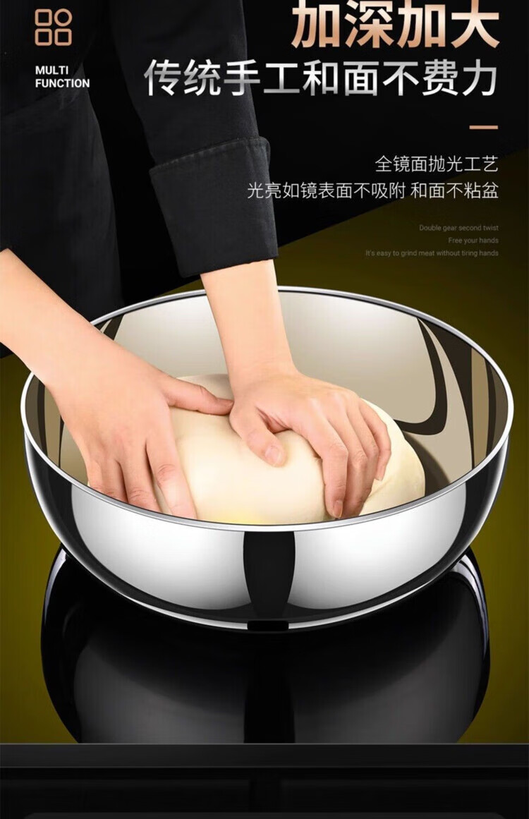 Qihua stainless steel basin extra thick household kitchen oil basin and basin soup basin seasoning baking kneading non-stick 16cm and basin 304 regular model