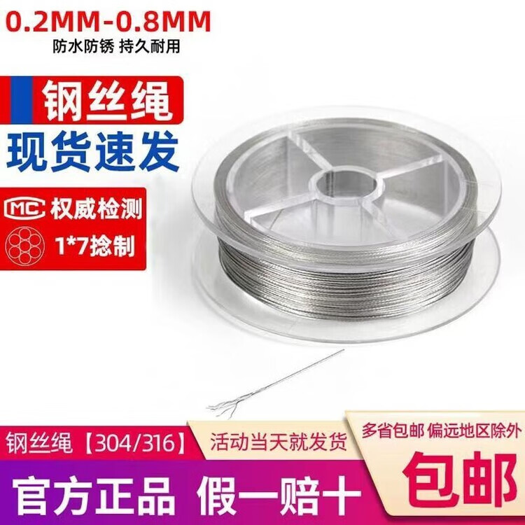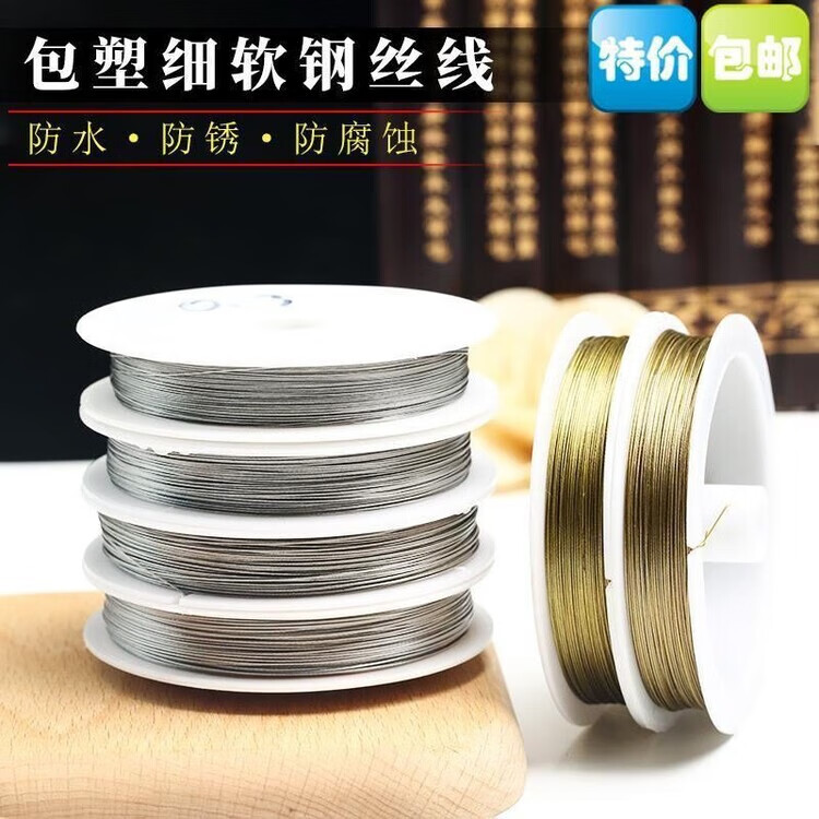 Vinoa 304 soft stainless steel wire rope, soft 0.2-0.8mm plastic coated chandelier jewelry fine steel wire 0.2mm (1*7) 20 meters free 20 aluminum sets