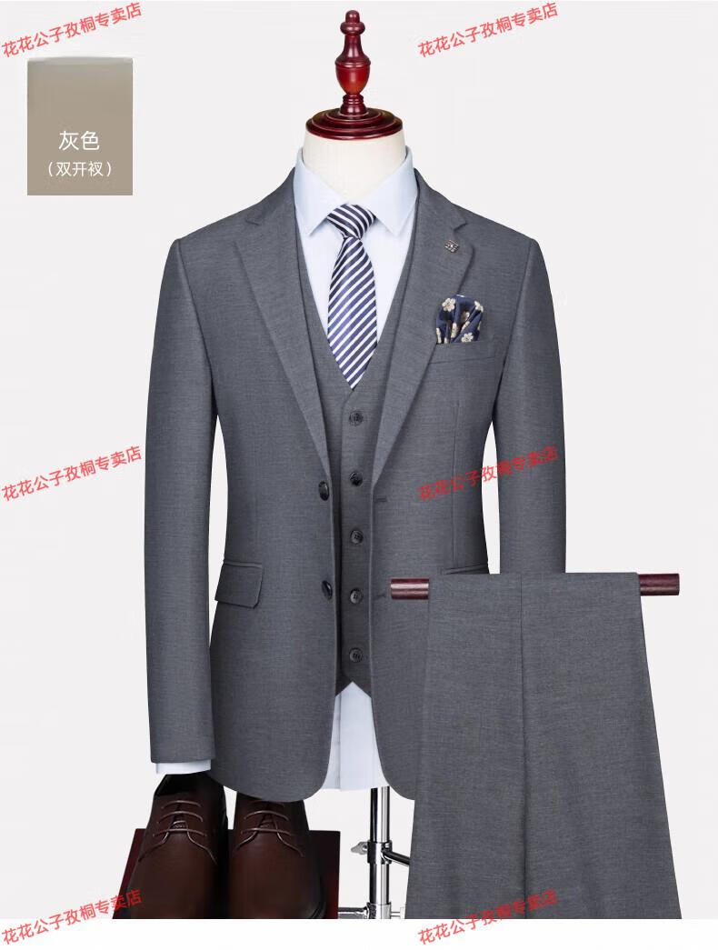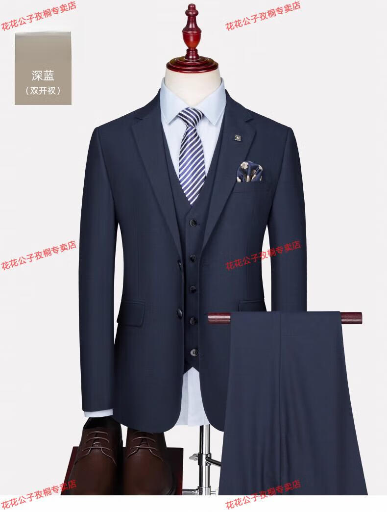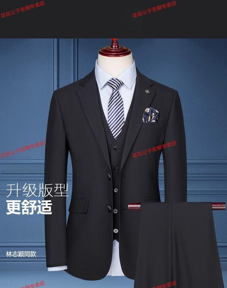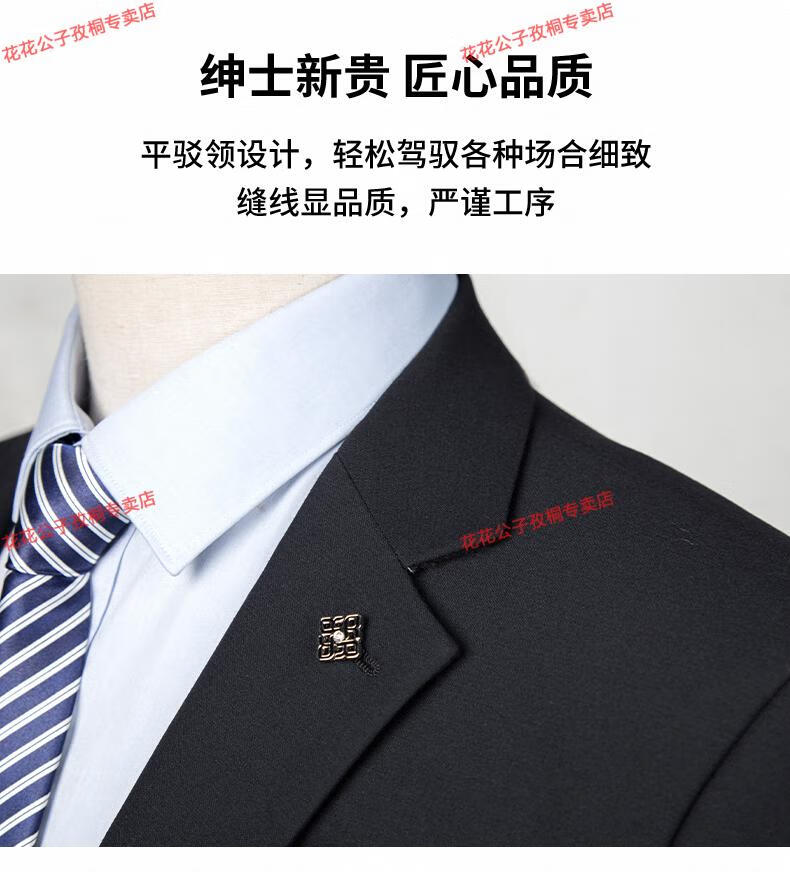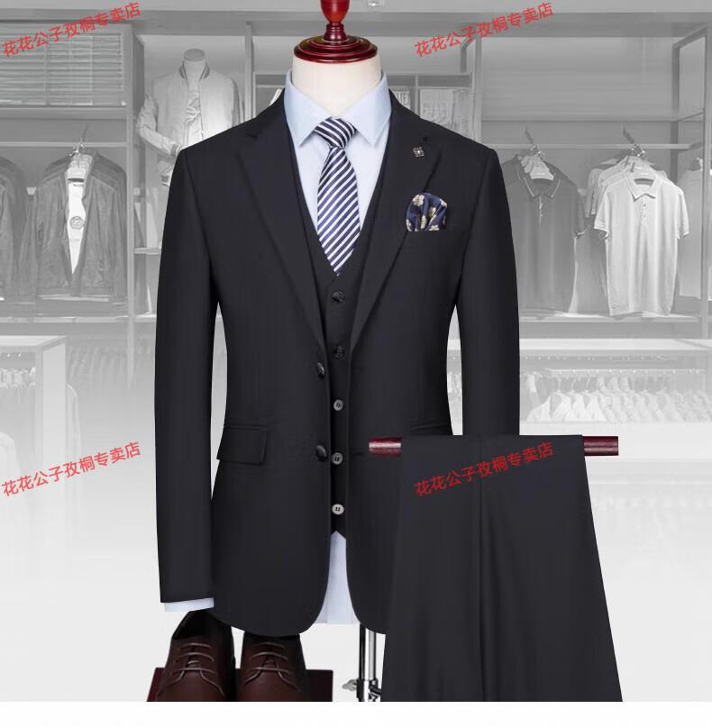 Playboy black wool suit suit for men, Korean style slim fit business formal suit, groomsmen and groom, wedding dress for men, 6823 black suit + trousers + vest + gift bag L 175