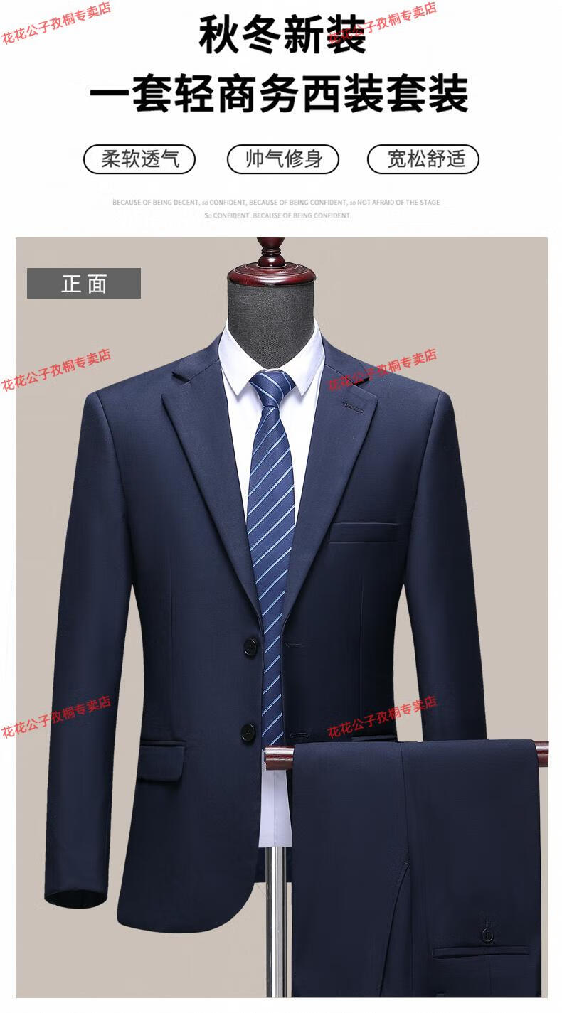 Playboy suit suit for men wool middle-aged business professional work formal wear no-iron suit wedding dress two-piece men's suit navy 2 buttons no slit L 170/48 Please note your height and weight when placing an order