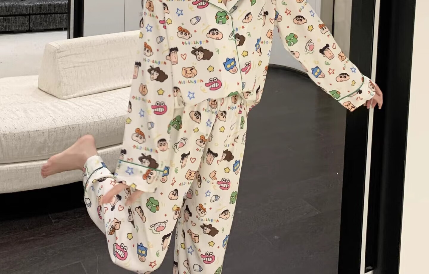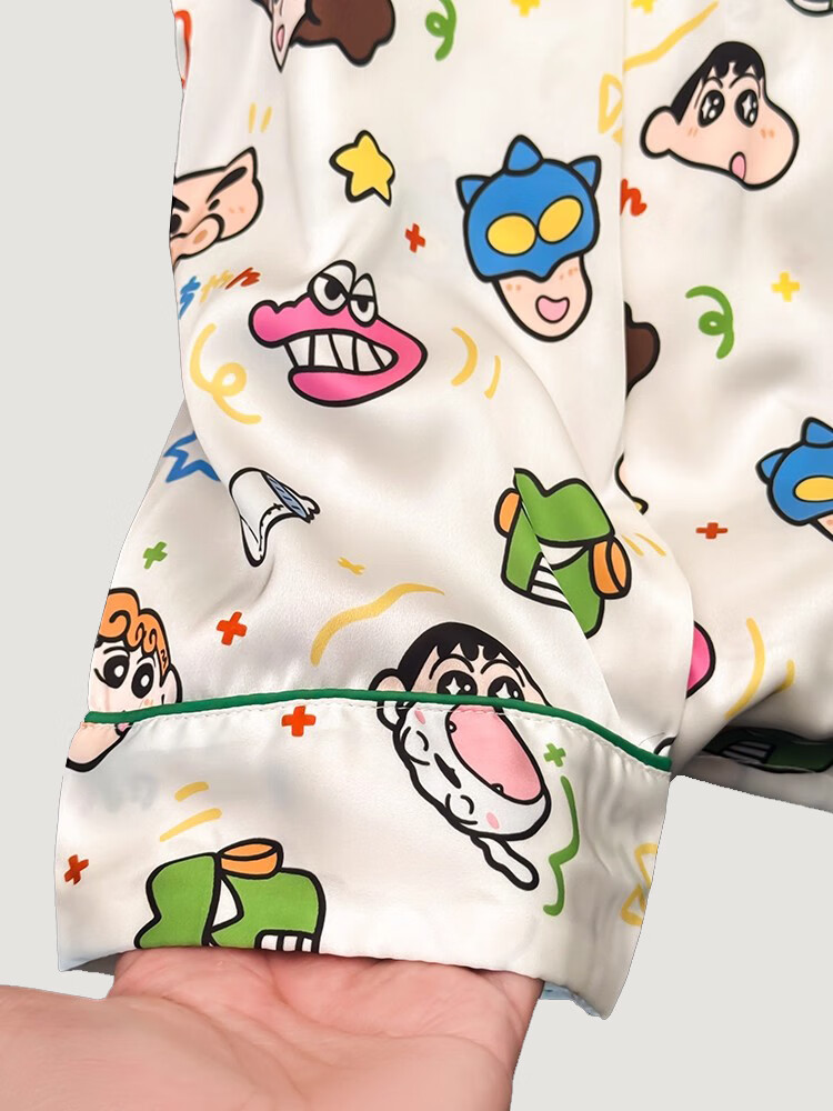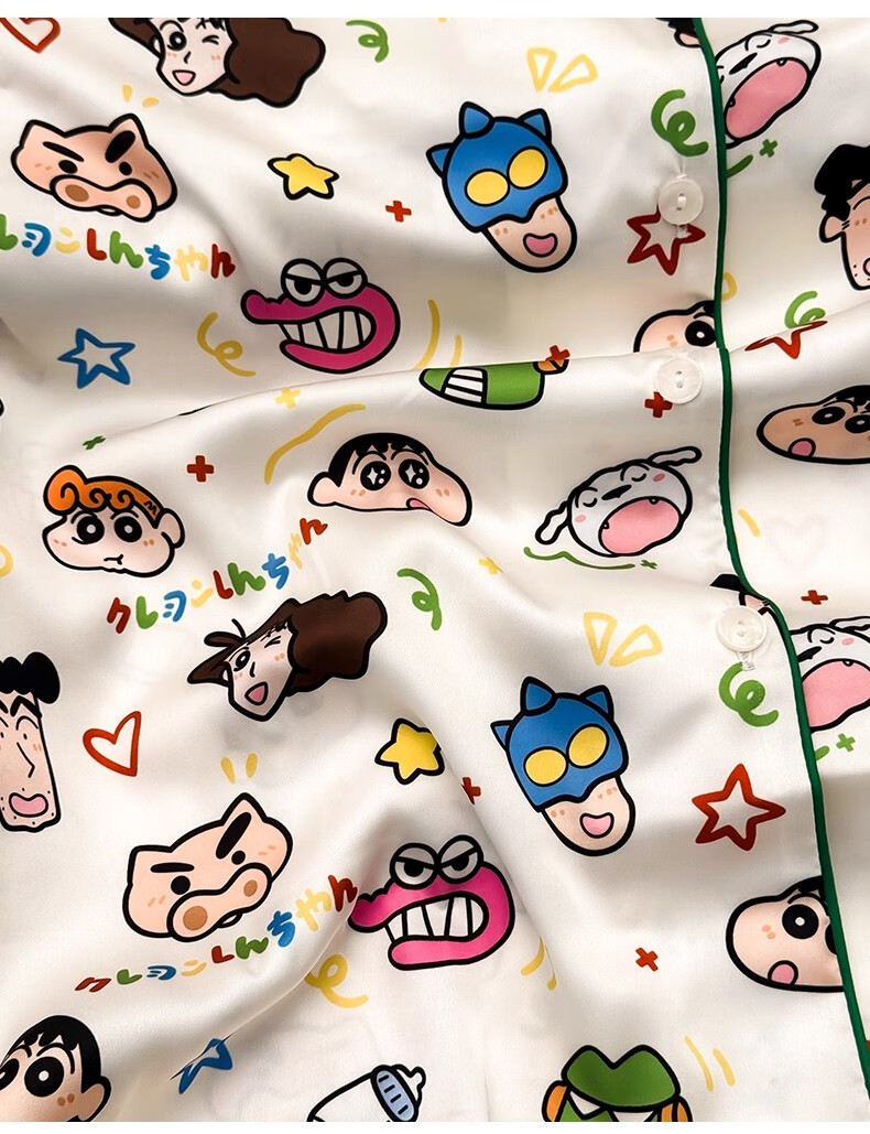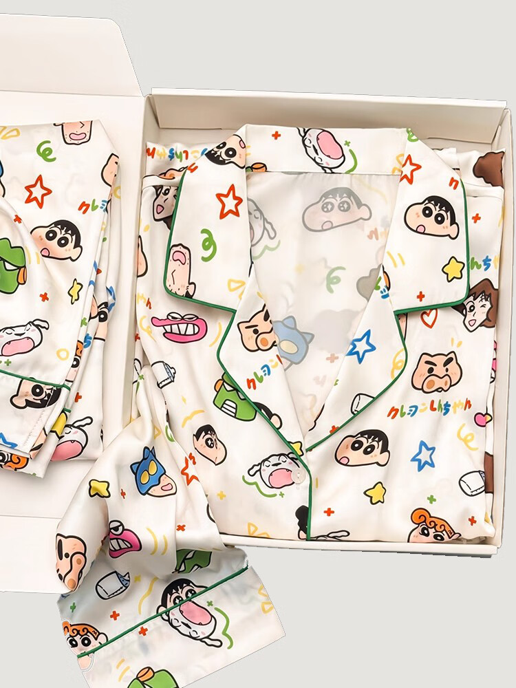 GP Memory Ice Silk Pajamas Female Internet Celebrity Girly Style Cute Cartoon Thin Couple Wear Home Clothes Men's Gift Box for Girlfriend and Boyfriend Crayon Shin-chan Short Sleeves + Shorts + Pants Same Style for Couples L Women Recommended 100-120 Jin Jin is equal to 0.5 kg