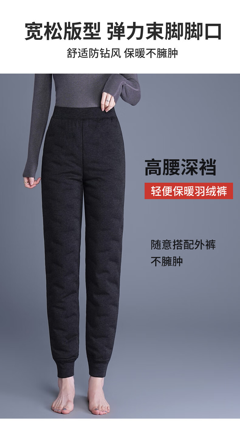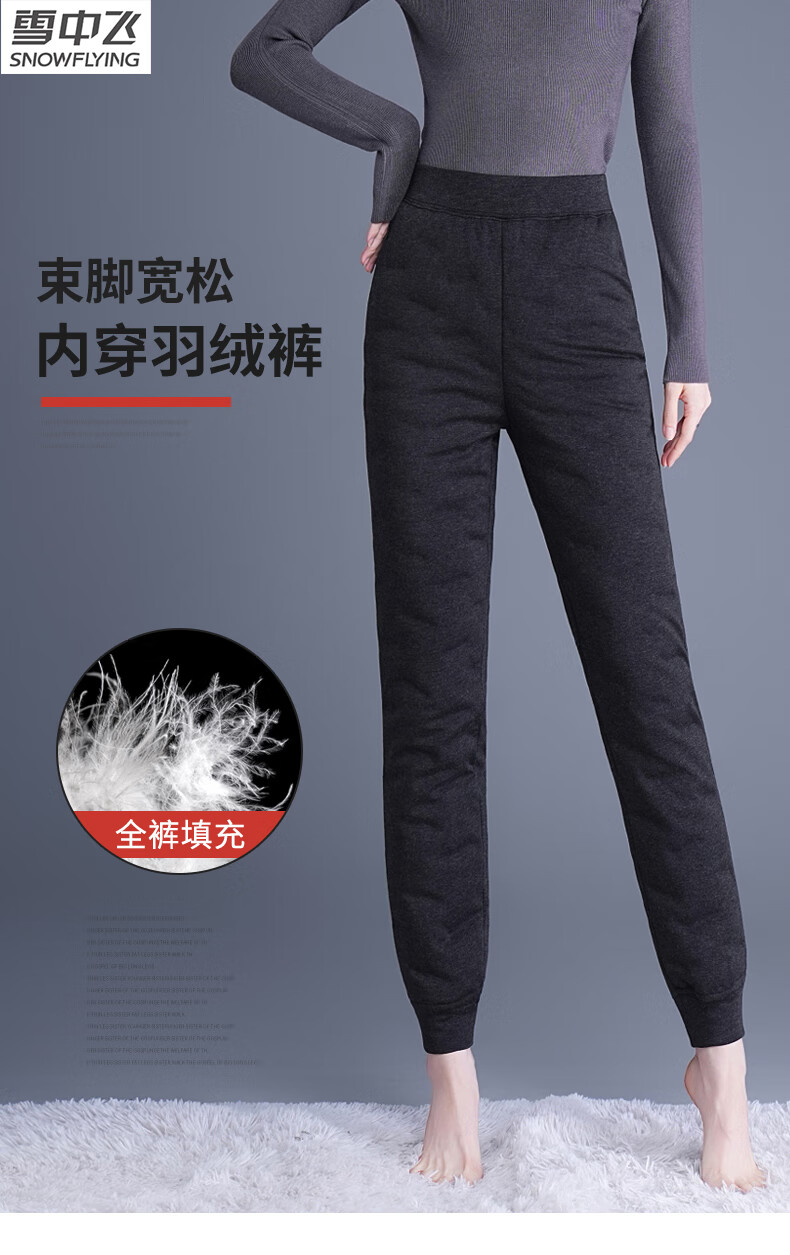 Snow Flying (SNOWFLYING) Down Pants Inner Liner for Women Winter High Waist Thickened Middle-aged and Elderly Mothers Loose Leg Leg Slim Fit Northeast Warm Inner Cotton Pants Full Pants Down - Lightweight and Warm - Dark Gray M 80-100Jin Jin is equal to 0.5 kg