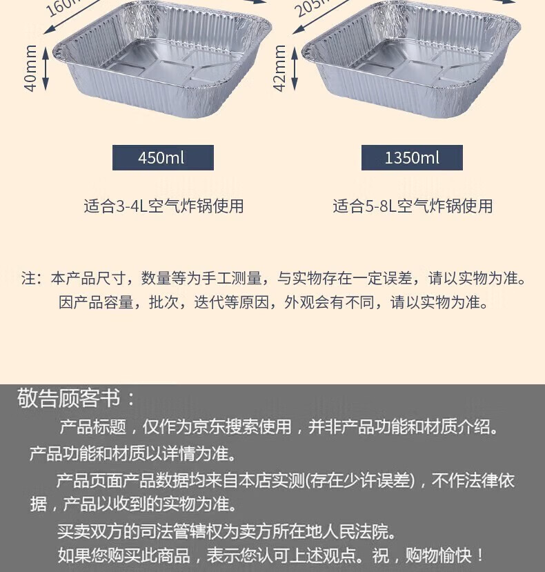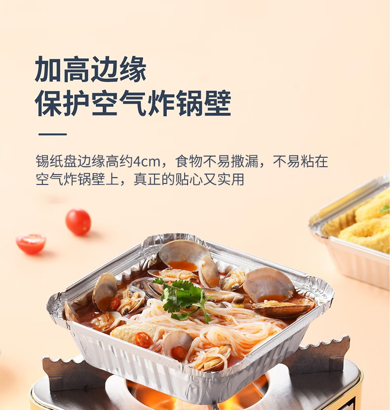 Special paper for rice air fryer, tinfoil tray box for fryer, special tinfoil paper for fryer, high temperature resistant barbecue baking pan, baking oil-absorbing paper, 50 pieces thickened tinfoil lunch box, 5-8L fryer