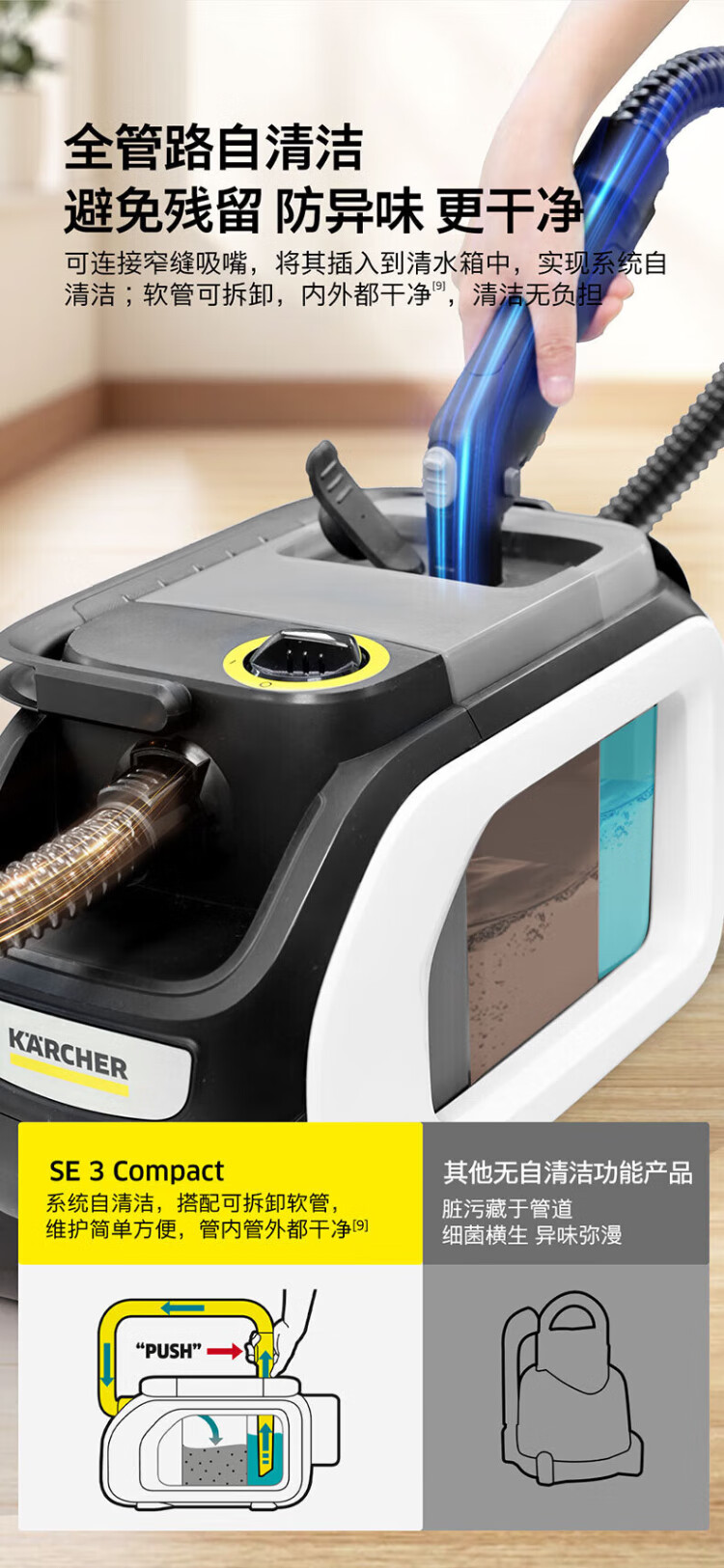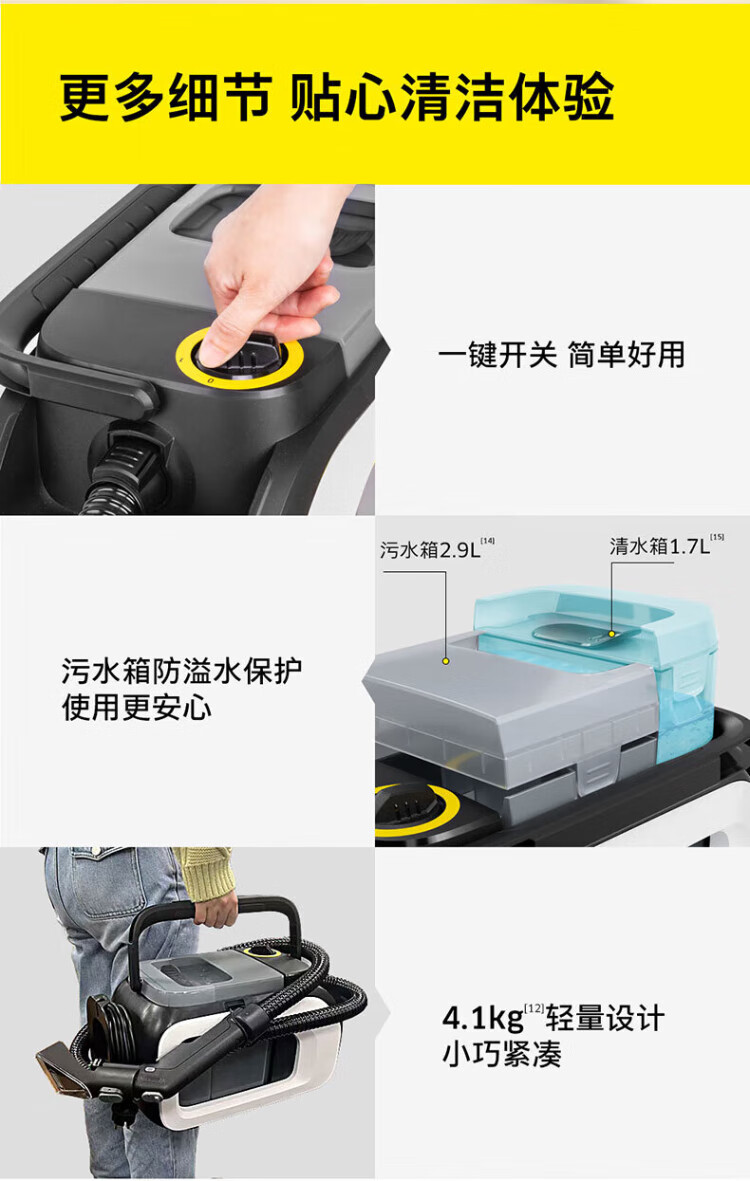 KARCHER official refurbished machine, original imported multi-functional household fabric sofa cleaning machine, spray and suction integrated cleaning machine for carpets, curtains and mattresses SE 3 Compact 14000Pa large suction power