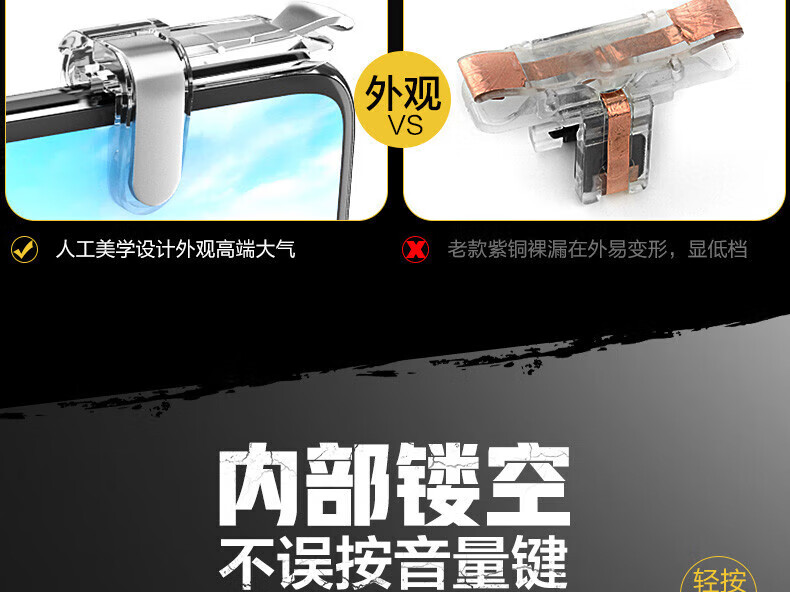 Chicken-eating artifact auxiliary mobile phone game handle mechanical food management peripherals Apple Android four-finger button set mobile game button peripherals King chicken-eating connector game button-E9 metal-1 pair