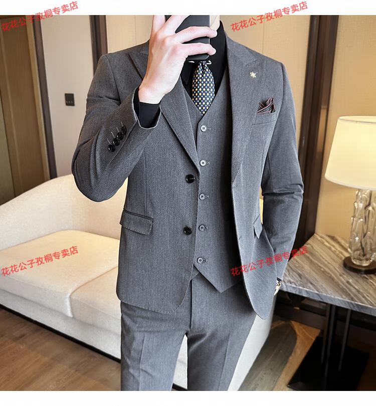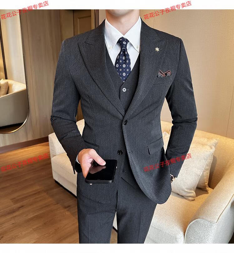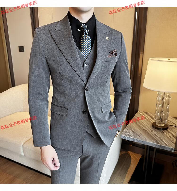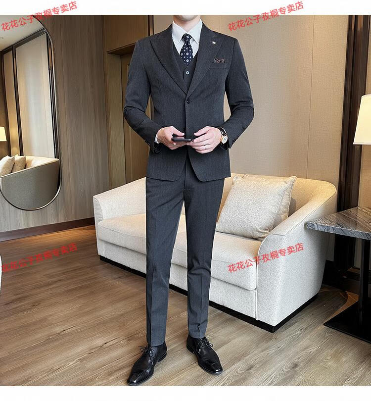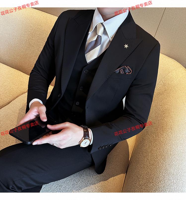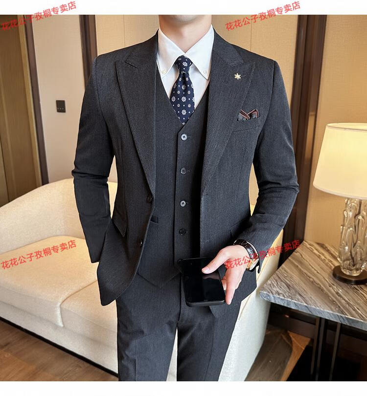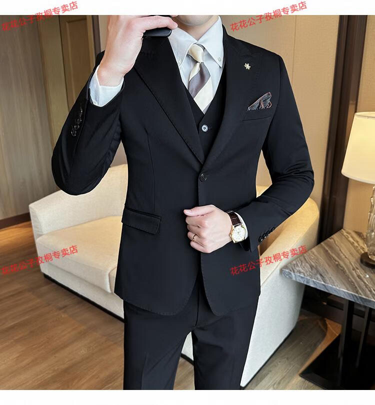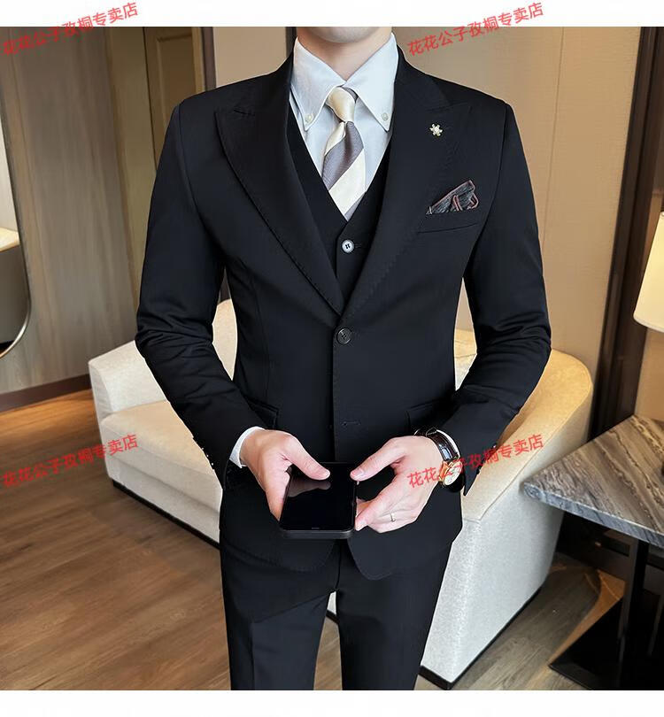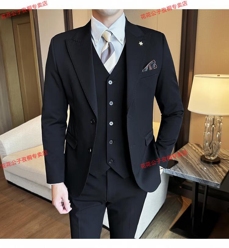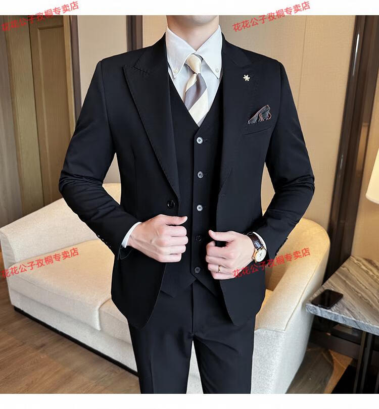Playboy lapel two-button suit men's business casual solid color Korean slim fit groom's wedding suit three-piece black suit + trousers + vest 4XL (165-180Jin Jin equals 0.5 kg)