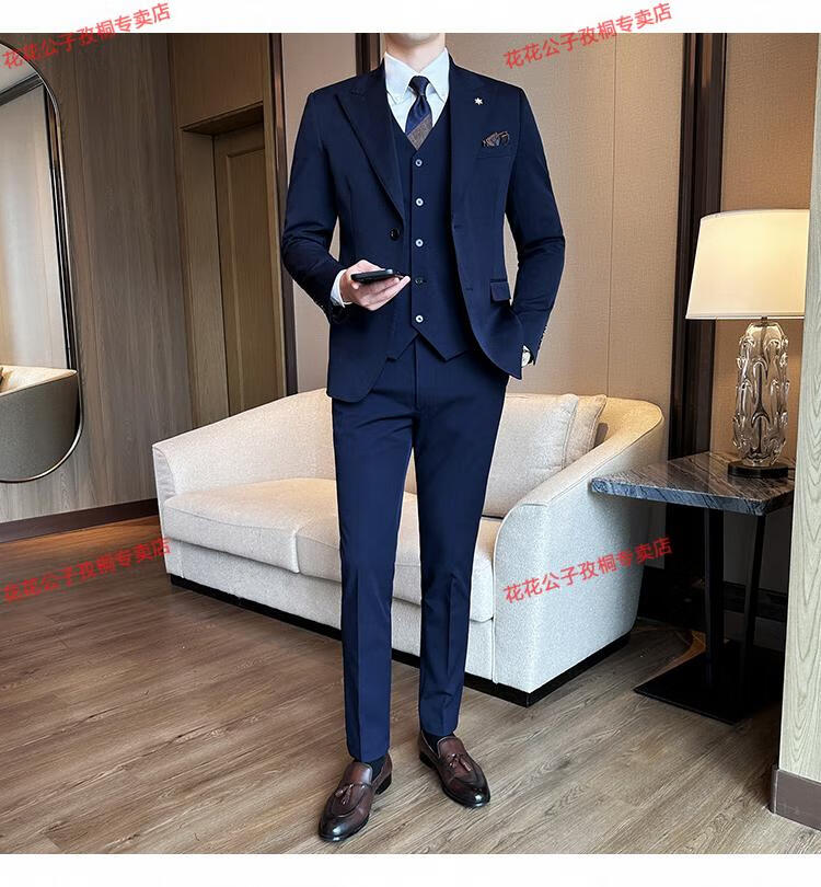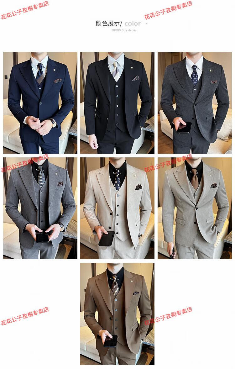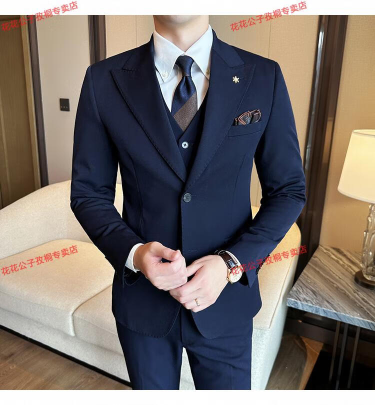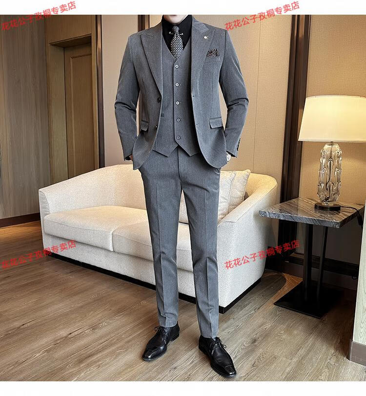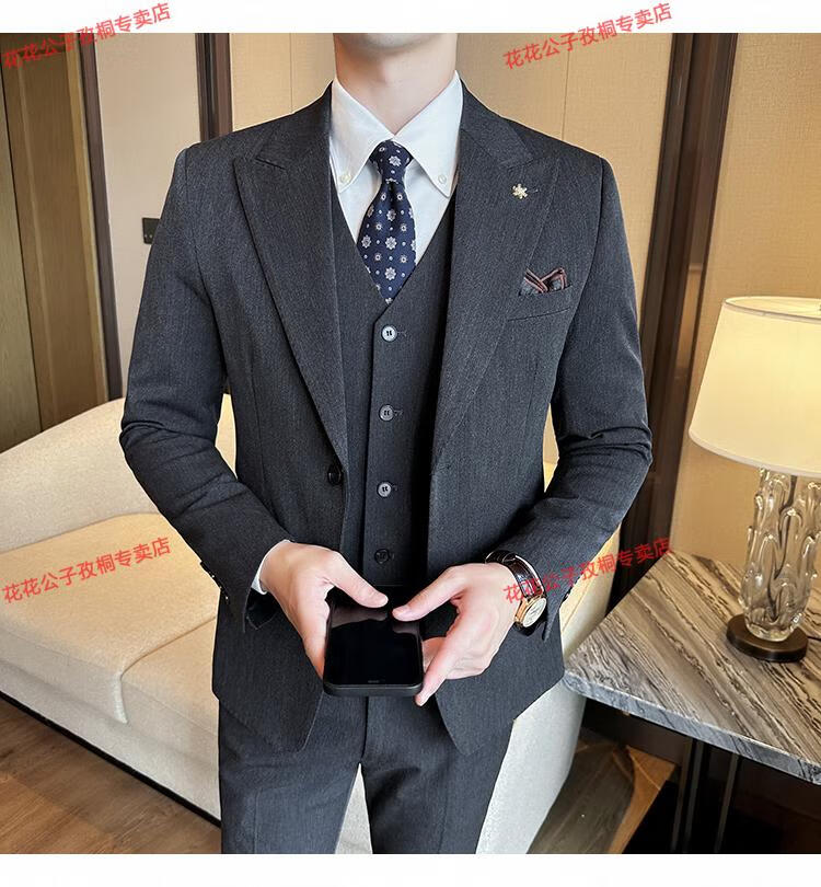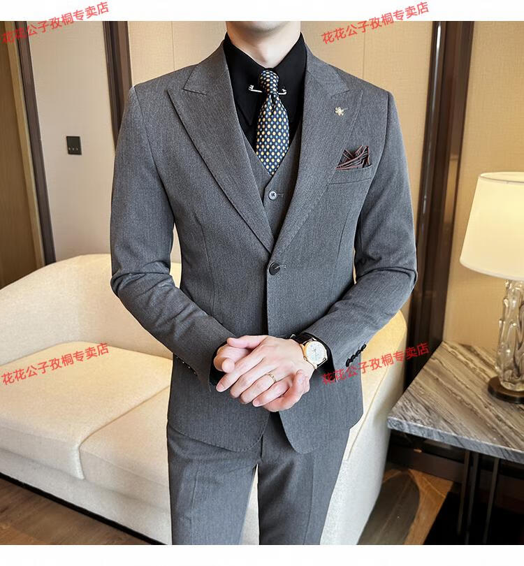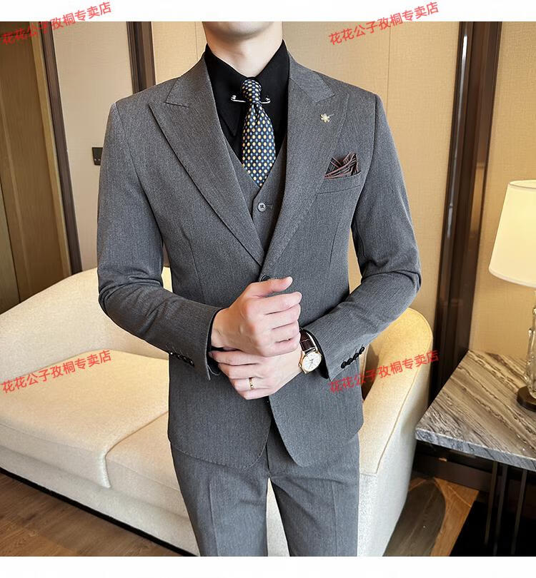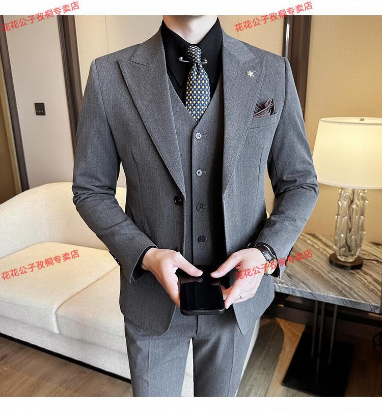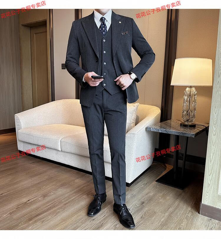 Playboy lapel two-button suit men's business casual solid color Korean slim fit groom's wedding suit three-piece black suit + trousers + vest 4XL (165-180Jin Jin equals 0.5 kg)