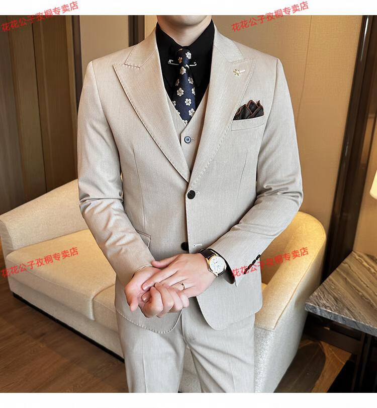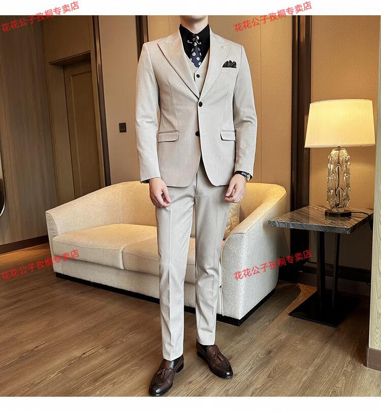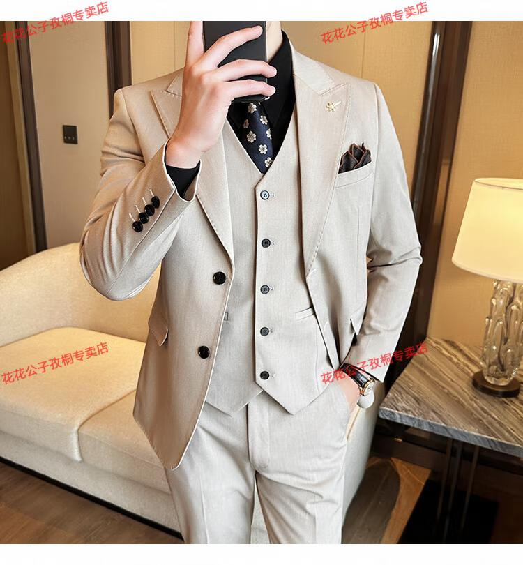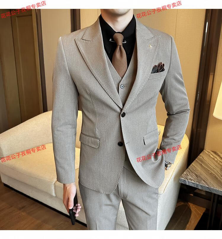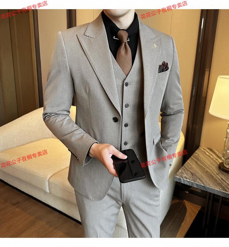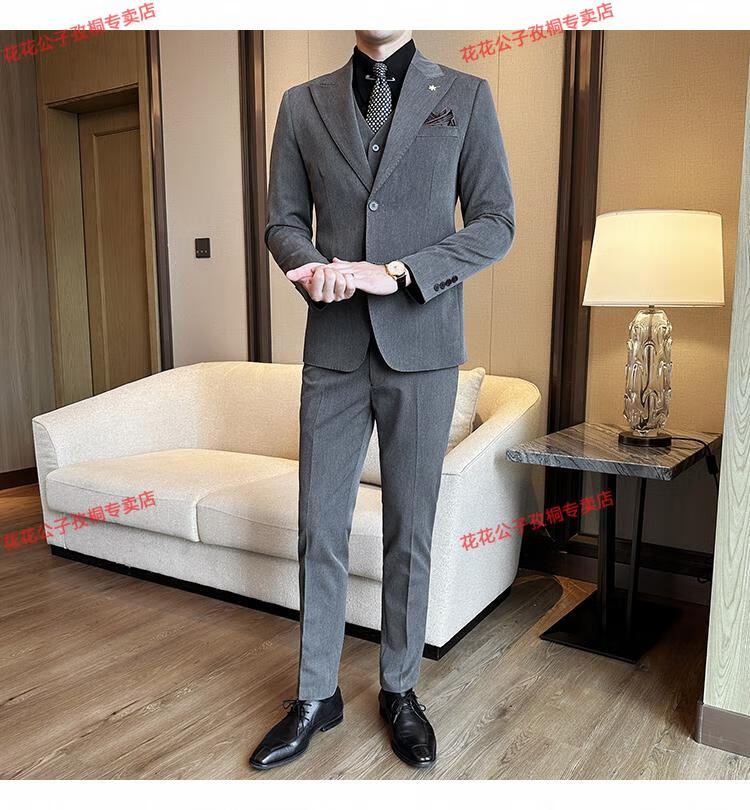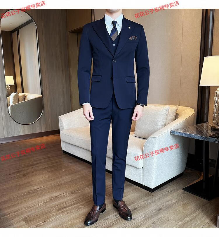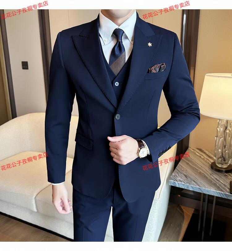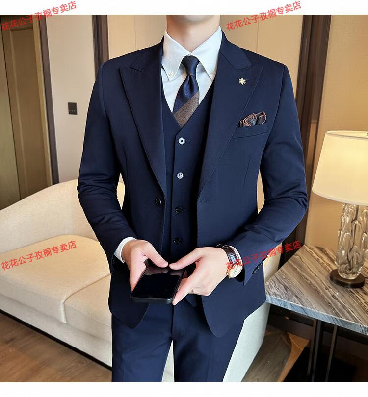 Playboy lapel two-button suit men's business casual solid color Korean slim fit groom's wedding suit three-piece black suit + trousers + vest 4XL (165-180Jin Jin equals 0.5 kg)