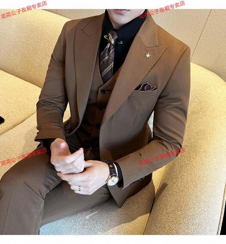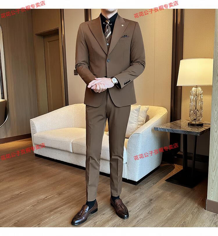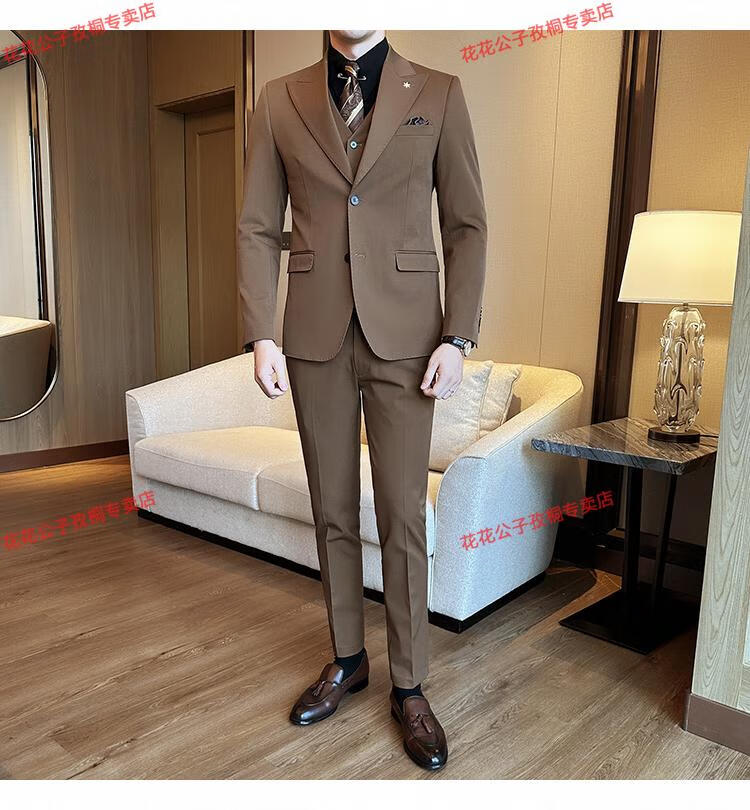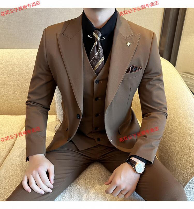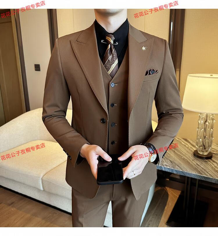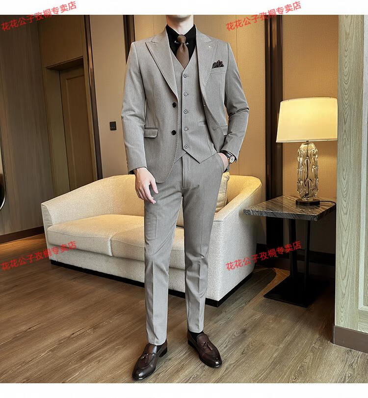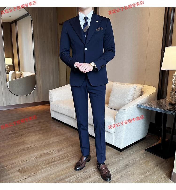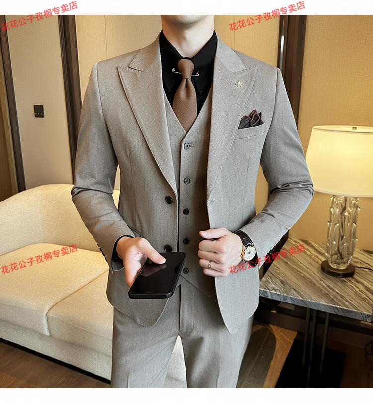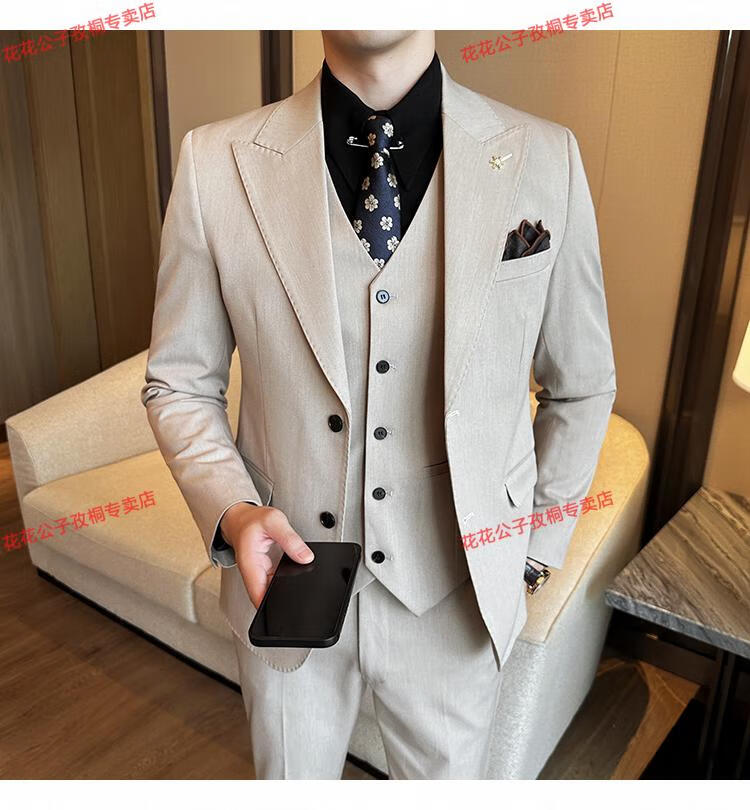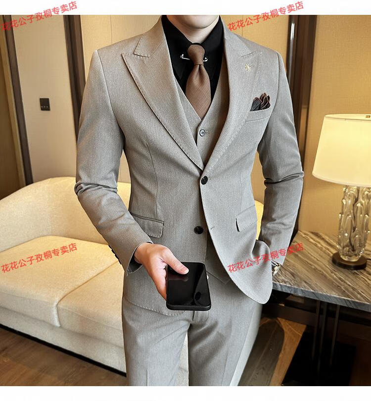 Playboy lapel two-button suit men's business casual solid color Korean slim fit groom's wedding suit three-piece black suit + trousers + vest 4XL (165-180Jin Jin equals 0.5 kg)