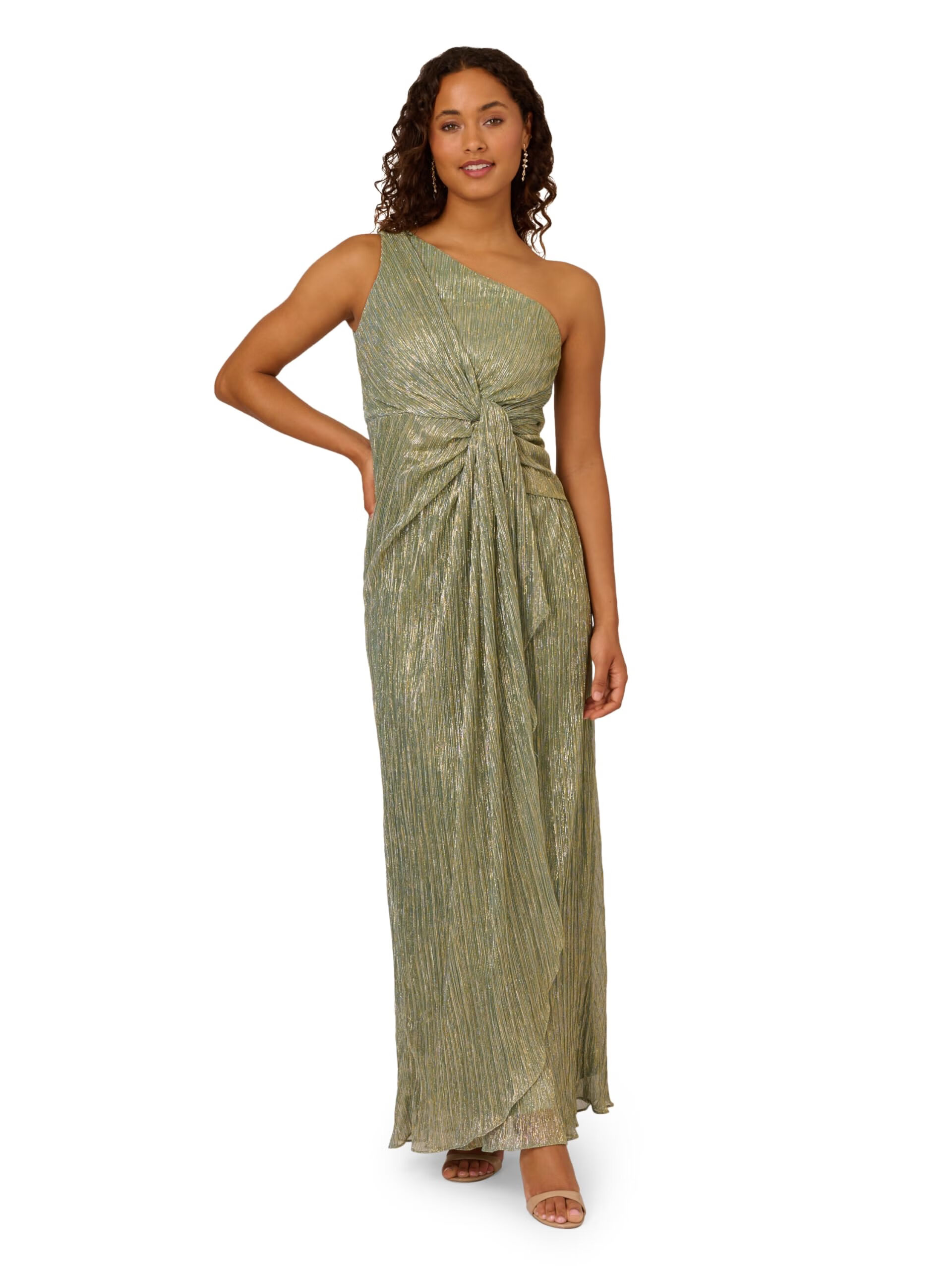 Adrianna Papell Women's Stardust Pleated Draped Gown Fuchsia 4