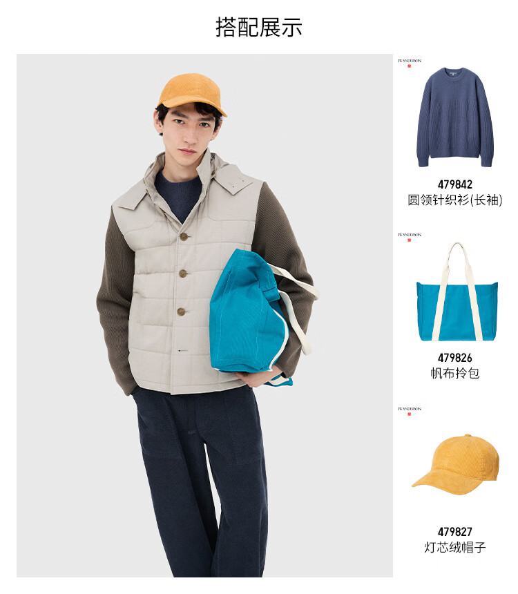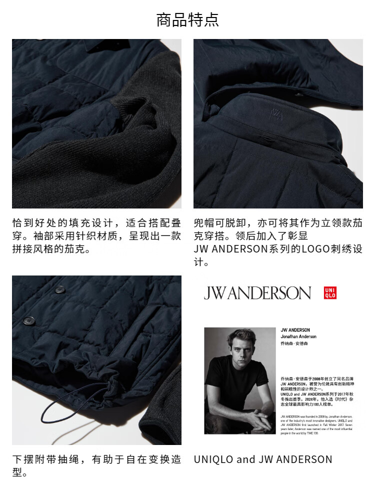 UNIQLO cooperation model/men's patchwork quilted jacket/coat jacket 479419 69 navy blue L
