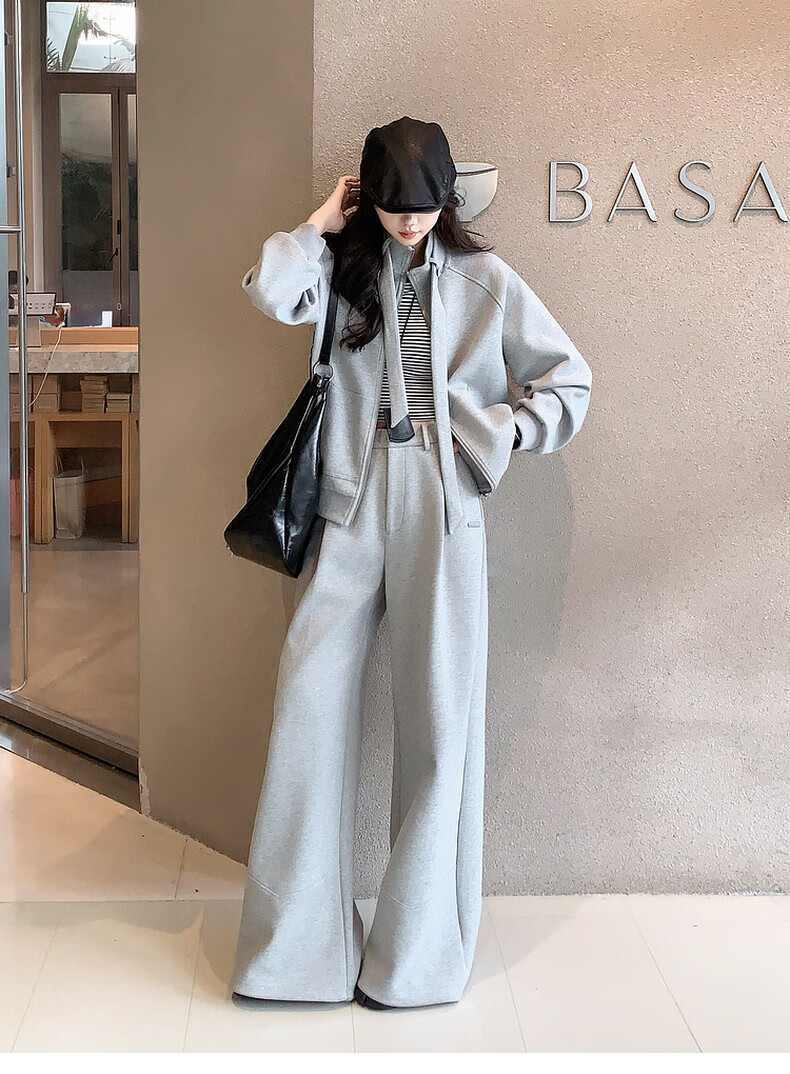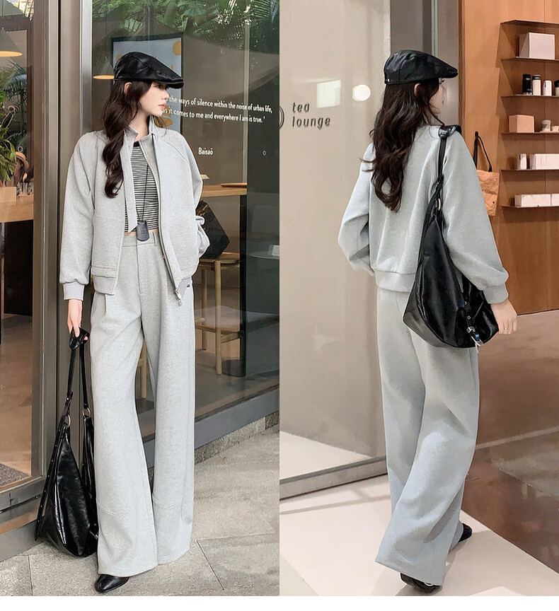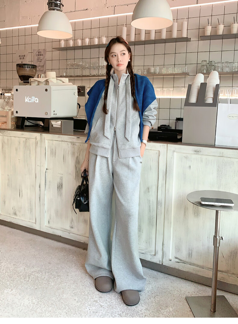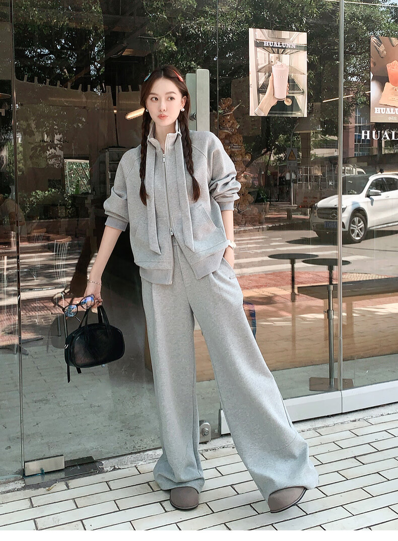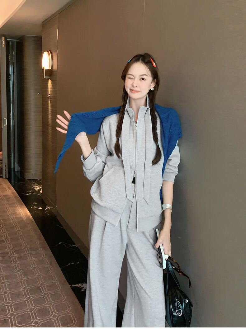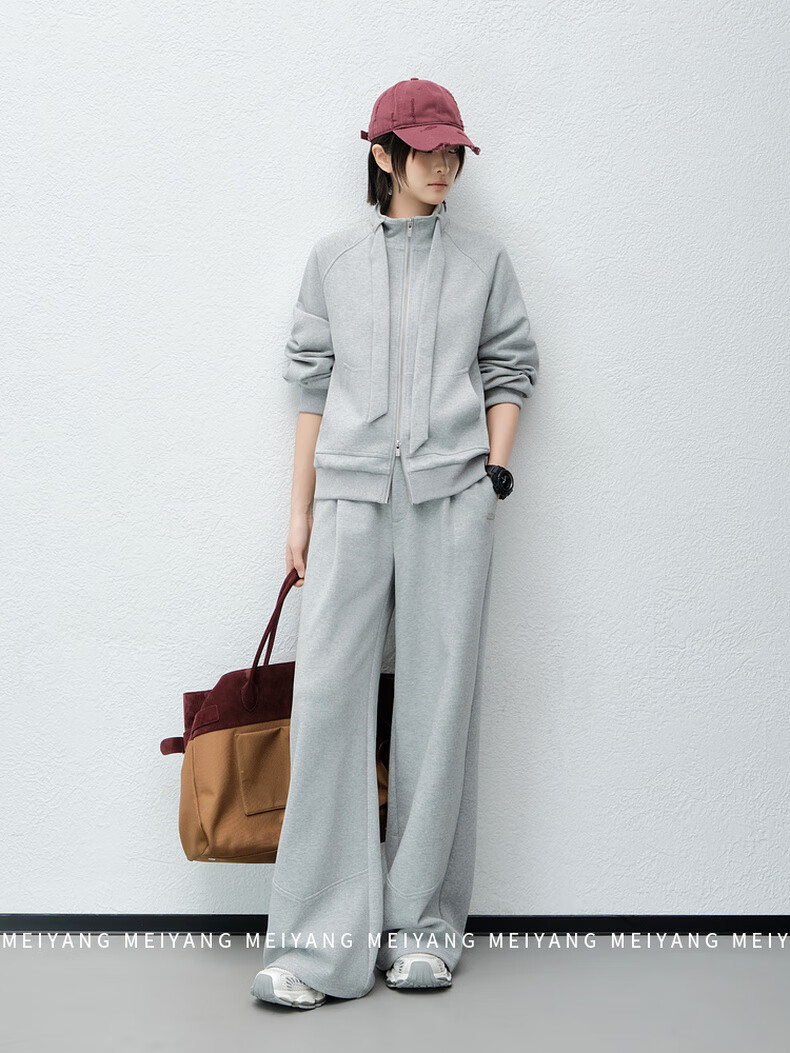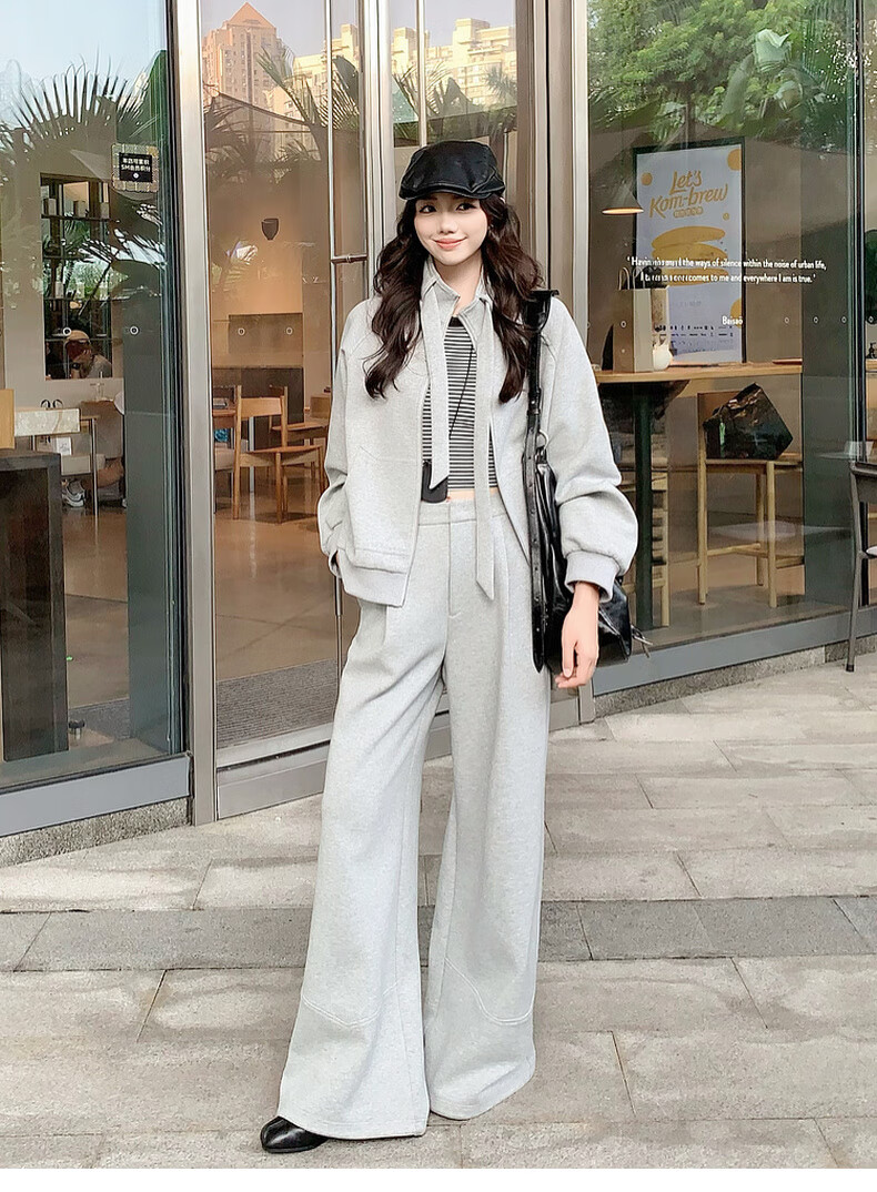 MEIYANG streamer suit, temperature-locking air layer stand-up collar, detachable streamer top, casual pants, fashion slimming autumn new style, light gray (regular version) L
