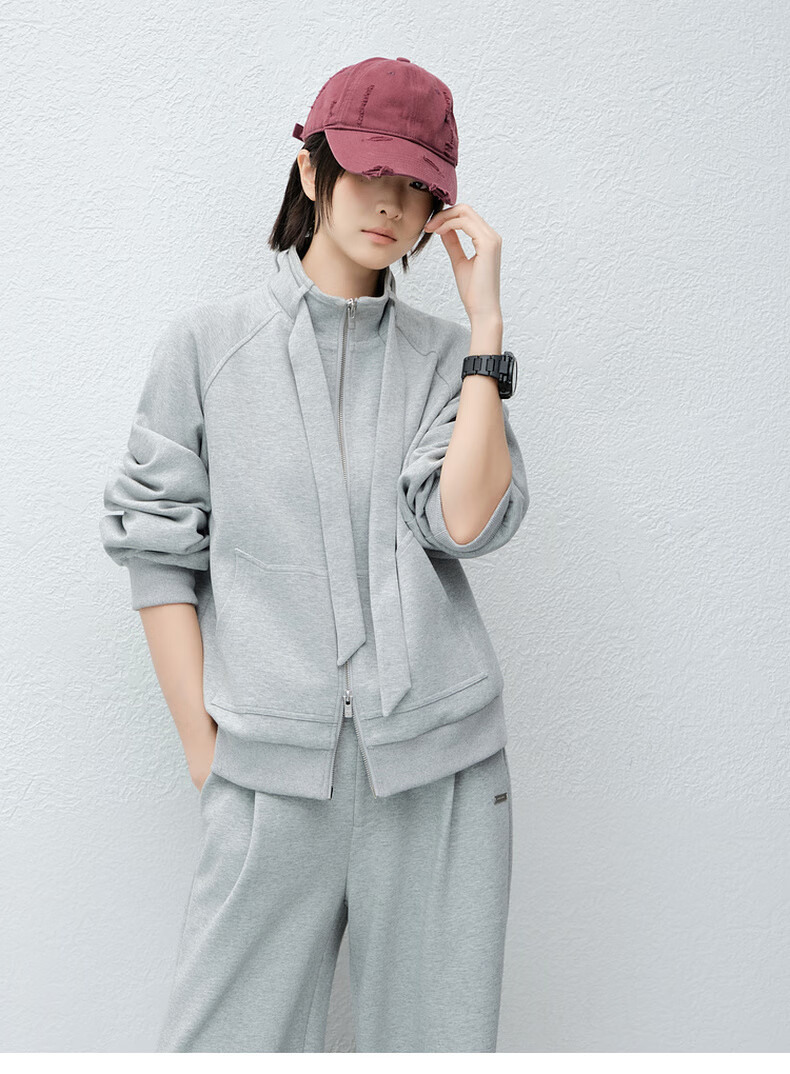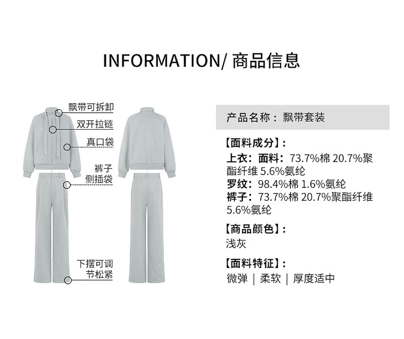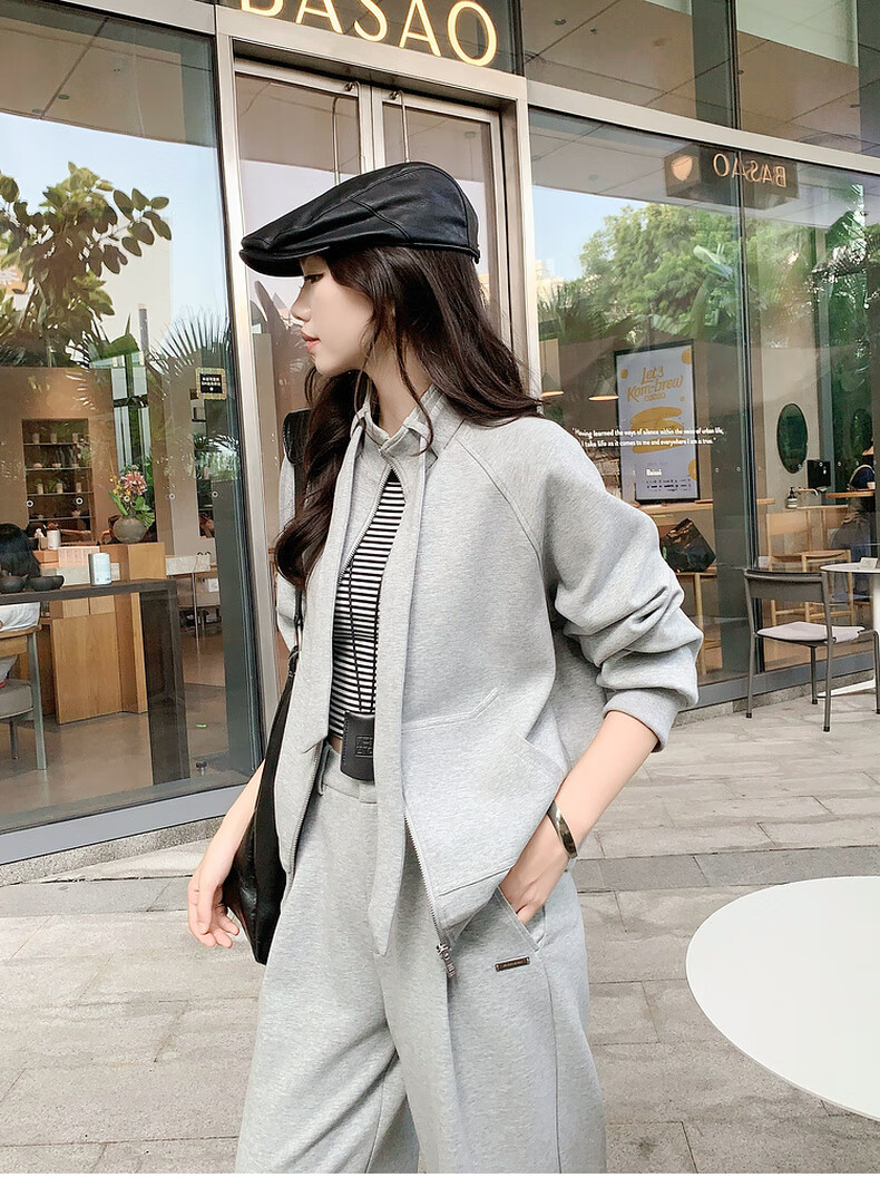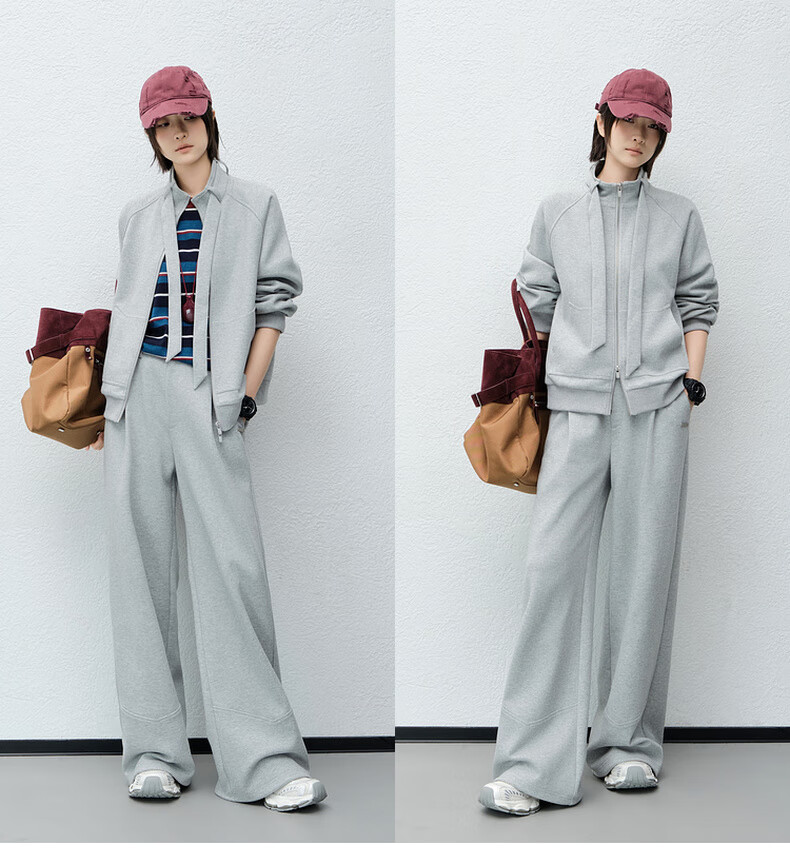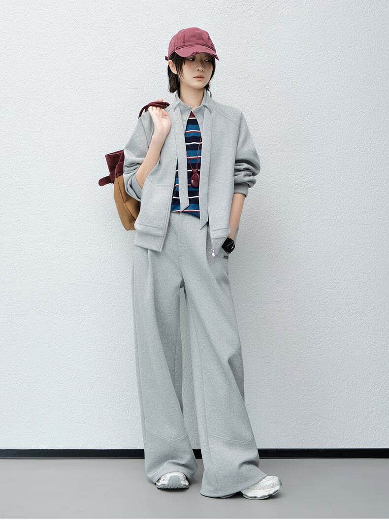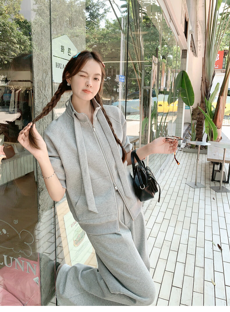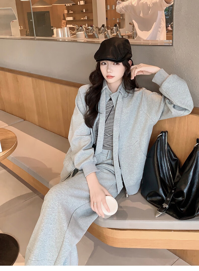 MEIYANG streamer suit, temperature-locking air layer stand-up collar, detachable streamer top, casual pants, fashion slimming autumn new style, light gray (regular version) L