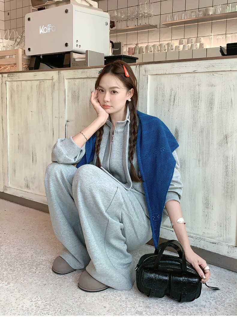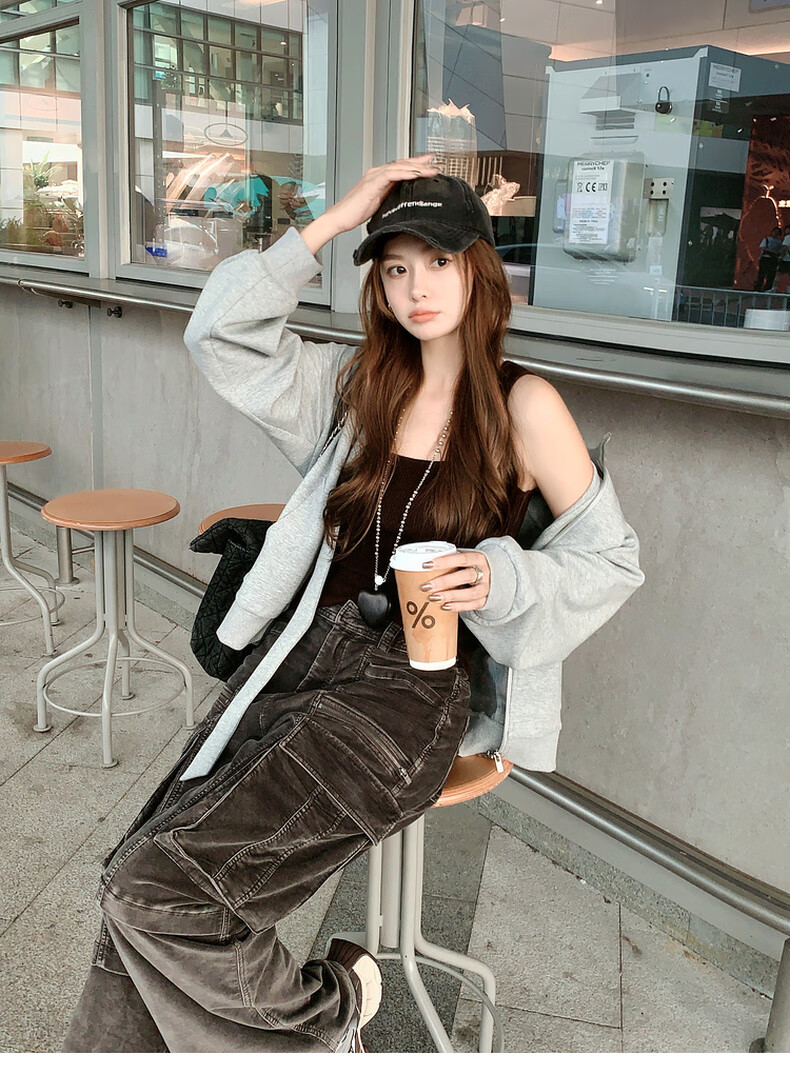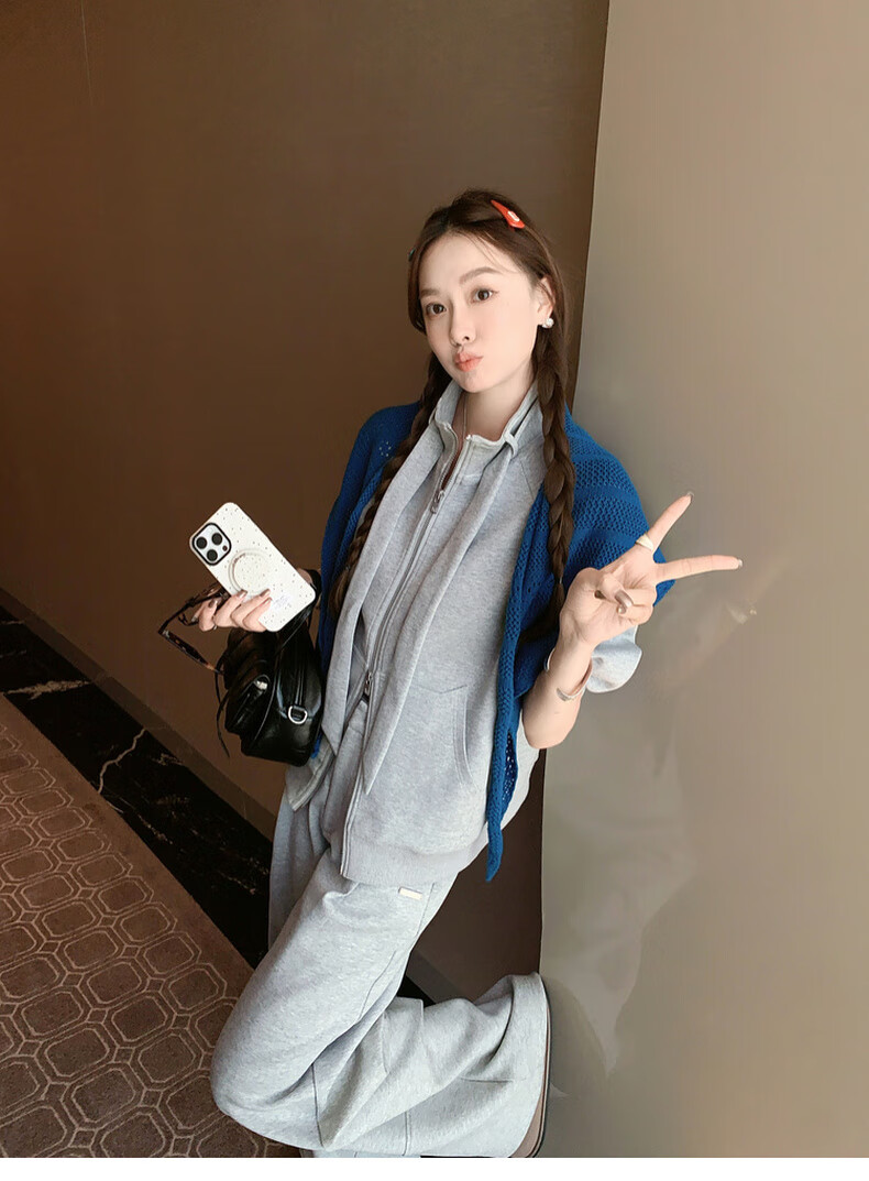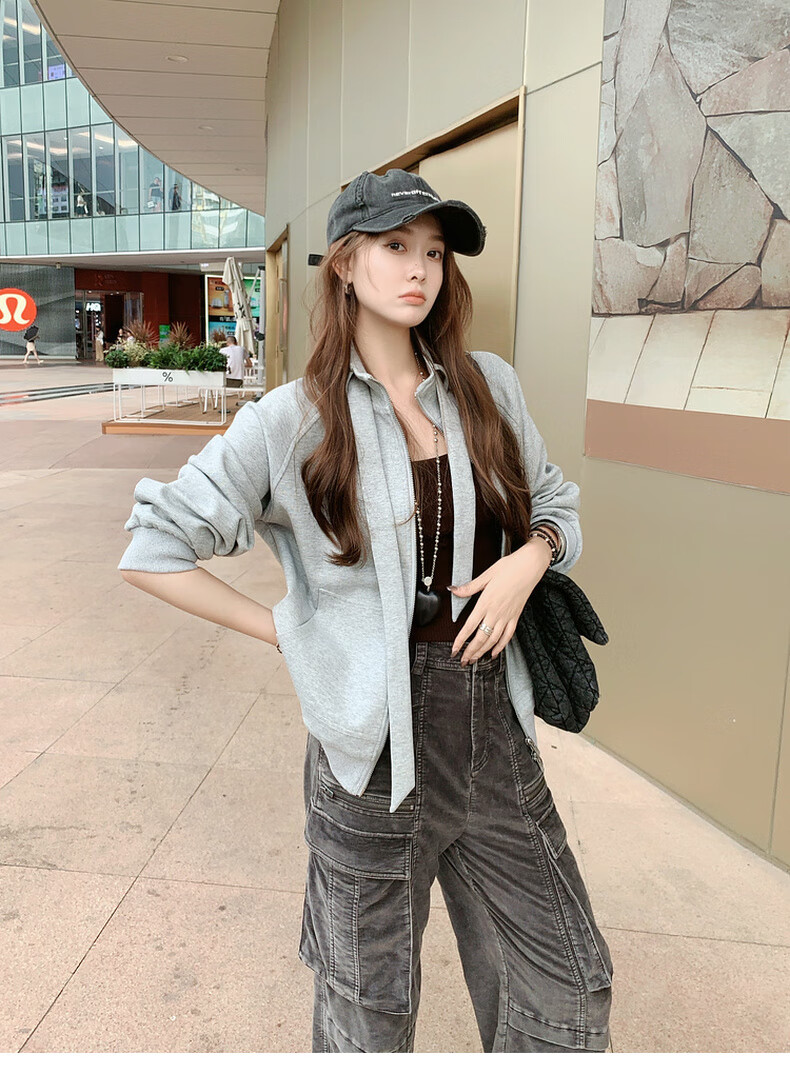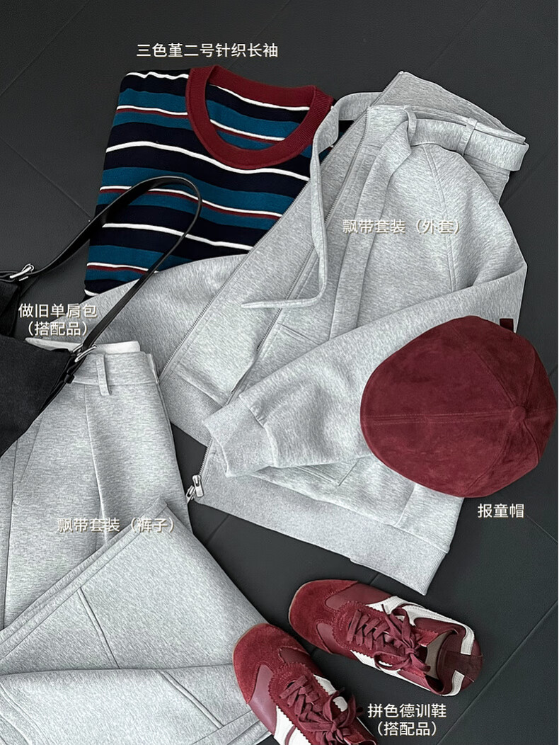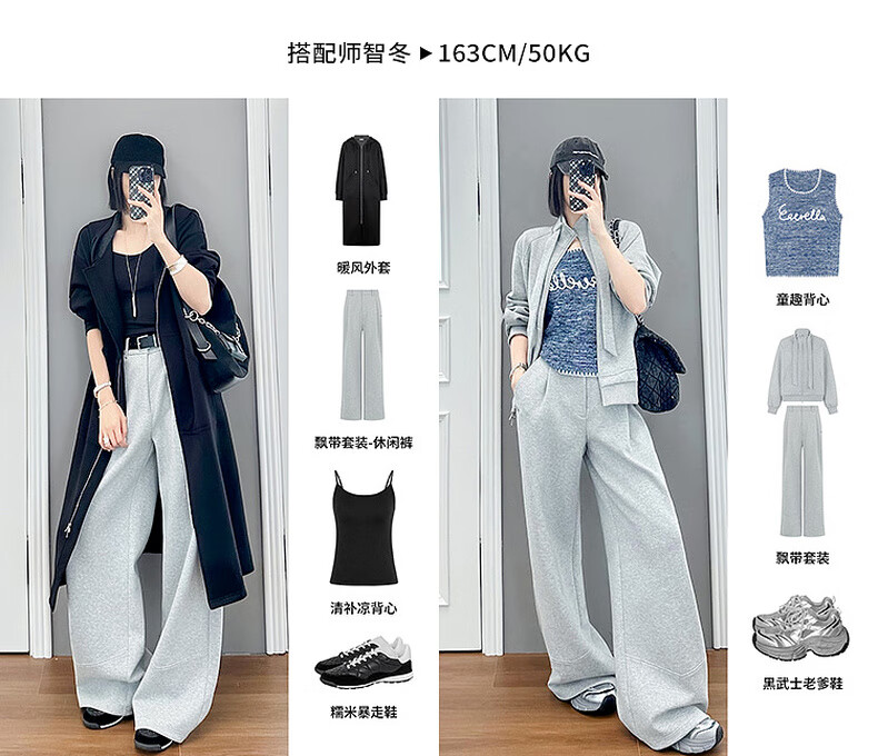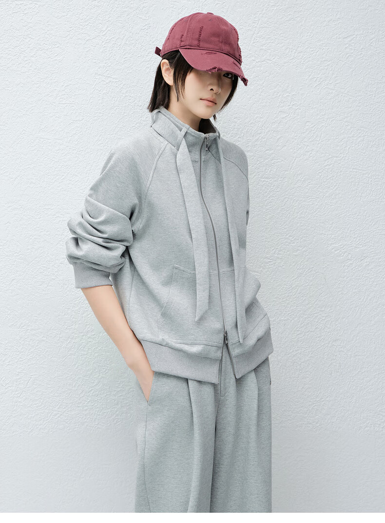 MEIYANG streamer suit, temperature-locking air layer stand-up collar, detachable streamer top, casual pants, fashion slimming autumn new style, light gray (regular version) L