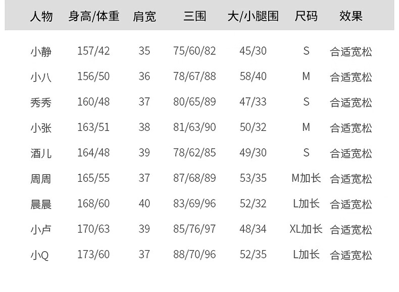 China (cm) 160-165/84-86 165-170 / 88-90 167-172 / 92-96 168-173 / 98-102 170-176 / 106-110