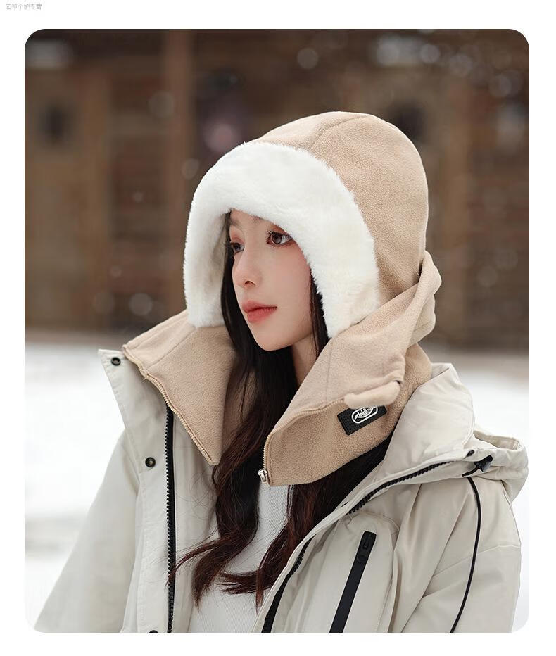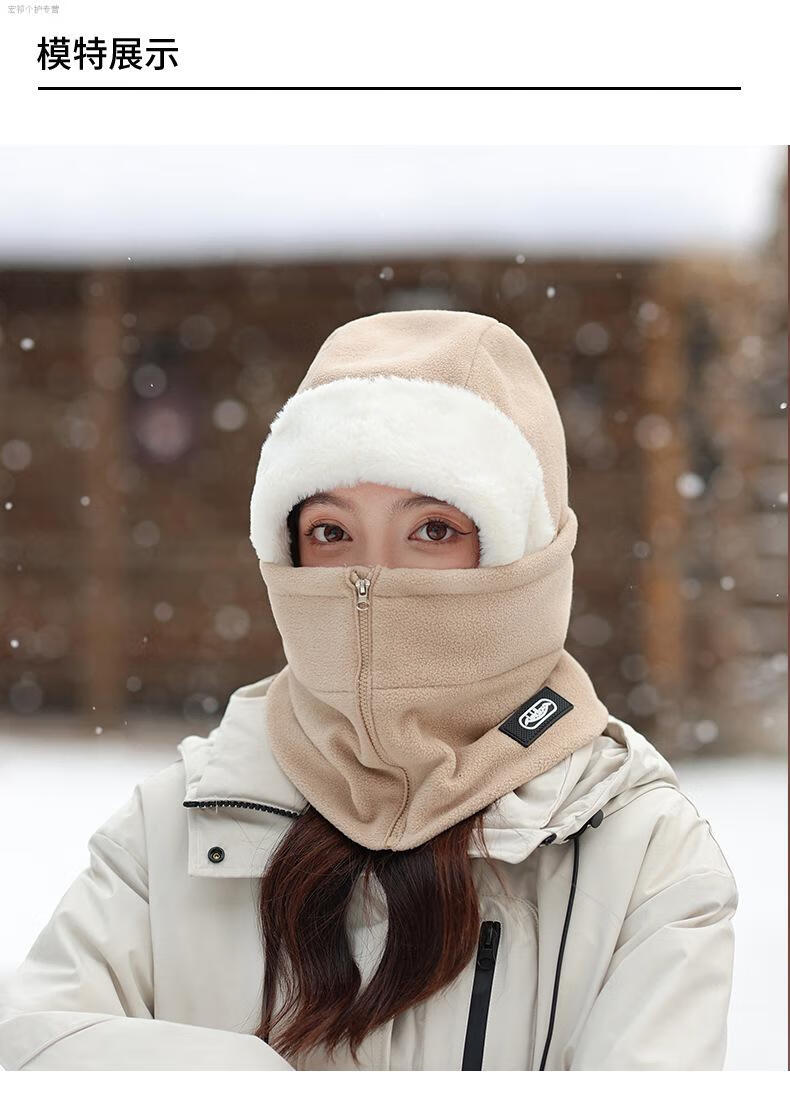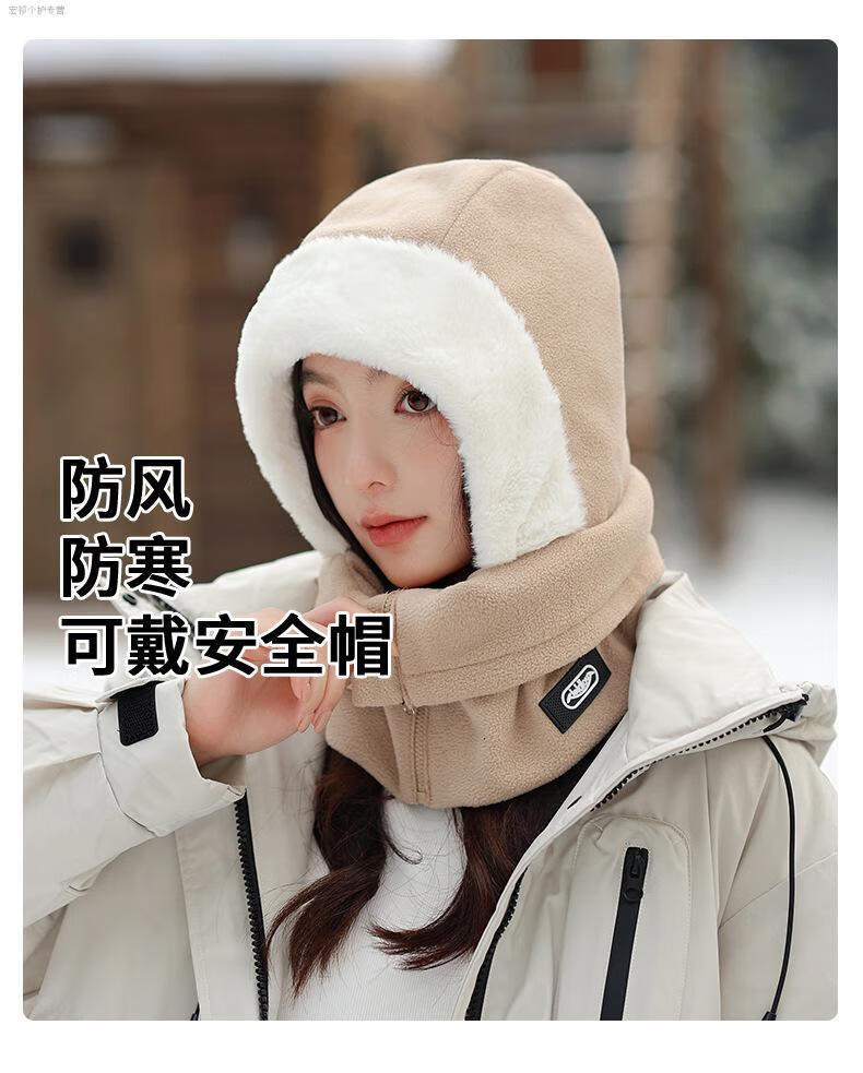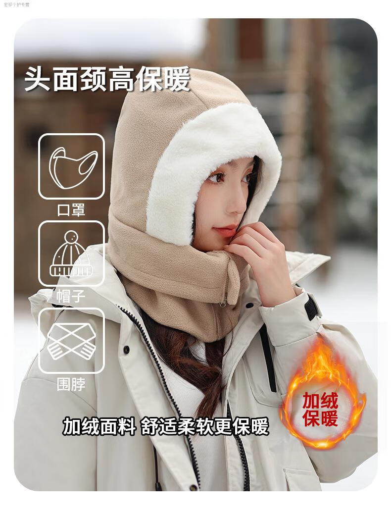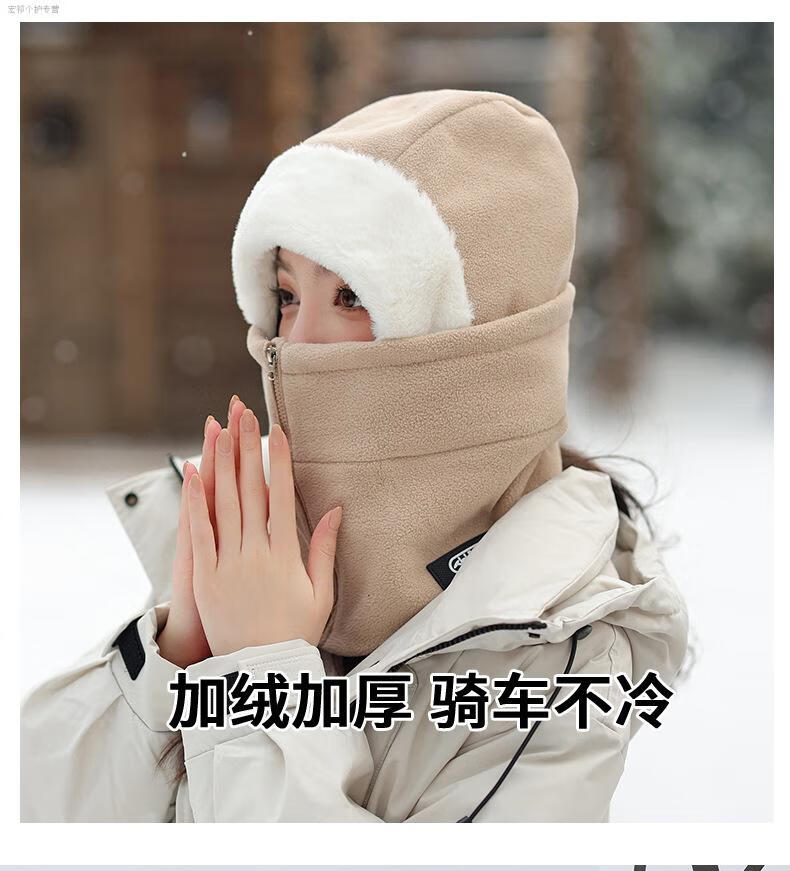 SkingCond Hat Women's Winter Cycling Electric Vehicle Warmth Artifact Windproof Mask Neck Collar One-piece Headgear Ear Protection Lei Feng Hat Men's Khaki Thickened One-size-fits-all